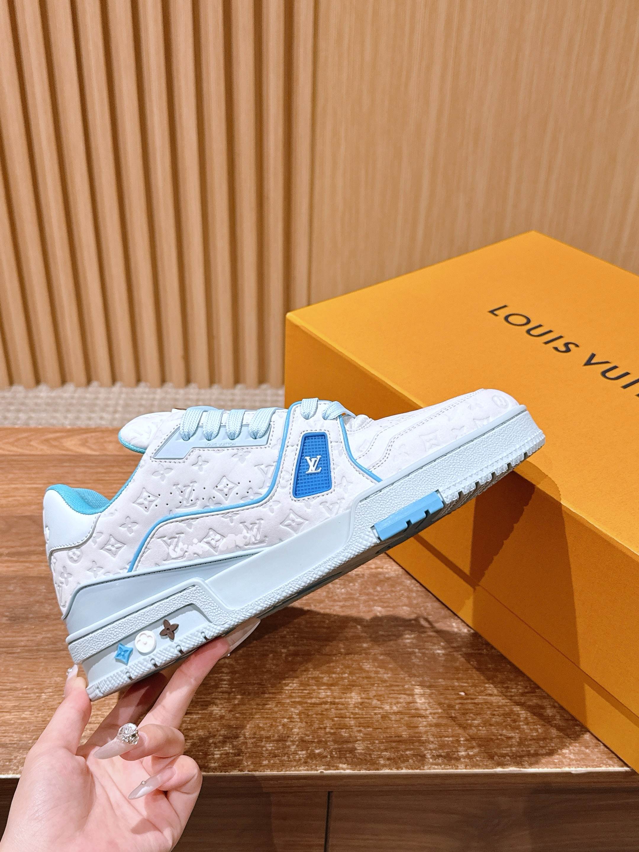 There are many classic color schemes for the LV Trainer. Although the designs this season are quite similar in shape, there are still many highlights in the details! Each pair requires 7 hours of sewing work. The tongue, sides, and back are adorned with LV letters. The sides are decorated with the Vuitton logo.