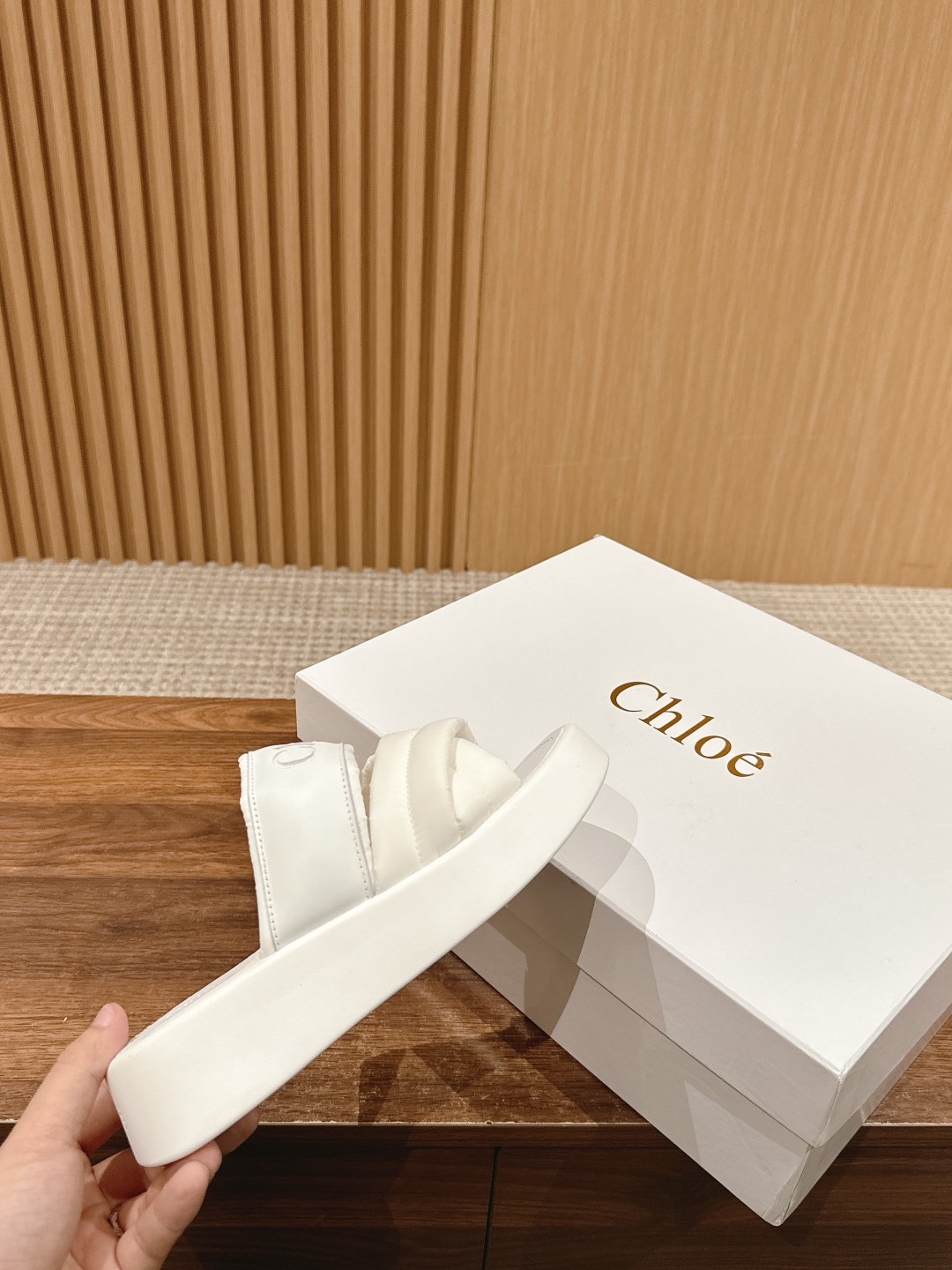 [Top Version] #Leather Surface Chloe | Chloé 2024 New Elastic Woven Strip Embroidered Slippers