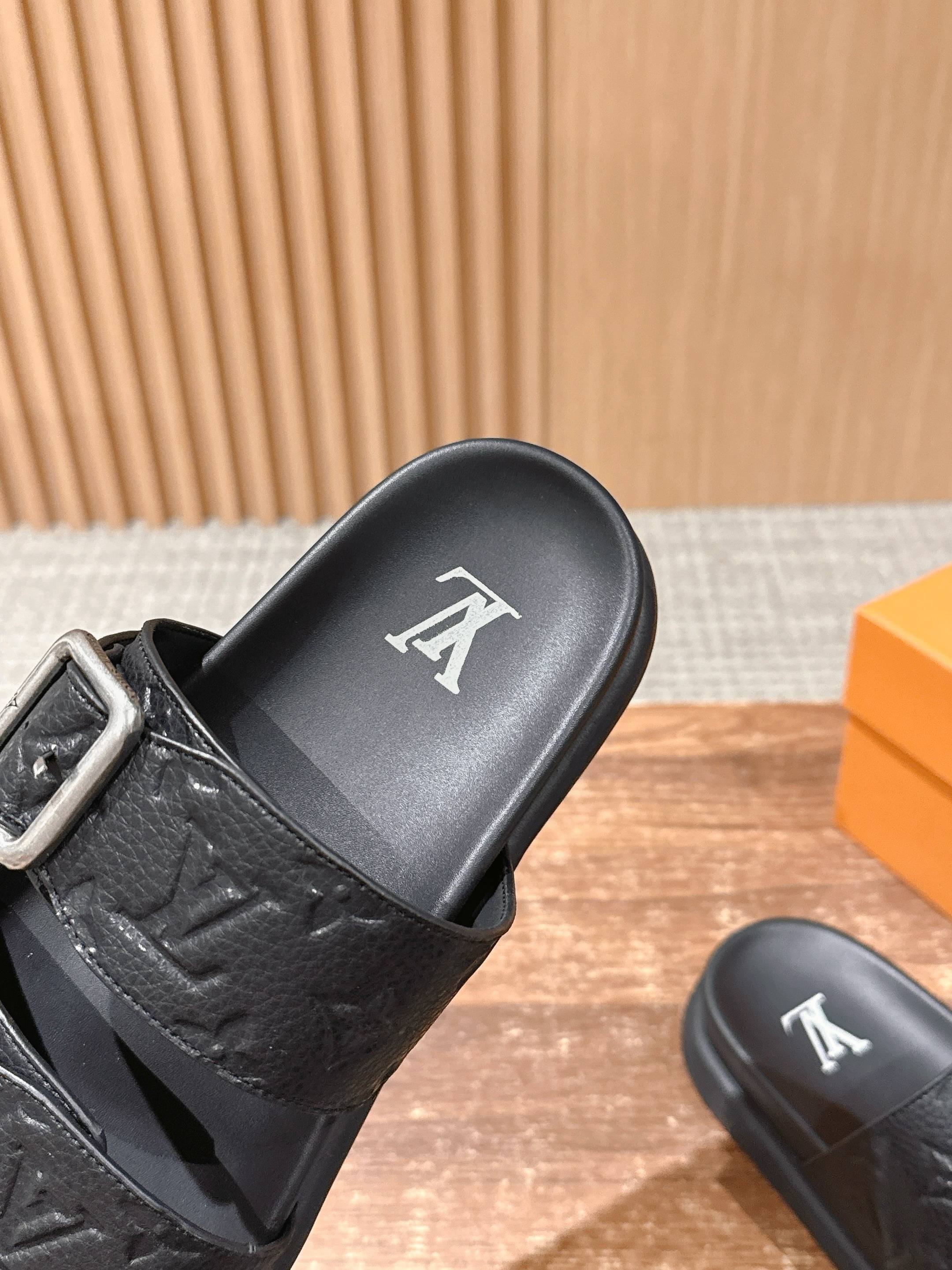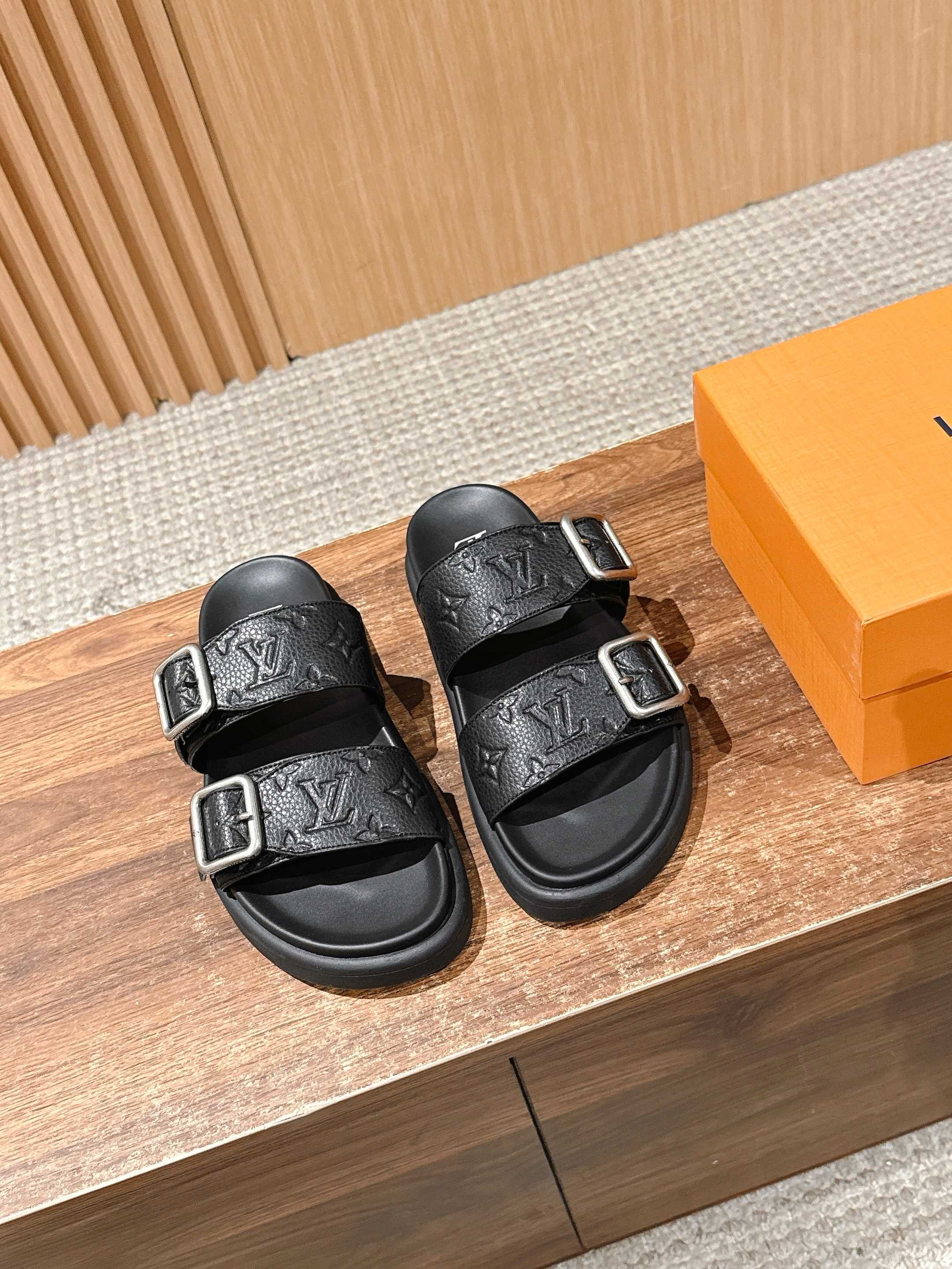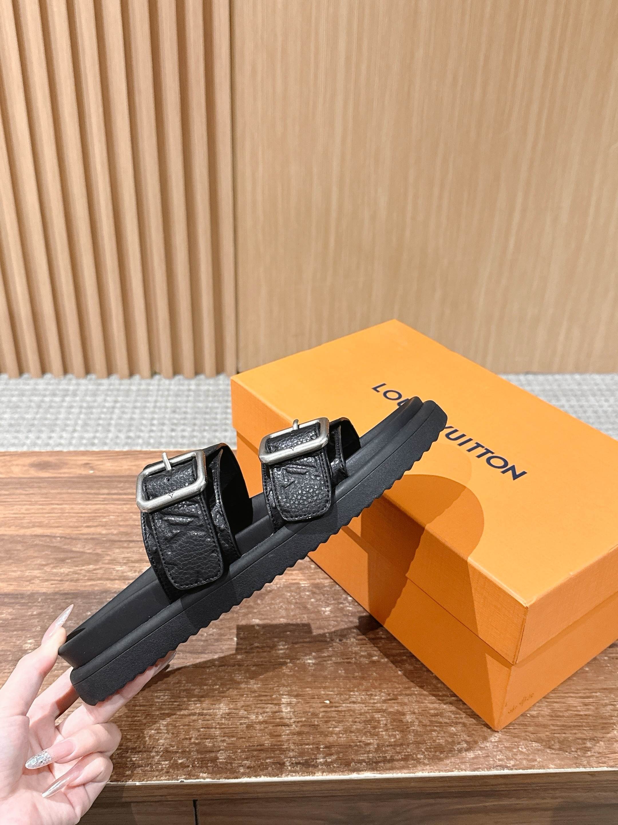 [Top Version] Louis Vuitton# New Men's Sandals from LV, Extremely High-End! A style widely popular among domestic and international bloggers, both retro and fashionable. Looks amazing on feet! Suede/Calfskin Monogram material, lambskin lining.