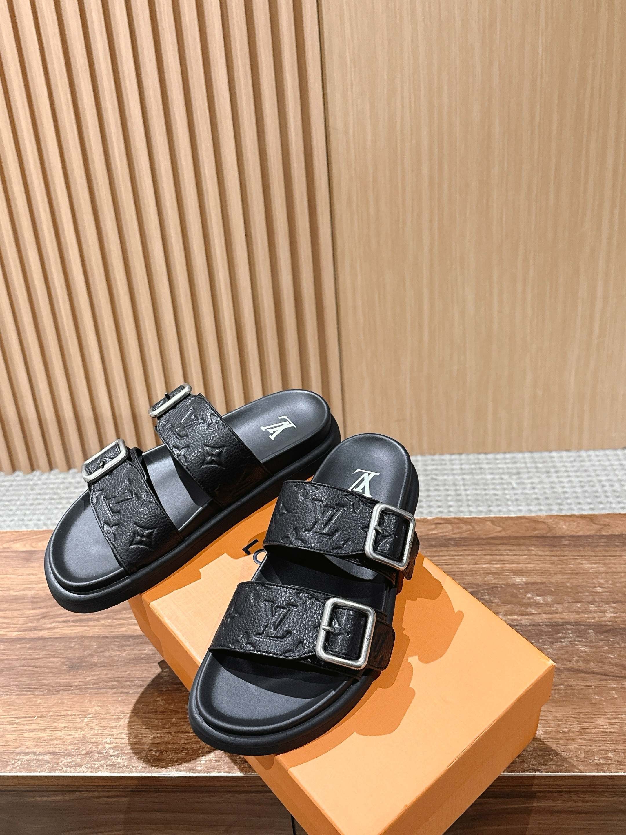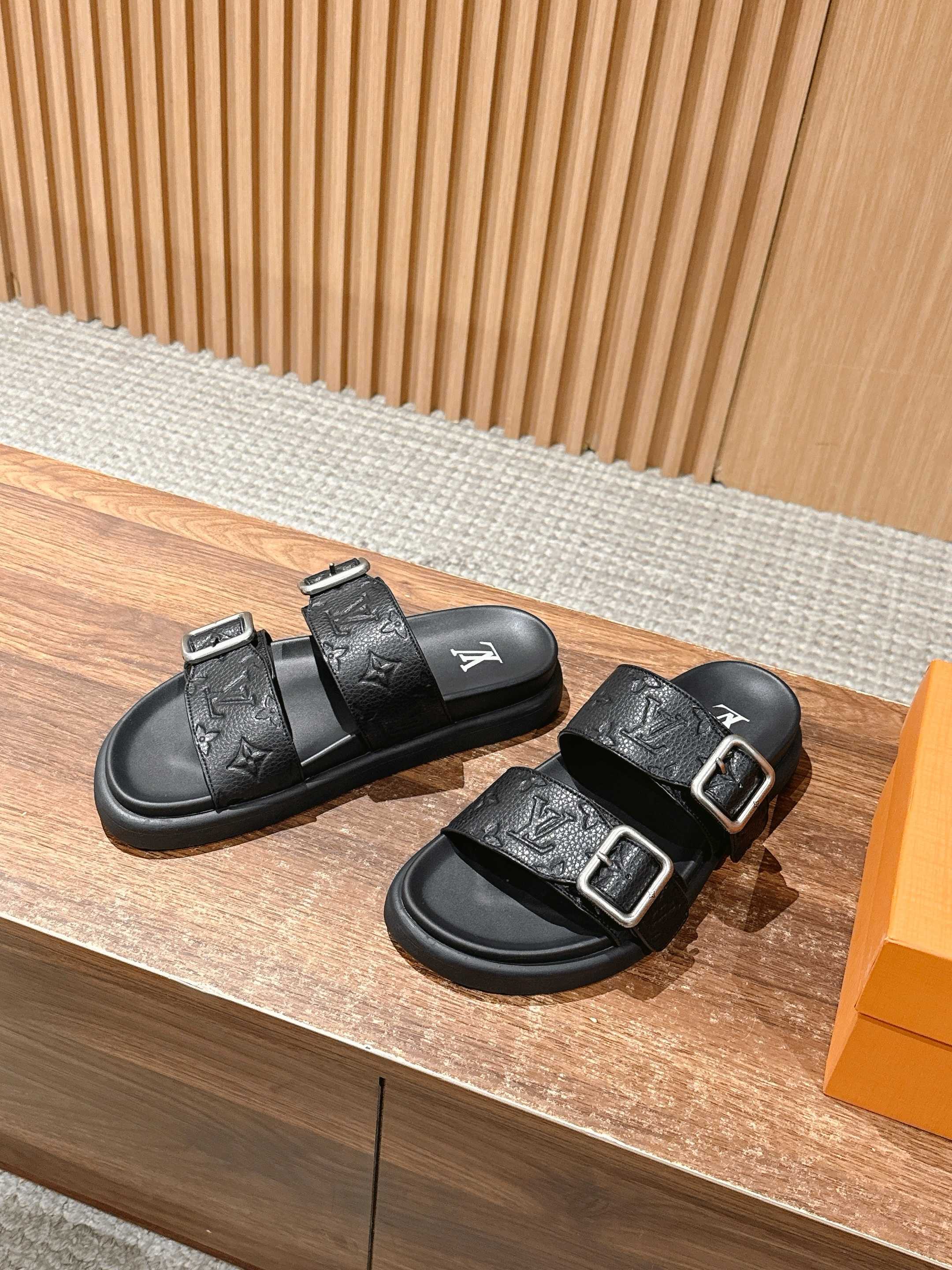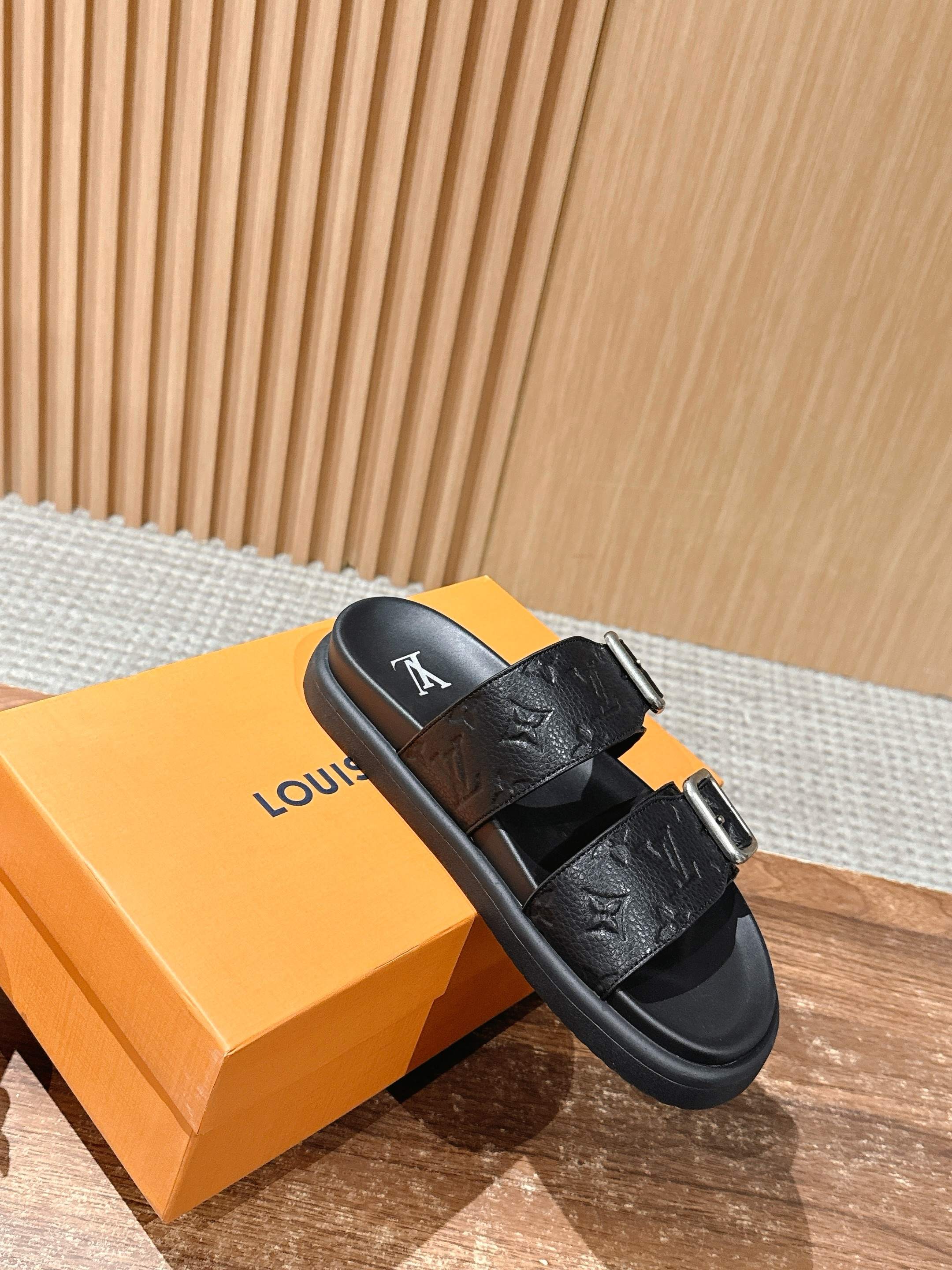 [Top Version] Louis Vuitton# New Men's Sandals from LV, Extremely High-End! A style widely popular among domestic and international bloggers, both retro and fashionable. Looks amazing on feet! Suede/Calfskin Monogram material, lambskin lining.