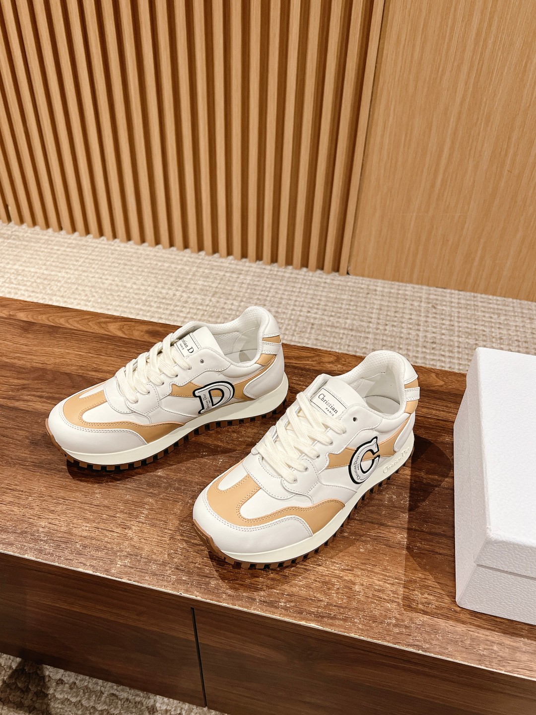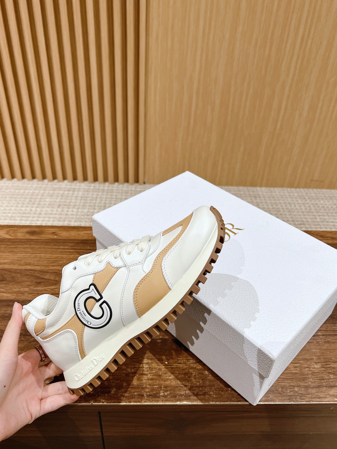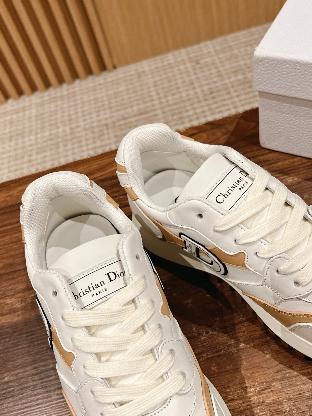 [Top-Tier Version] Christian Dior's C'est Dior sneakers feature a bold and stylish design. Meticulously crafted from materials like white calfskin leather, the upper showcases black and white rubber C and D letters on each side, adorned with the Christian Dior Paris logo. The tongue, also bearing the logo, and the lightweight bicolor sole offer exceptional comfort, highlighting the charm of the sporty style. They can add a fashionable touch to various casual outfits.