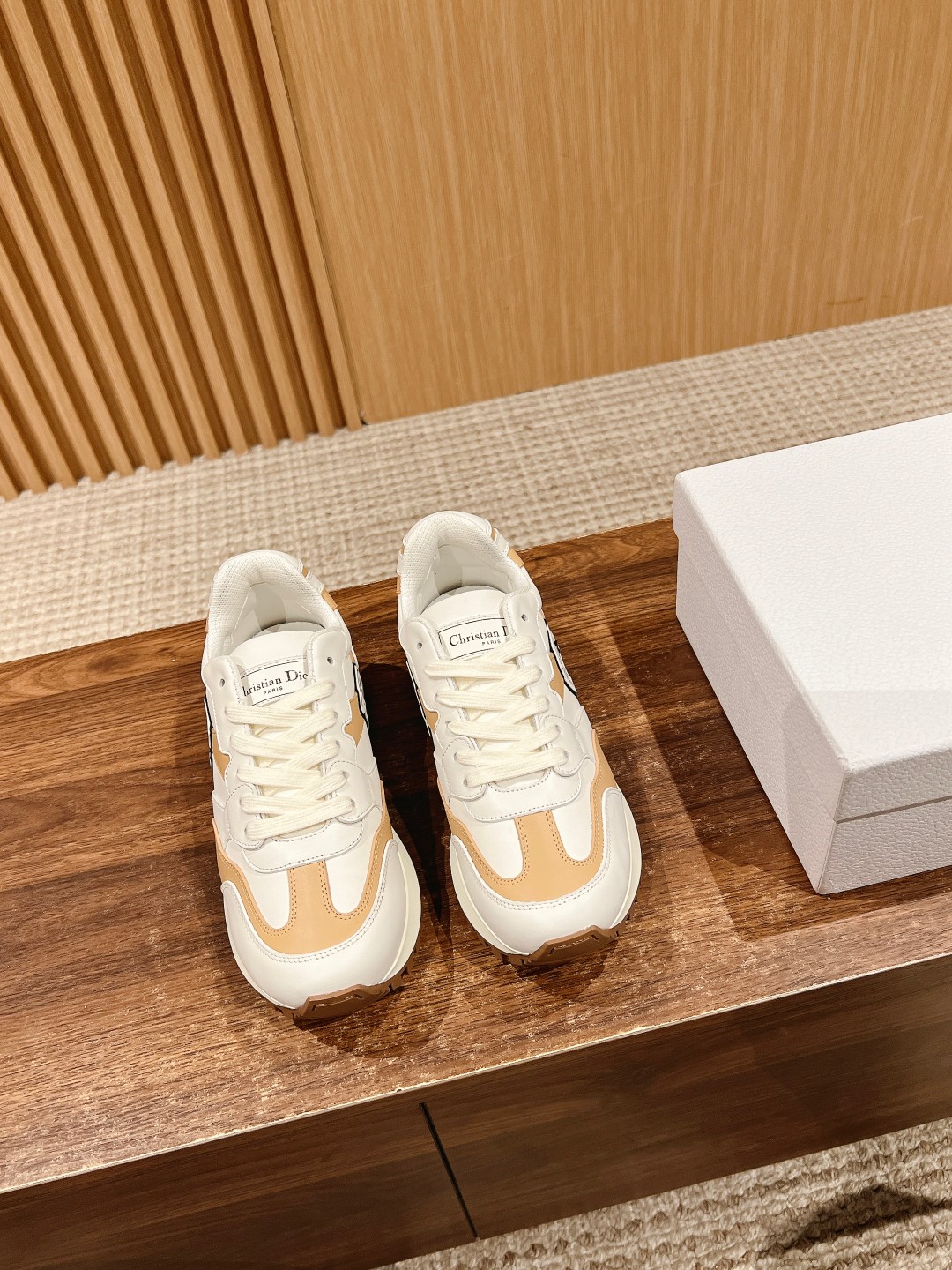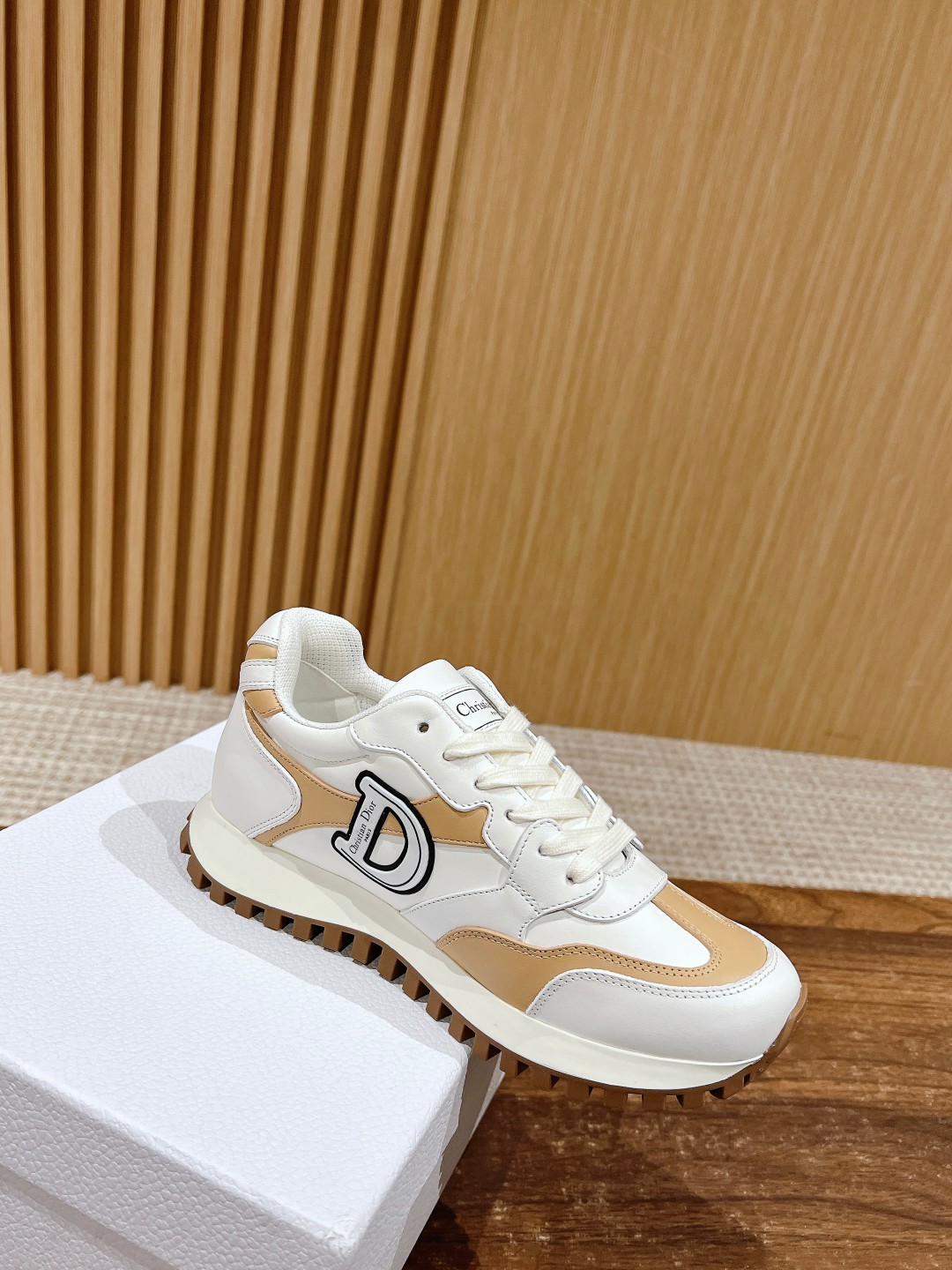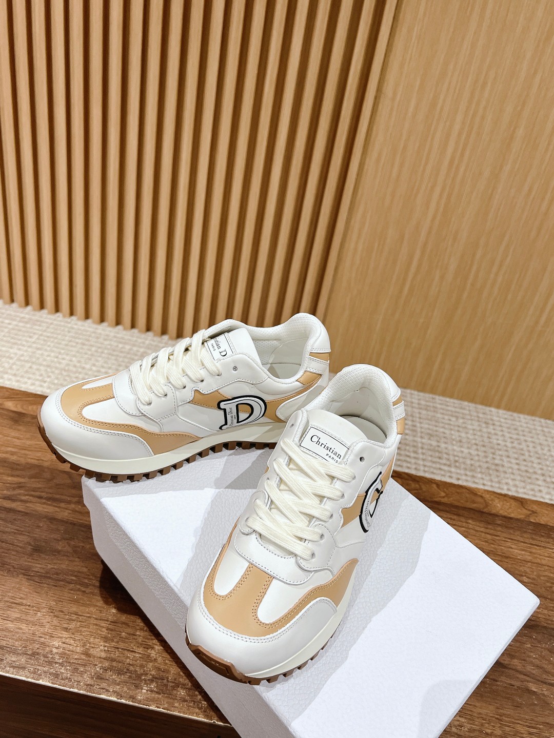 [Top-Tier Version] Christian Dior's C'est Dior sneakers feature a bold and stylish design. Meticulously crafted from materials like white calfskin leather, the upper showcases black and white rubber C and D letters on each side, adorned with the Christian Dior Paris logo. The tongue, also bearing the logo, and the lightweight bicolor sole offer exceptional comfort, highlighting the charm of the sporty style. They can add a fashionable touch to various casual outfits.