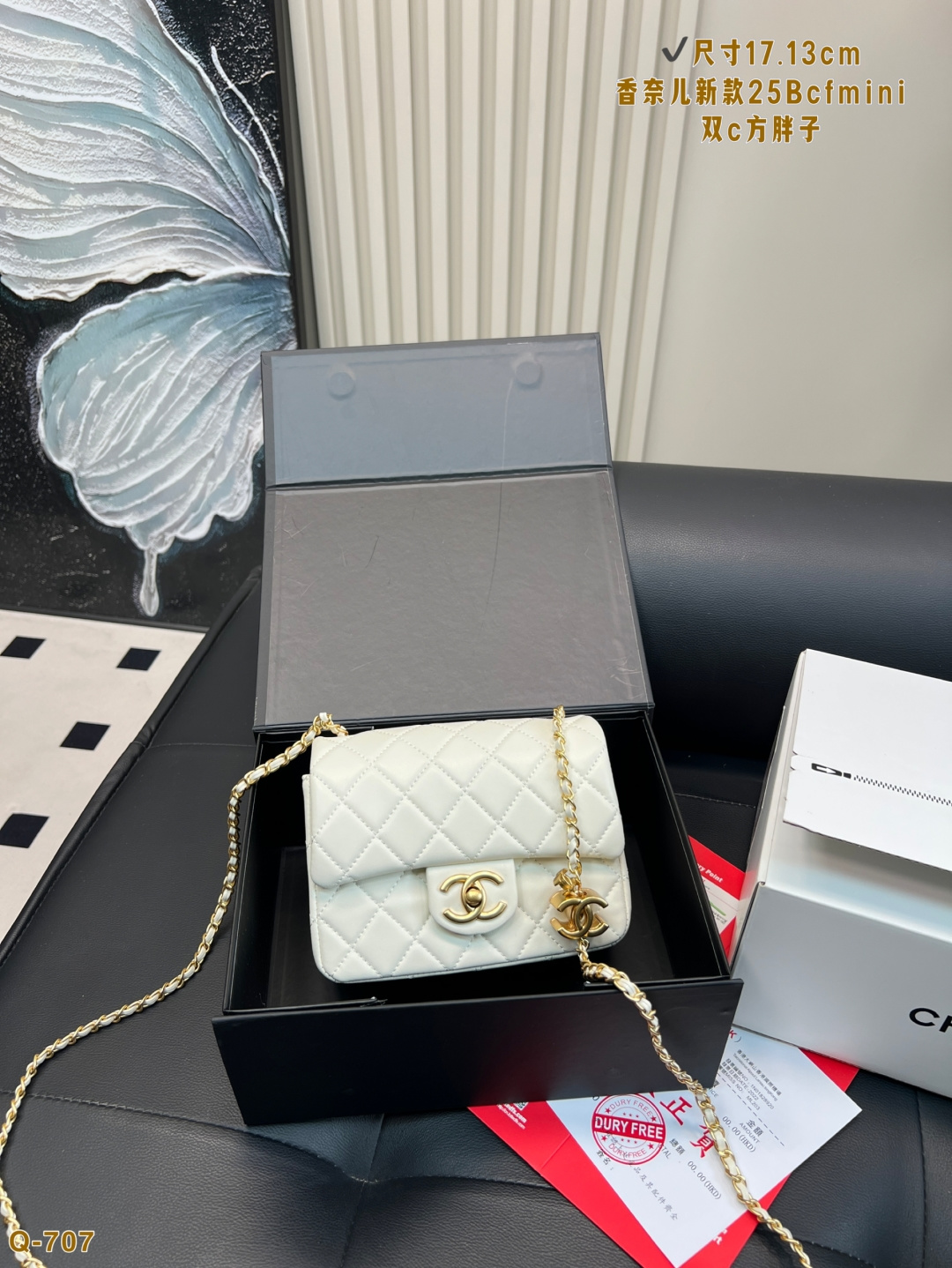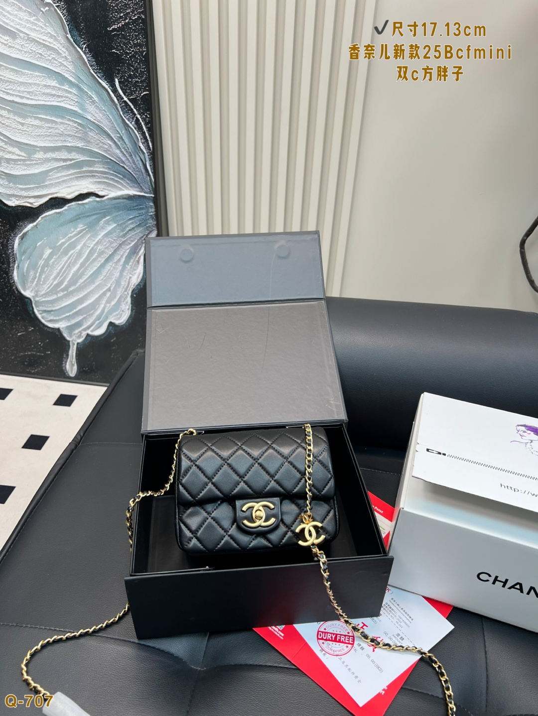 The new Chanel 25Bcf mini double C square bag is more lightweight compared to the double C adjustment and the golden ball.