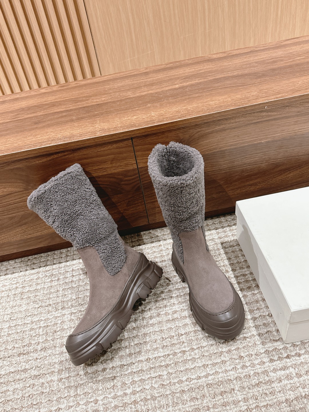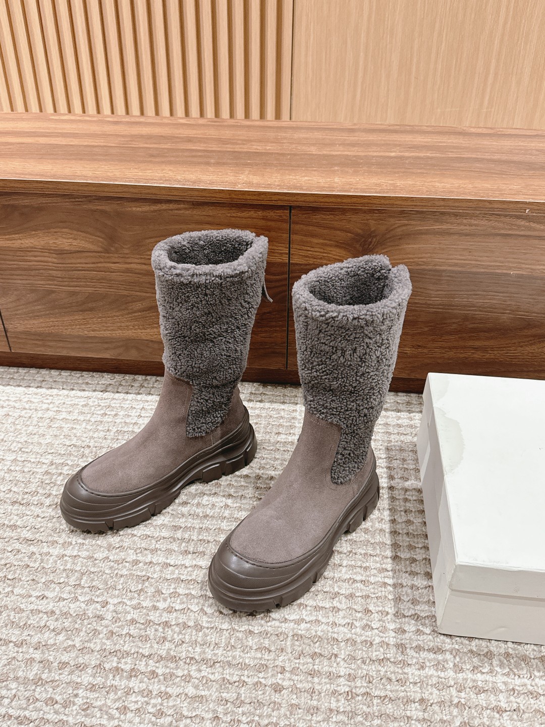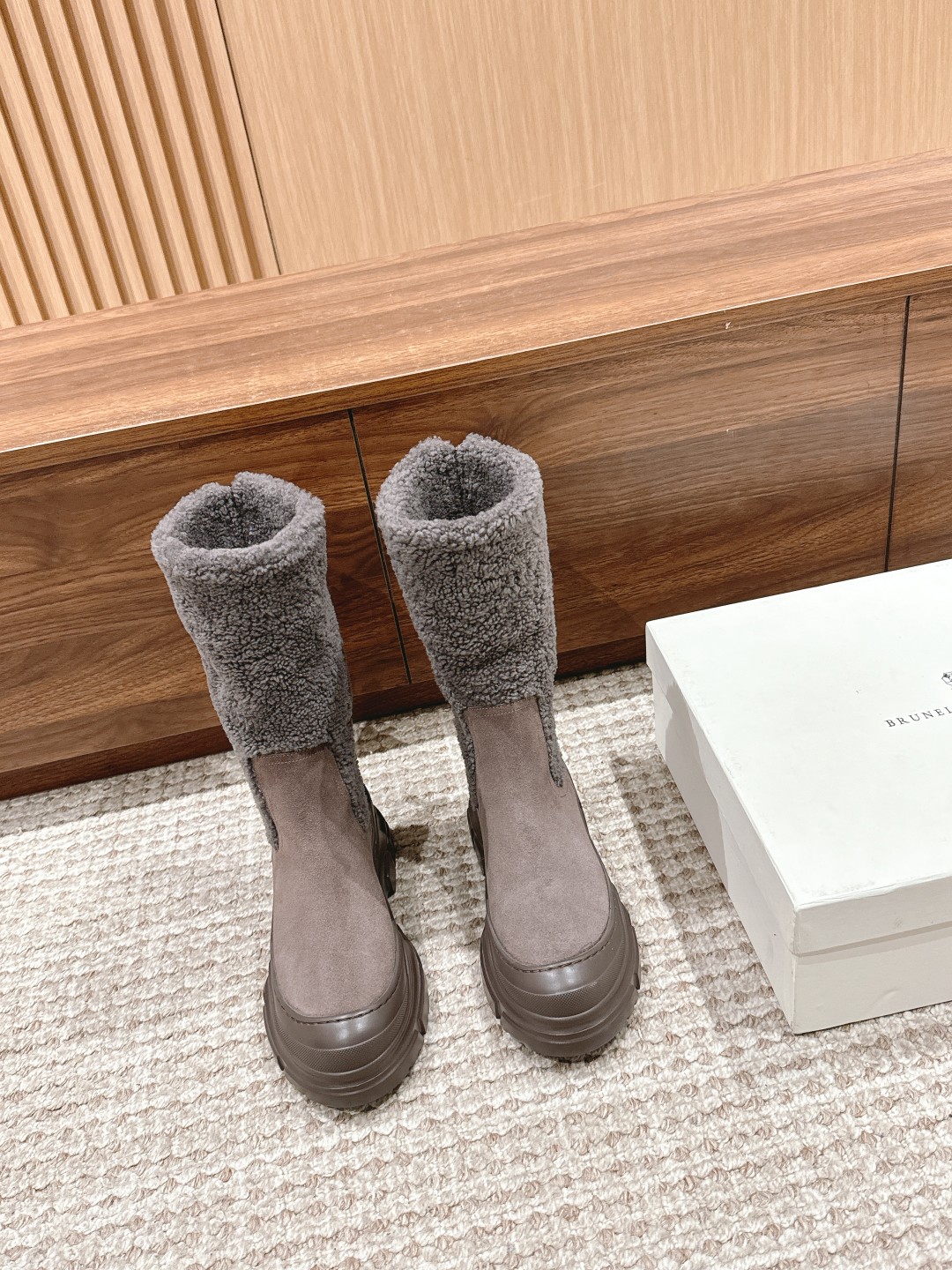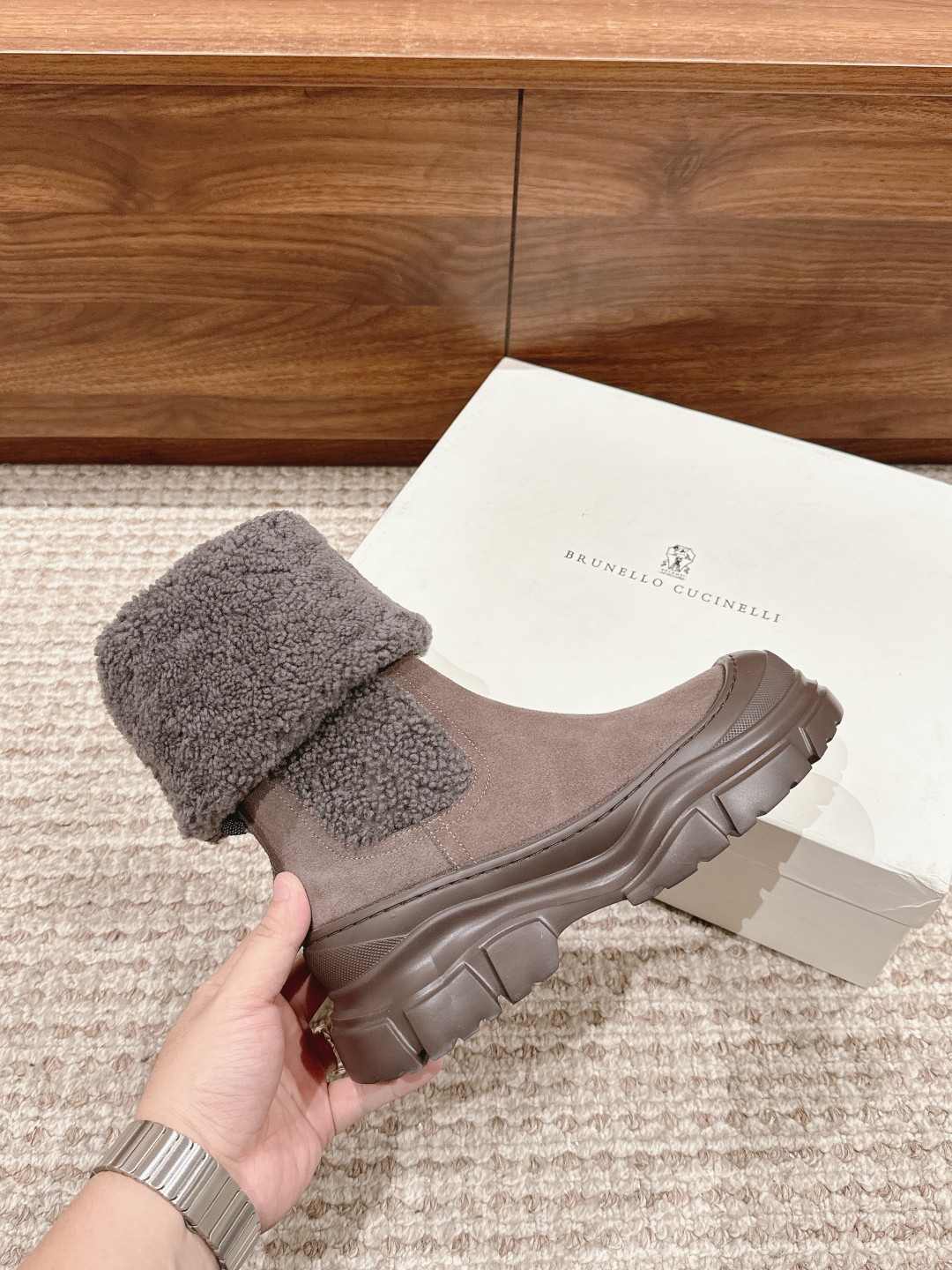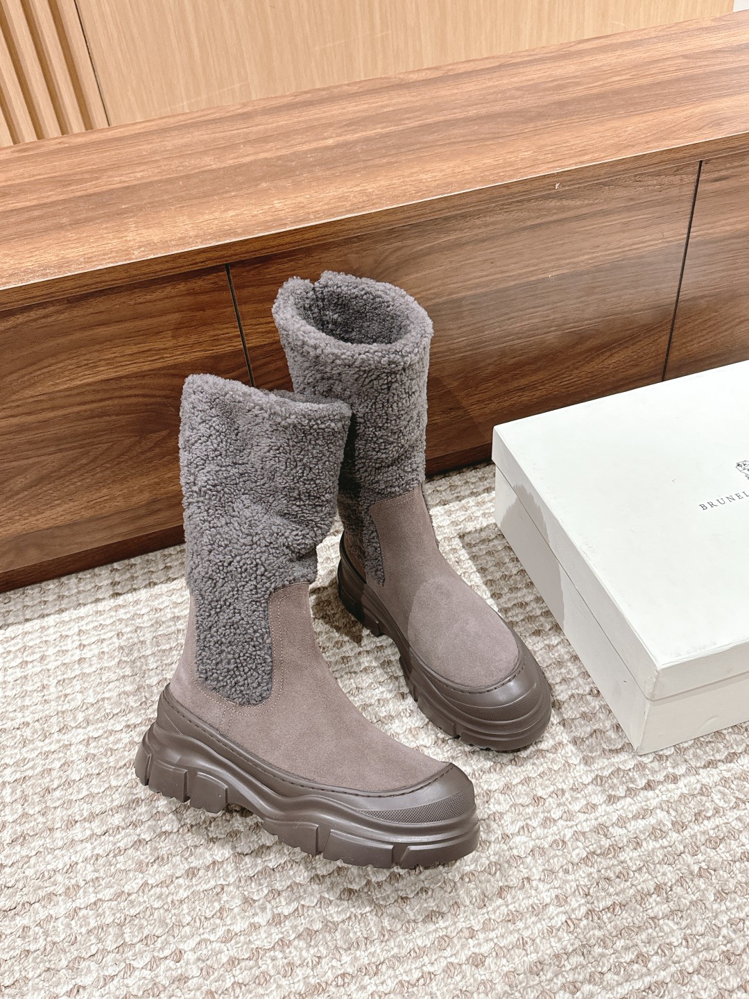 [Top Version] Brunello Cucinelli BC is a rare find, comfortable to wear, aesthetically pleasing and elegant, with a connotation of sophistication, popular both domestically and internationally. Matte calfskin/suede combined with the soft texture of evenly grained and sheared sheepskin trim, reinterpreting the volume of classic boots with ethnic-inspired details. Size: 35-41 (35/40/41/custom orders cannot be exchanged or returned)