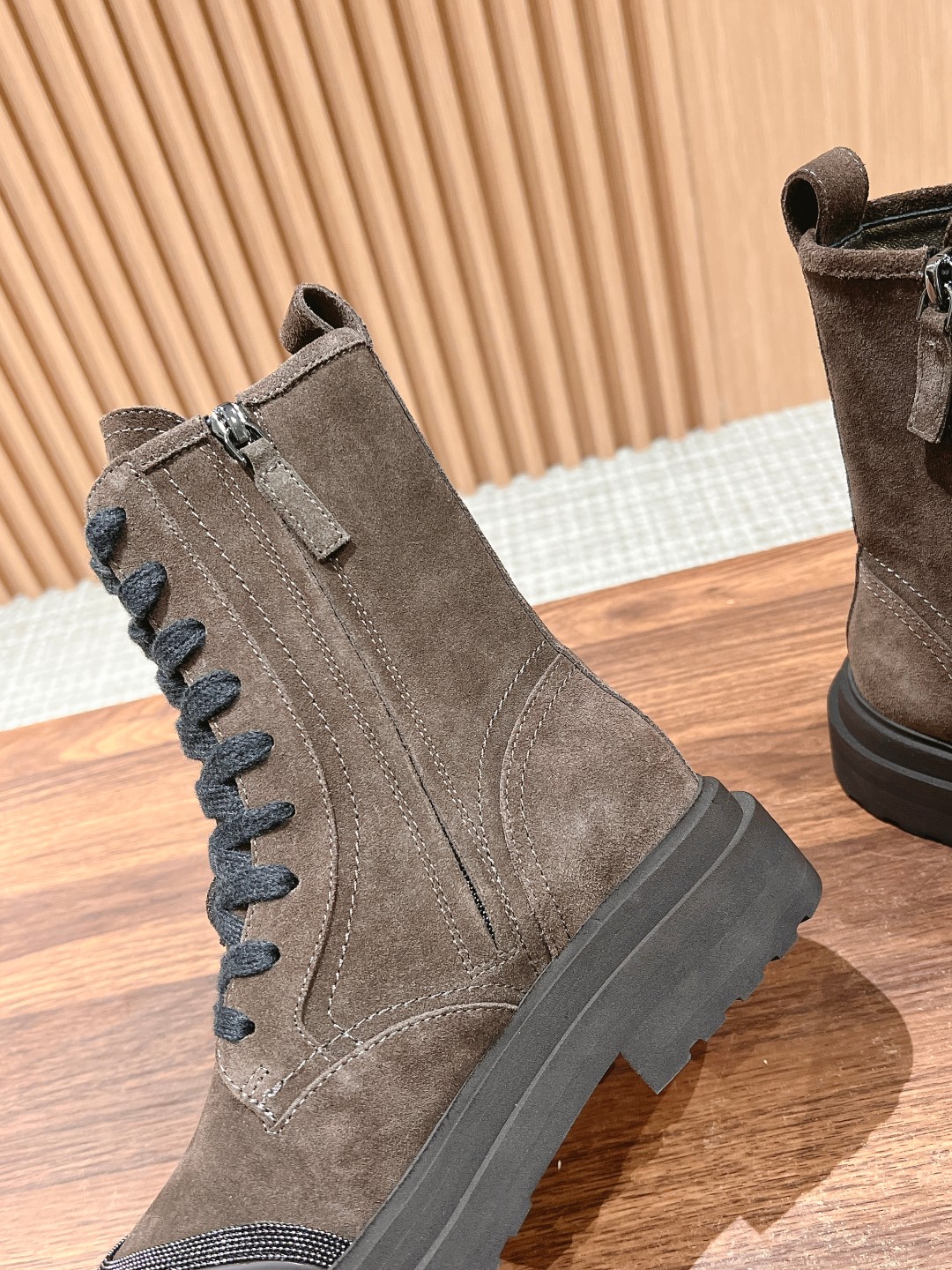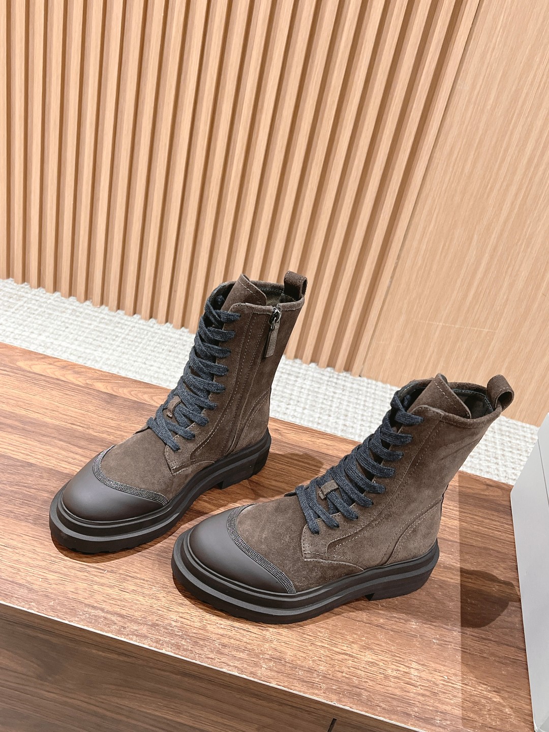 Today, we bring an extremely stylish pair of boots. Features a side zipper for easy wear and removal, with laces adjustable within a certain range to accommodate different foot shapes.