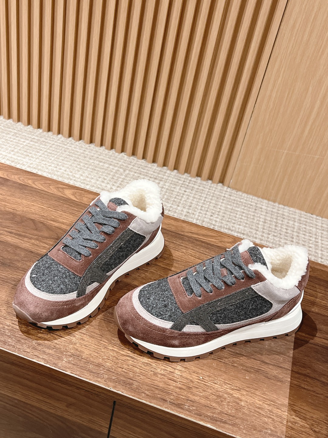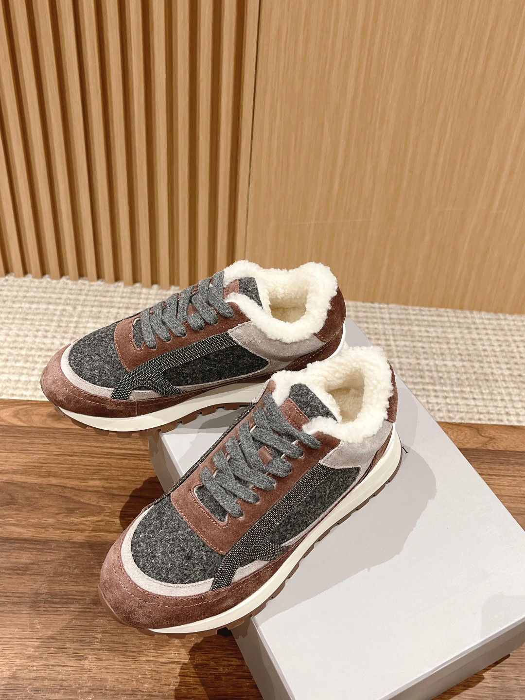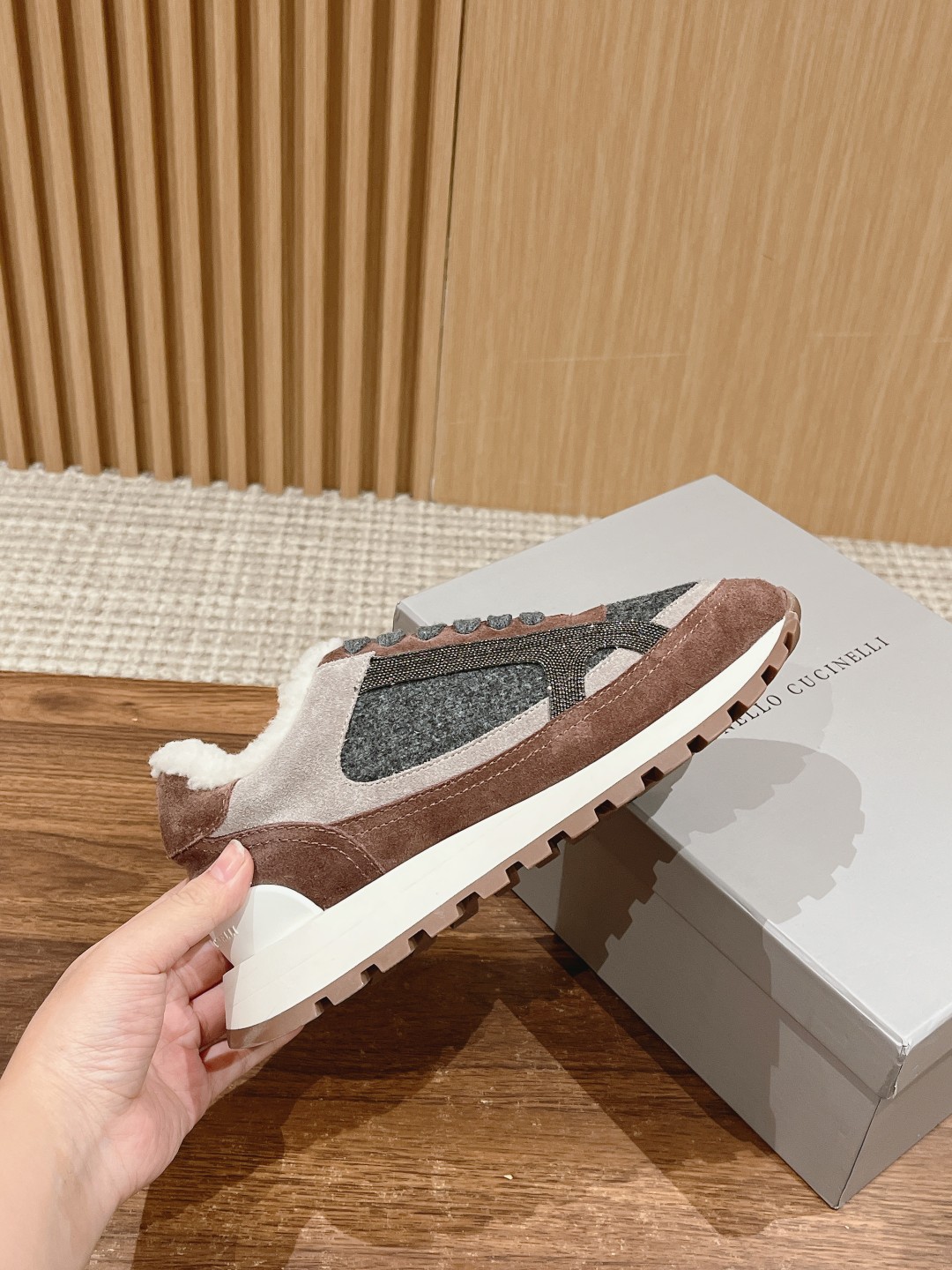 [Top-tier Version] Brunello Cucinelli# The most popular casual sports shoes for all seasons, both domestically and internationally. Over ten original pairs were purchased, and after more than half a year of development and meticulous craftsmanship, each step of the process was inspected by specialists. High-quality shoe soles were produced with 1:1 molding. All materials, including top-grain leather uppers, hardware, lamb fur, lining, and packaging, were customized 1:1 according to the original. Truly achieving comfortable, stylish, breathable, elegant, and versatile high-end shoes. Size: 36-40 (Custom orders for 35/41/42 are non-refundable)