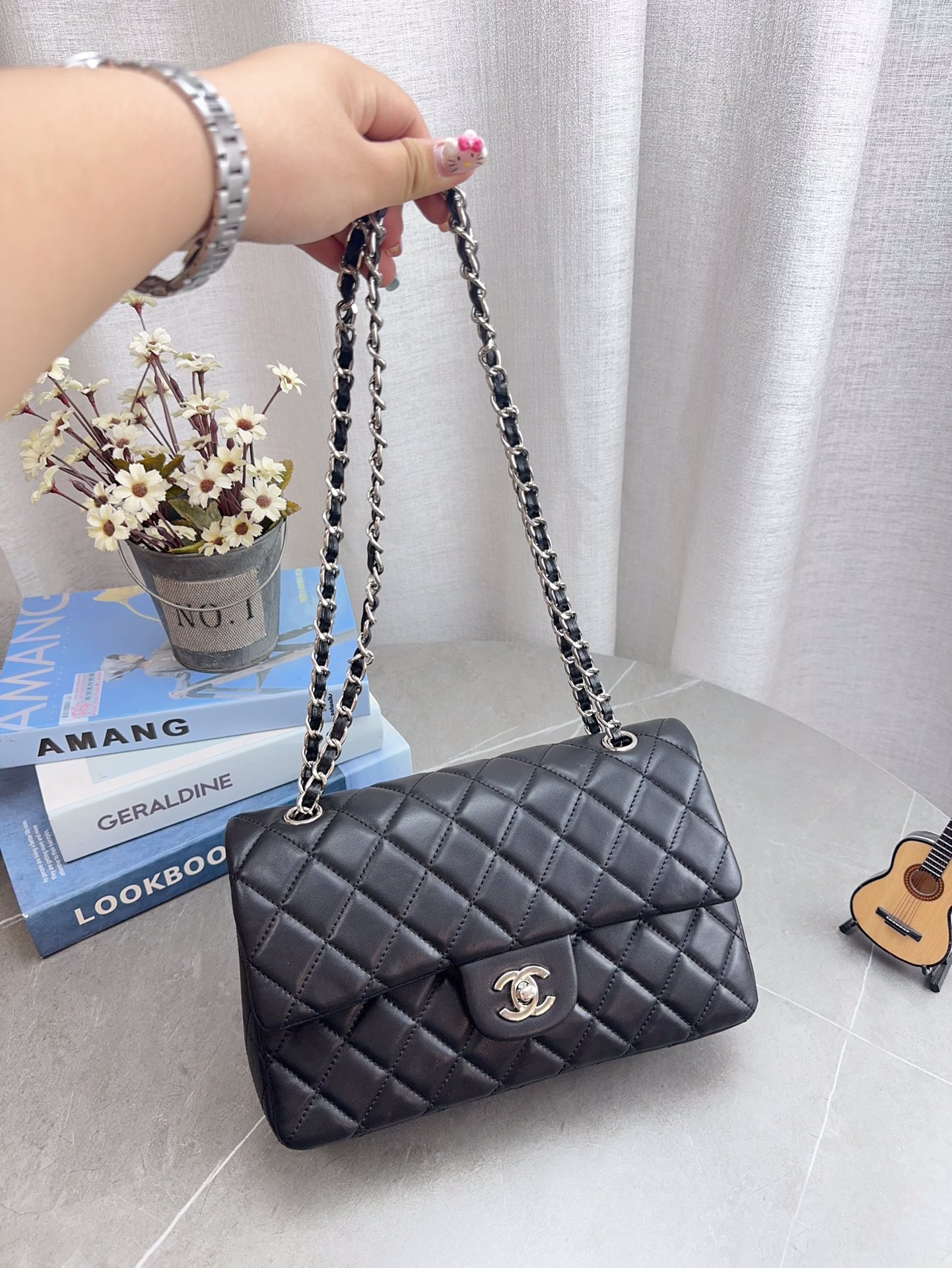 The most classic, essential original series for all seasons - the "goddess bag". A fashion favorite adored by socialites, with a long history and beloved by women. Simple and elegant, it highlights temperament. Whether carried on the shoulder, by hand, or crossbody, it showcases its unique character. Features the classic double C logo, iconic quilted pattern, clean lines, and multi-layer leather interior. Both practical and stylish, it remains unbeatable. The classic CF will surely deepen your love for Chanel. A great item to keep. Large size with silver hardware, dimensions 25*16cm.