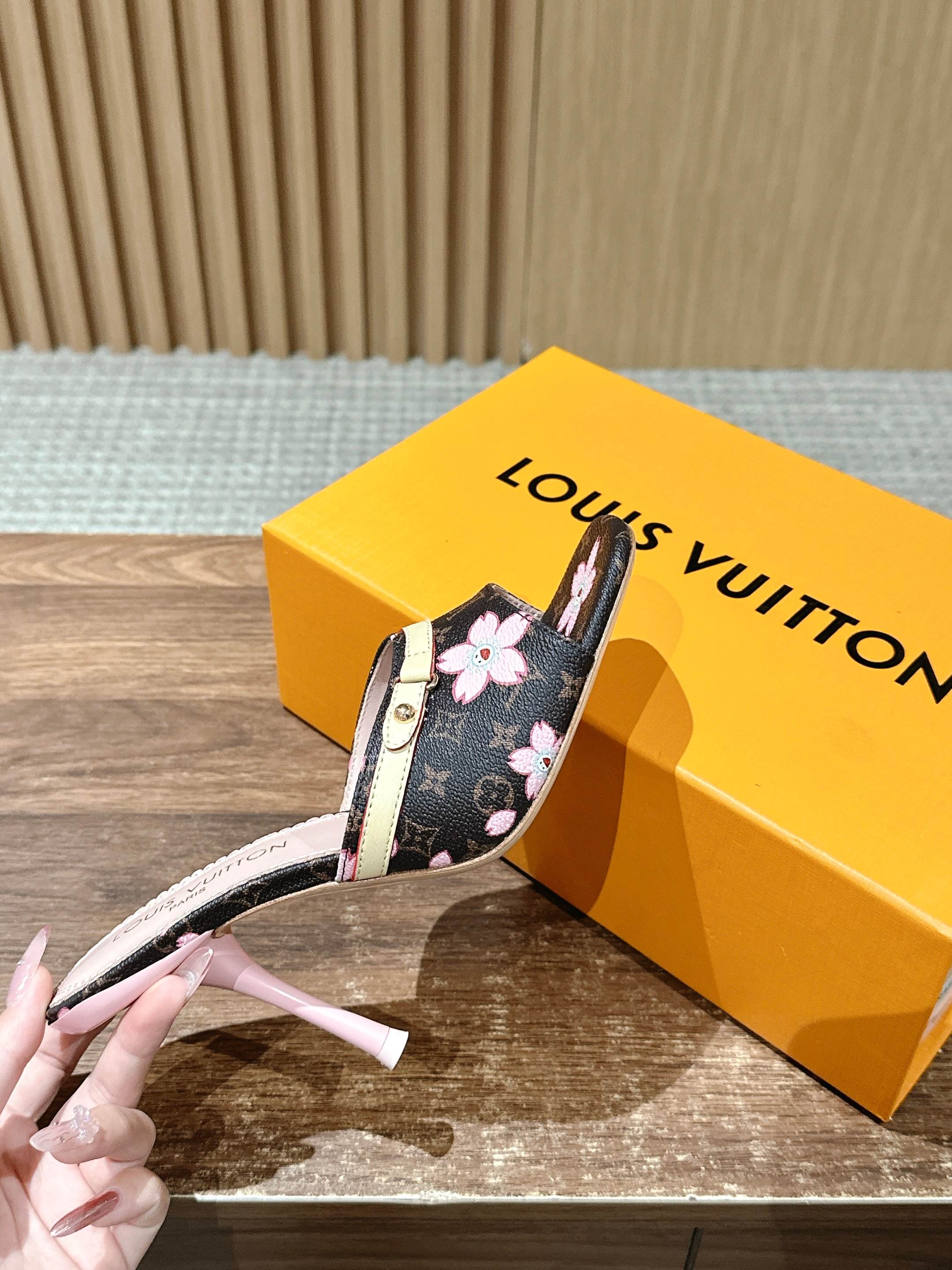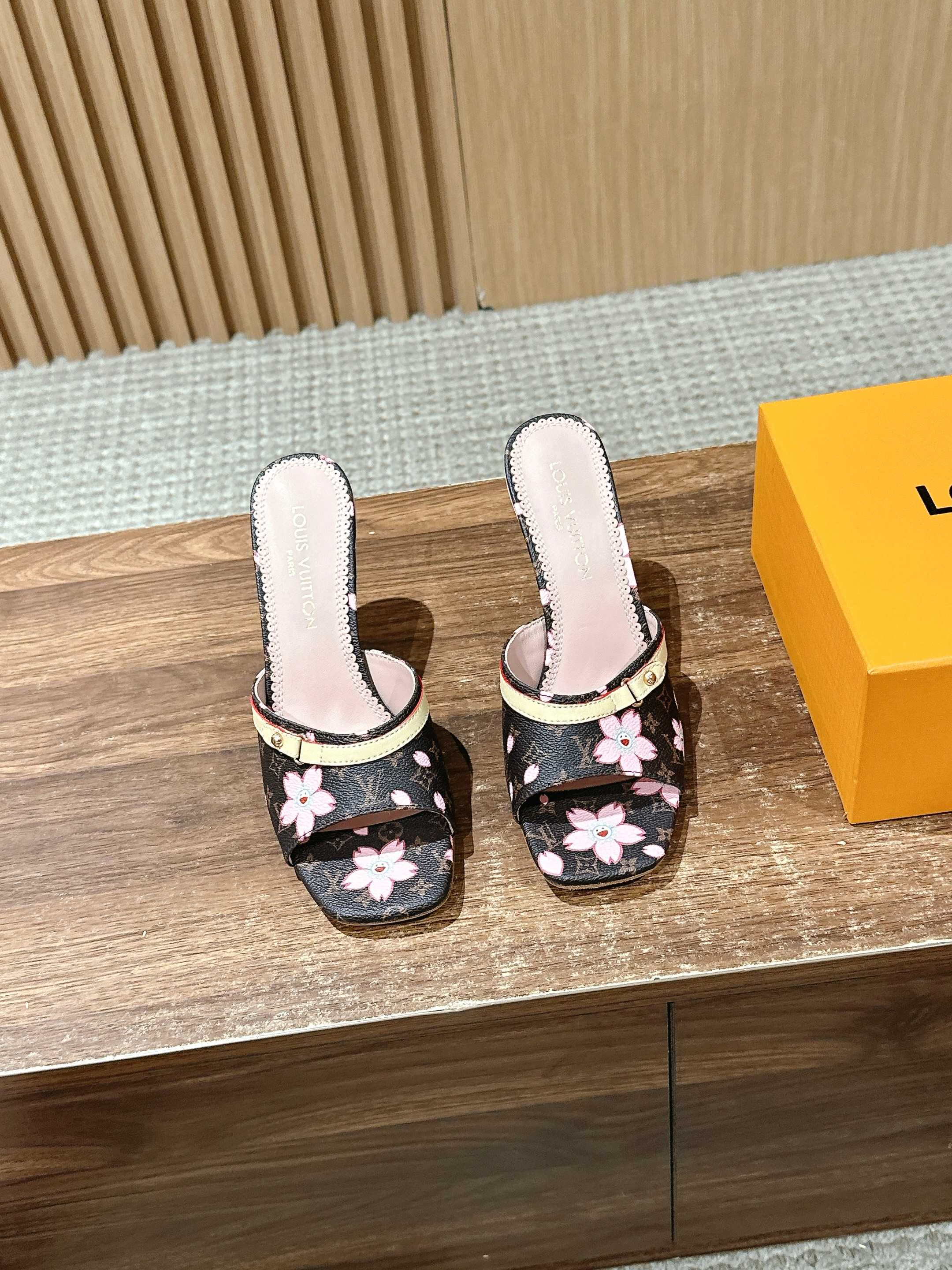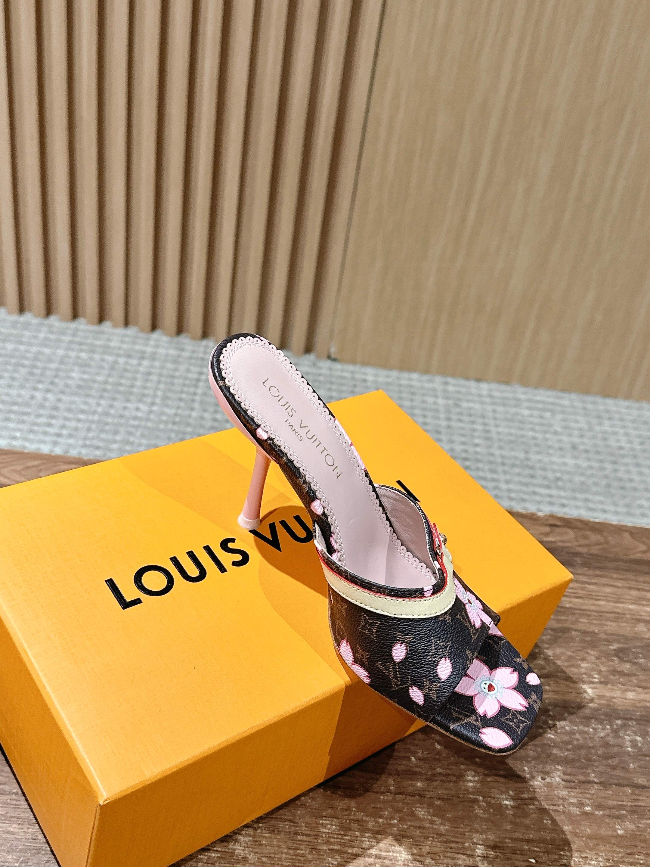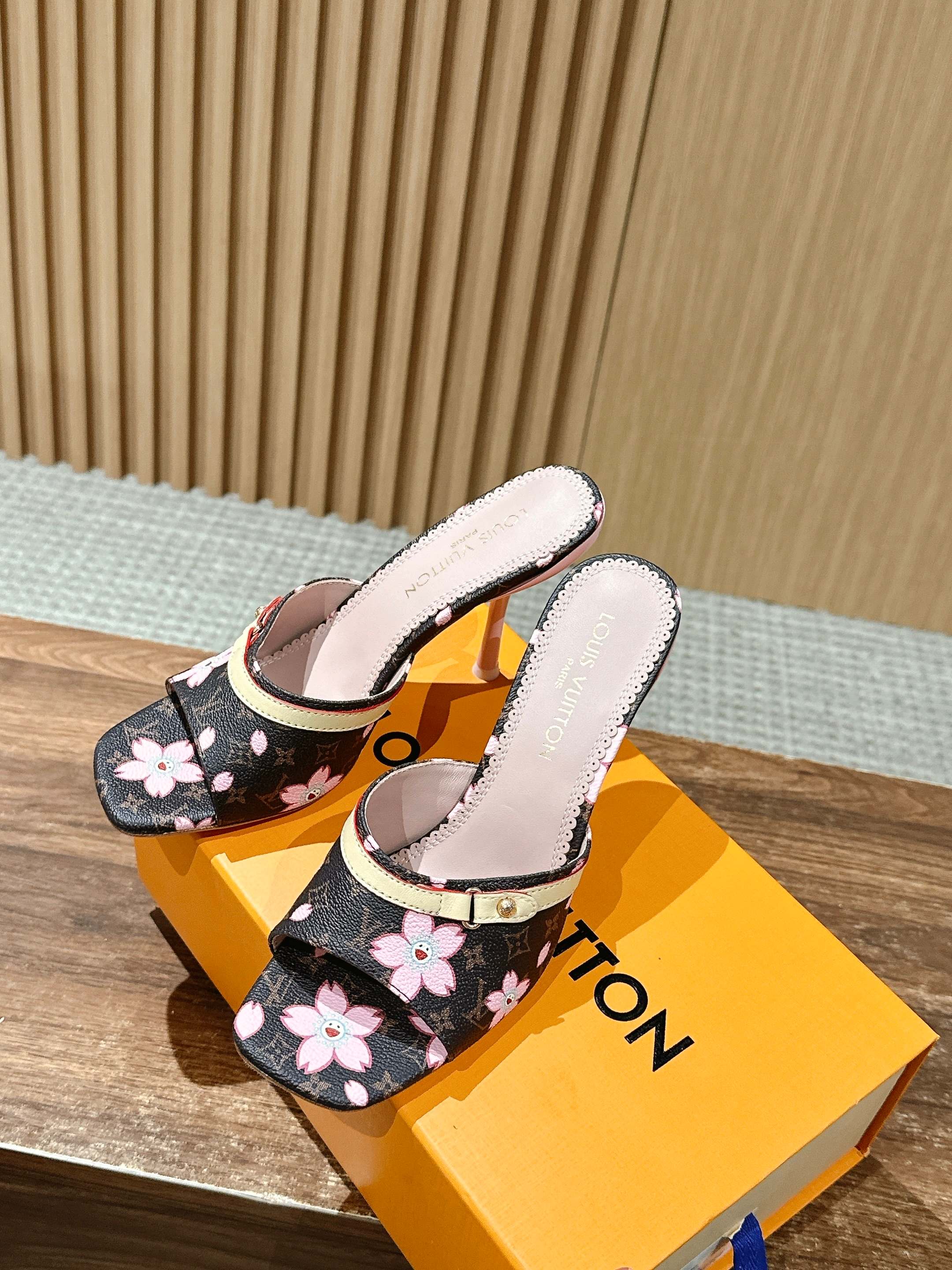 Louis Vuitton Revival 2025/SS denim butterfly high-heel slippers. Genuine leather. Versatile style, pairs with casual or dressy outfits. Sizes 35-39.