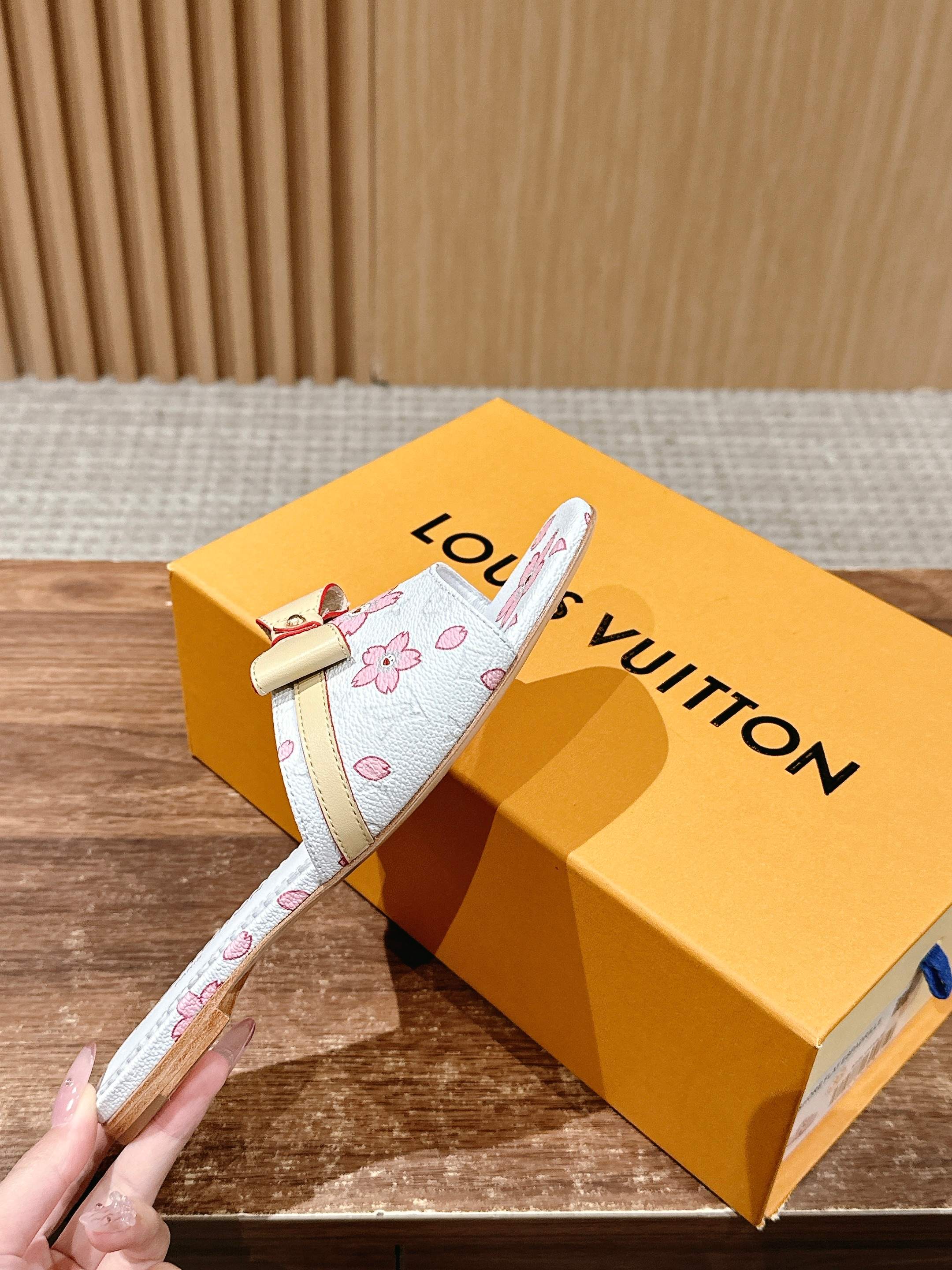 [Top Version] Louis Vuitton Revival 2025/SS New Denim Cowboy Series Small Butterfly Flip-Flops Printed Slippers Lambskin Lining Genuine Leather Sole