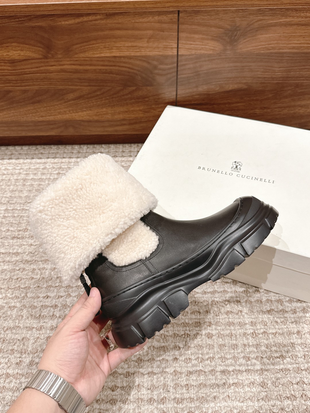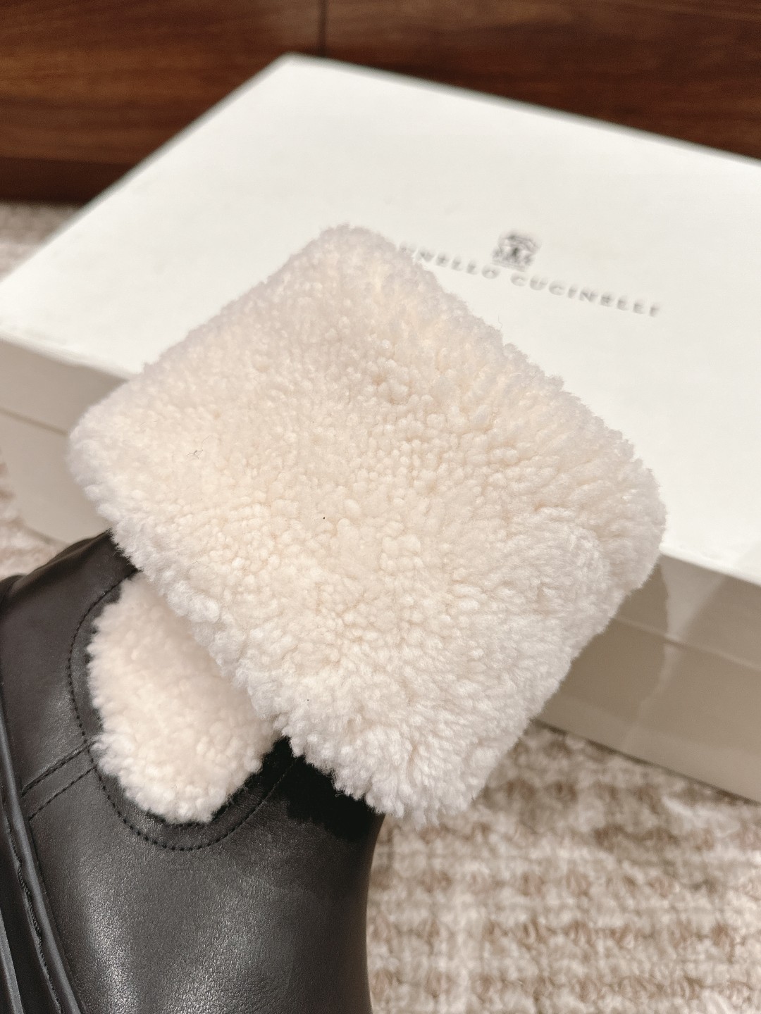 [Top Version] Brunello Cucinelli BC is a rare find, comfortable to wear, aesthetically pleasing and elegant, with a connotation of sophistication, popular both domestically and internationally. Matte calfskin/suede combination with uniform texture and soft shearling sheepskin inlays, reinterpreting the volume of classic boots with ethnic-inspired details. Size: 35-41 (35/40/41/custom orders are non-refundable)