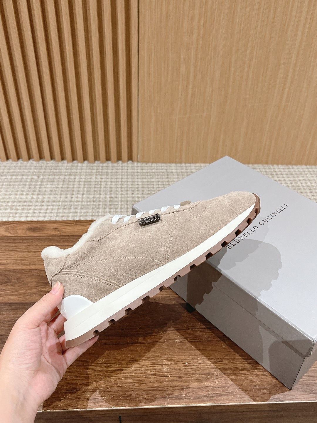 [Top-tier Version] Brunello Cucinelli# The most popular casual sports shoes for all seasons, both domestically and internationally. Over ten original pairs were purchased, and after more than half a year of development and meticulous craftsmanship, each step of the process was inspected by dedicated personnel. High-quality shoe soles were produced using 1:1 molding. All materials, including top-grain leather for the uppers, hardware, lambswool, lining, and packaging, were custom-made 1:1 according to the original. The result is a high-end shoe that is comfortable to wear, aesthetically pleasing, breathable, elegant, and versatile. Sizes: 36-40 (Custom orders for 35/41/42 are non-returnable).
