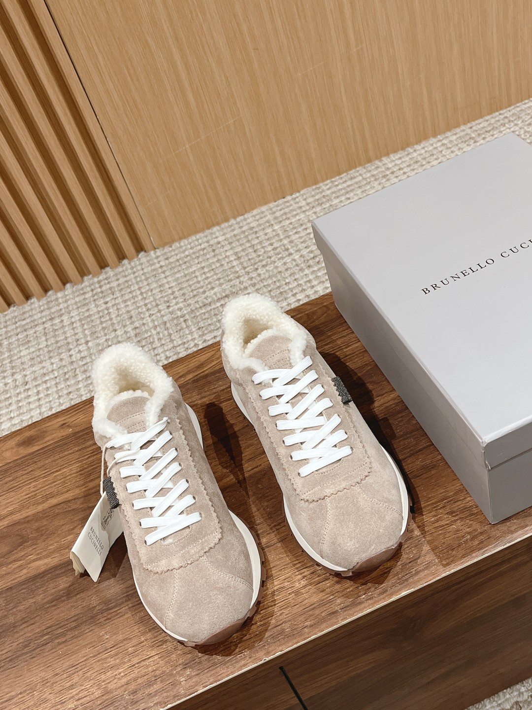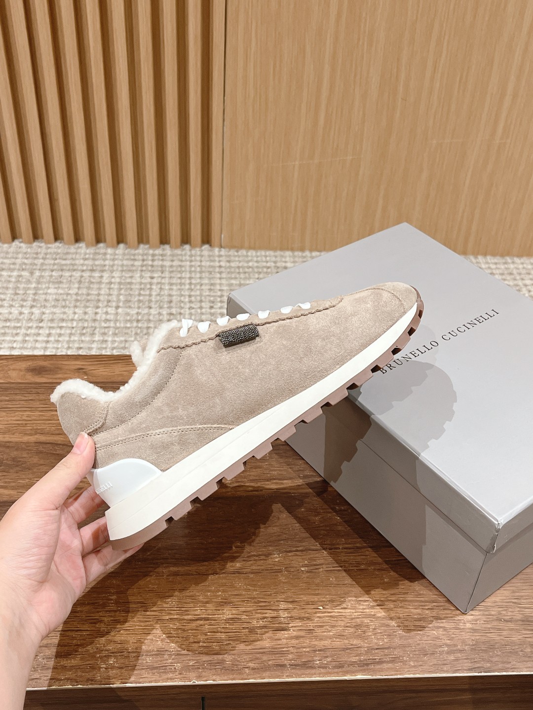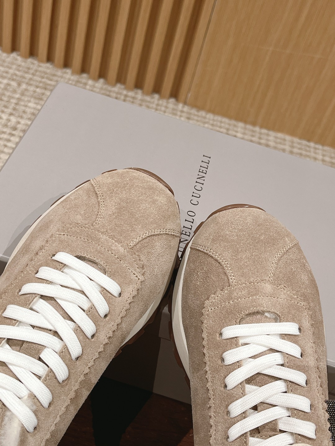 [Top-tier Version] Brunello Cucinelli# The most popular casual sports shoes for all seasons, both domestically and internationally. Over ten original pairs were purchased, and after more than half a year of development and meticulous craftsmanship, each step of the process was inspected by dedicated personnel. High-quality shoe soles were produced with 1:1 molding. All materials, including top-grain leather for the uppers, hardware, lambswool, lining, and packaging, were custom-made 1:1 according to the original. Truly achieving comfortable, stylish, breathable, elegant, and versatile high-end shoes. Size: 36-40 (Custom orders for 35/41/42 are non-refundable).