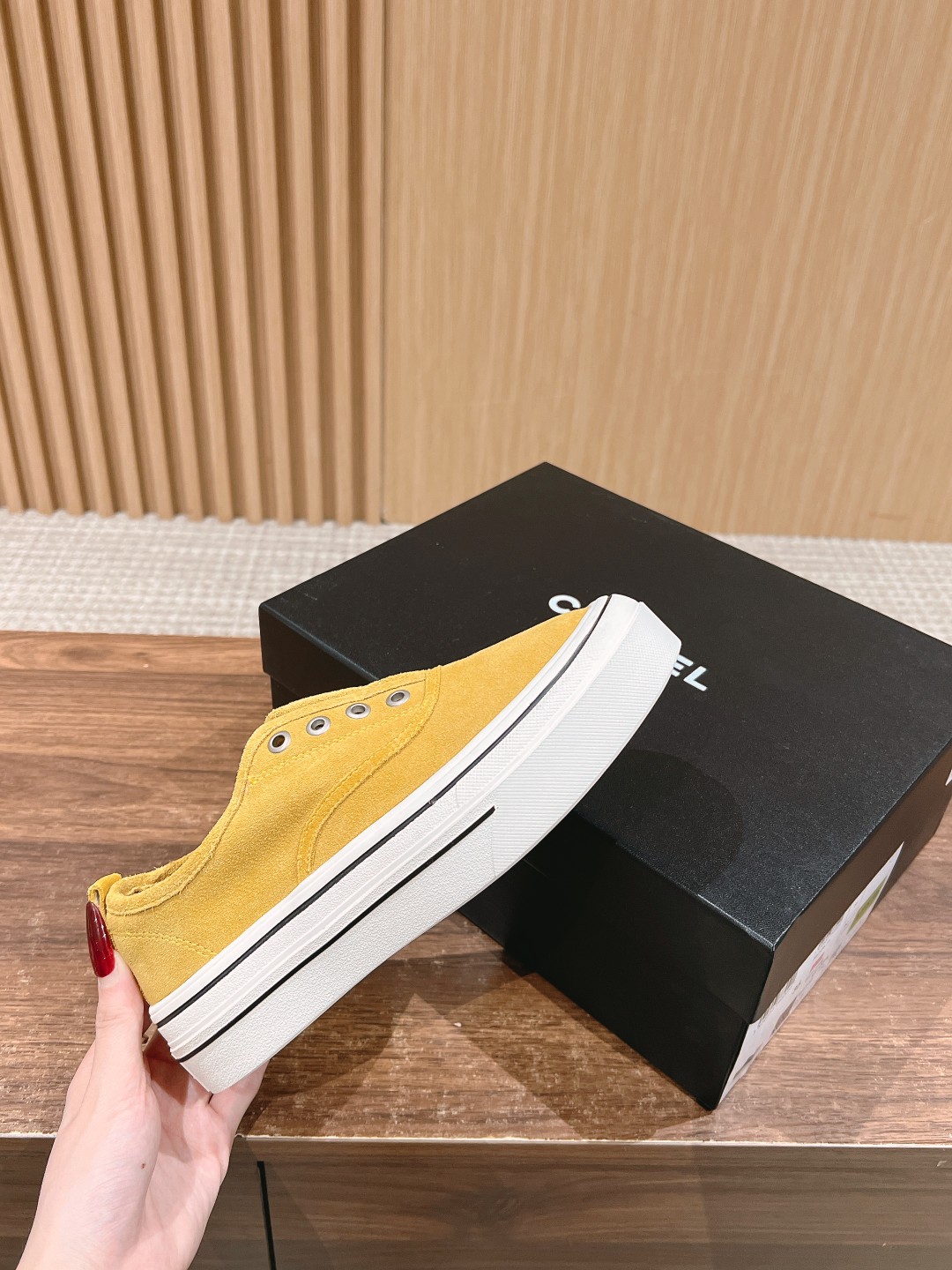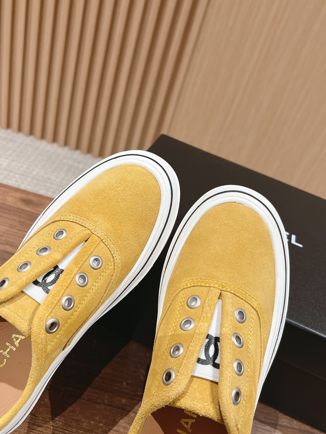 The design of these white sneakers is very minimalist and elegant, without excessive decoration, giving a very clean and sharp feeling. The canvas upper paired with the laceless design appears very fashionable. Moreover, Chanel's classic double C logo is cleverly designed on the upper, enhancing the overall brand气质. The sole uses a rubber outsole, making it very comfortable to wear. It's a versatile product!!