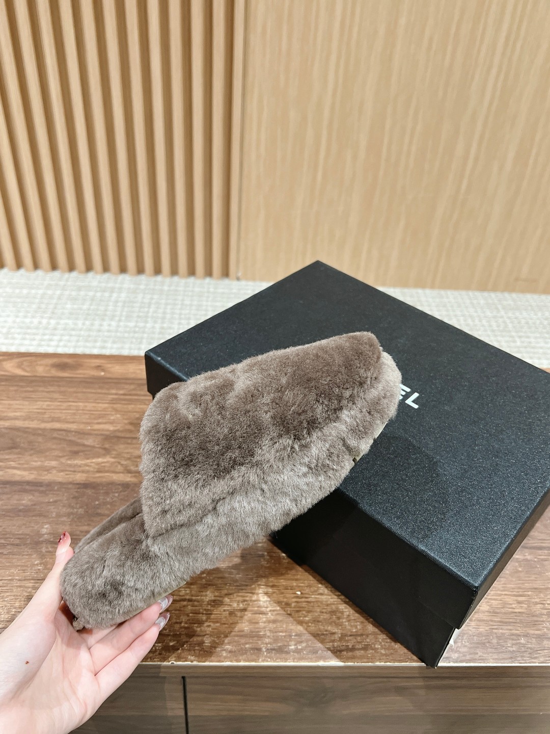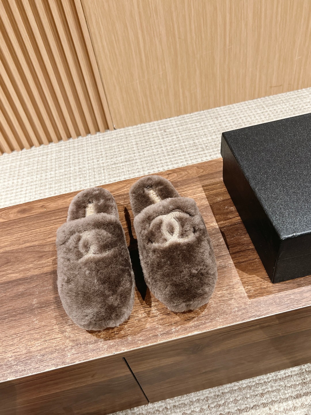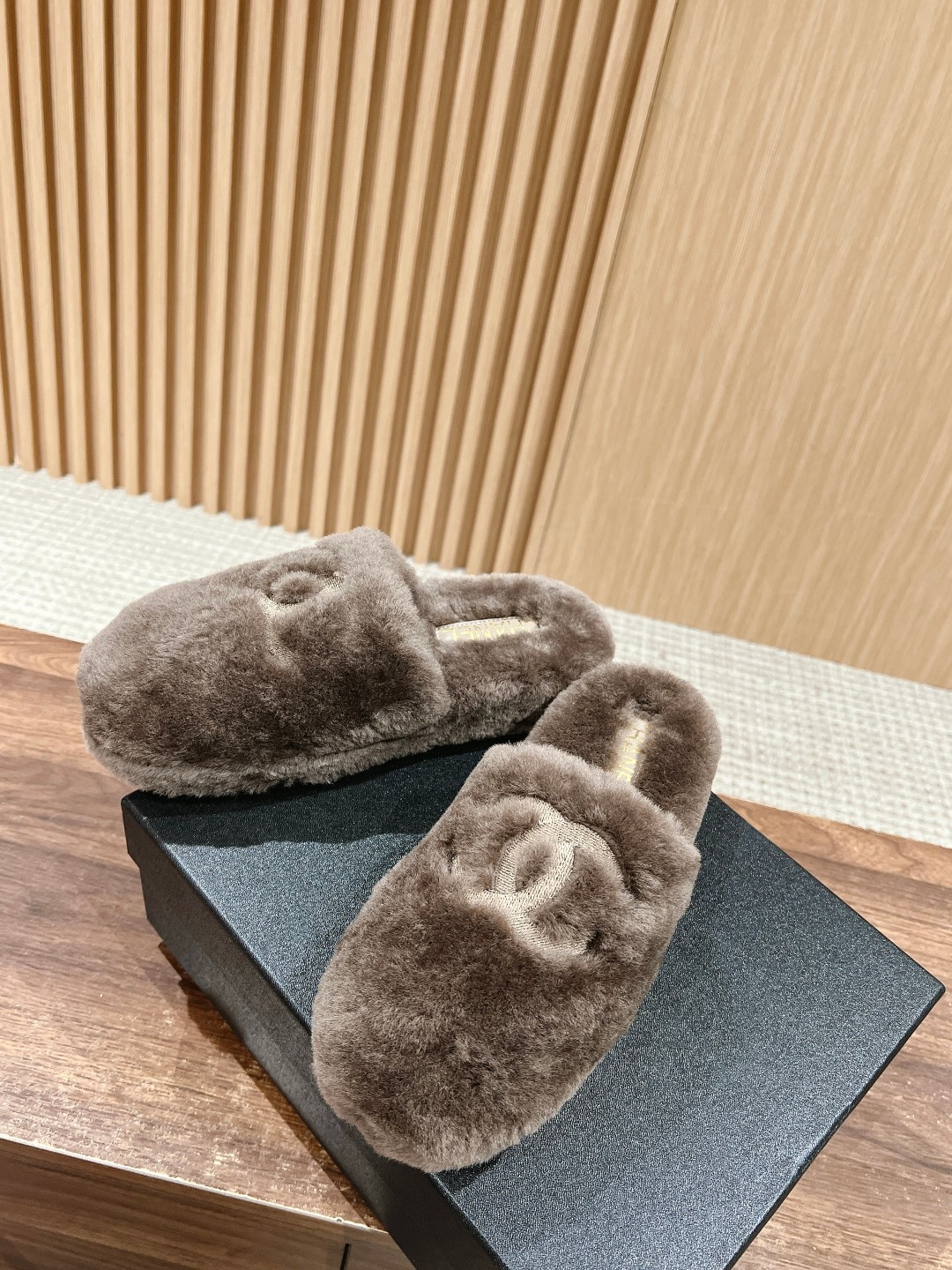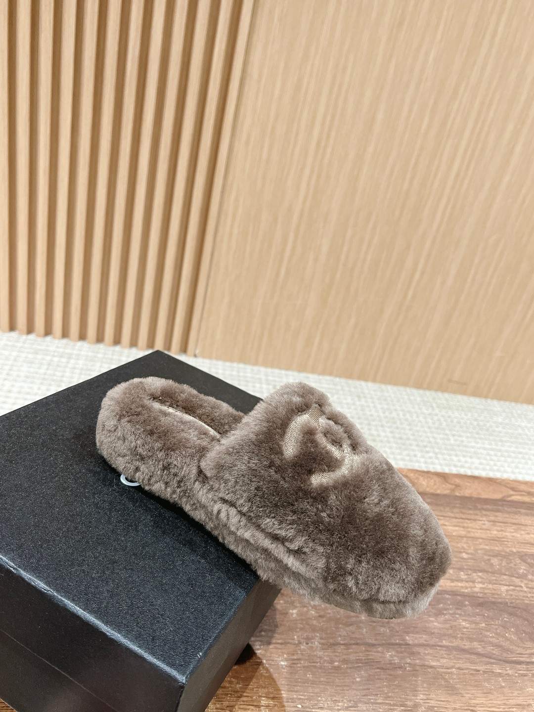 [Top Version] CHANEL Autumn/Winter New C Logo Thick-Soled Closed-Toe Fur Slippers