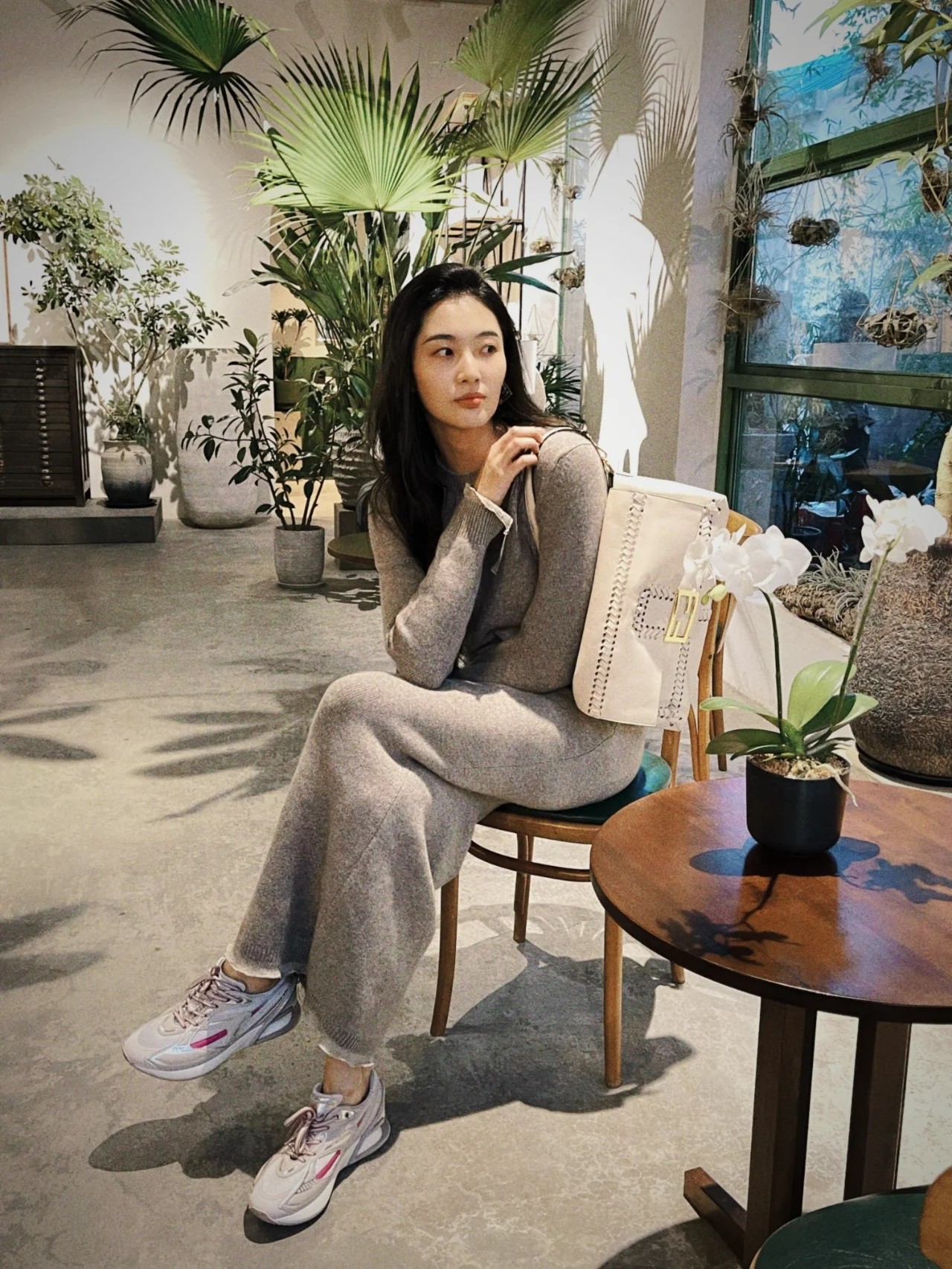 Celebrity wearing sneakers.