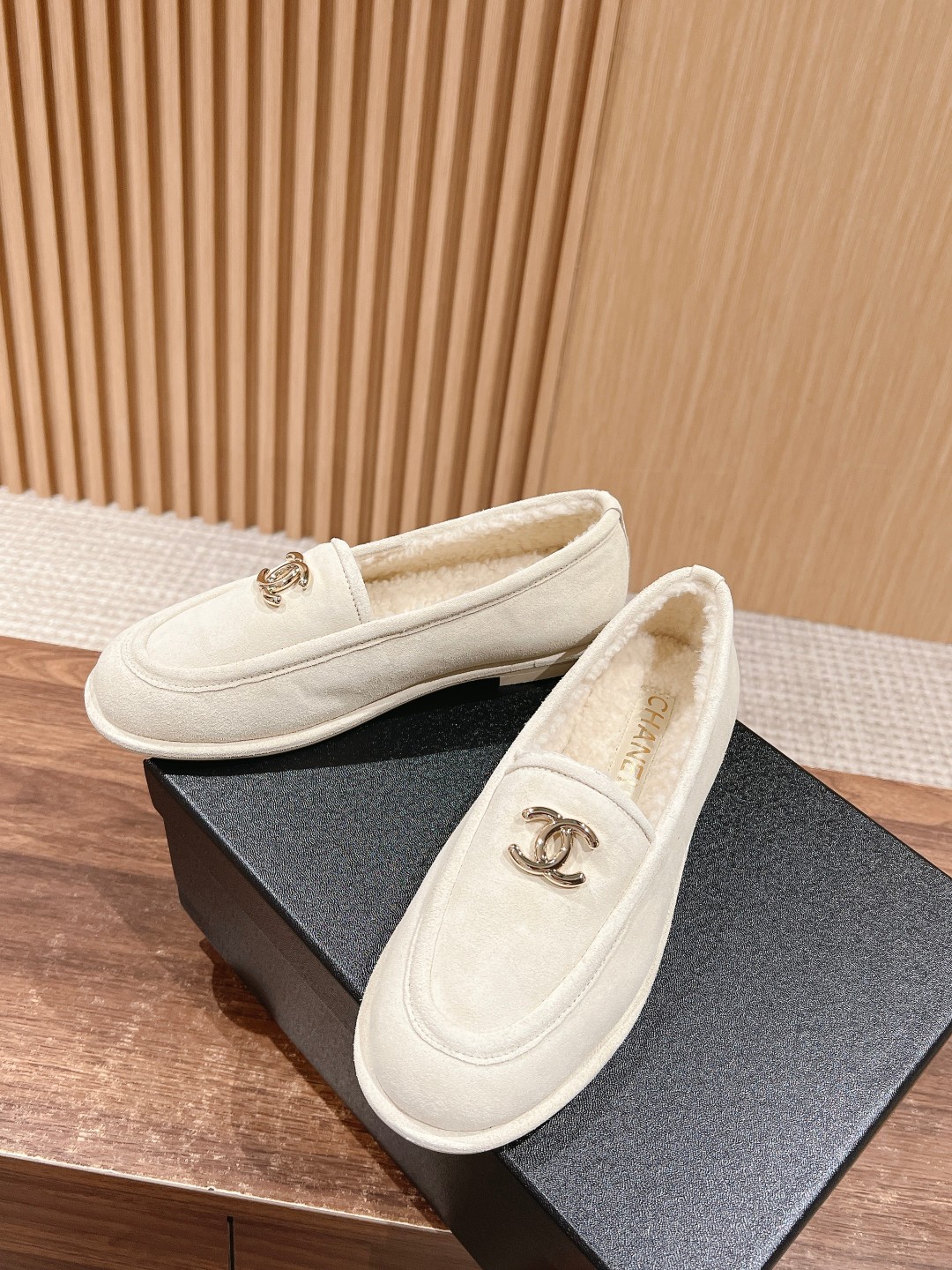 [Top Version] Chanel 24K Chanel Teddy Maillard Suede Loafer Bean Shoes Super cute, integrated fur for excellent warmth. Paired with a double C logo buckle, it brings that retro academic style vibe. Comfortable and soft on the foot. For autumn and winter with socks, it is recommended to size up for a more comfortable fit without tightness. Size: 35-39 (40/41 custom-made, no returns or exchanges)