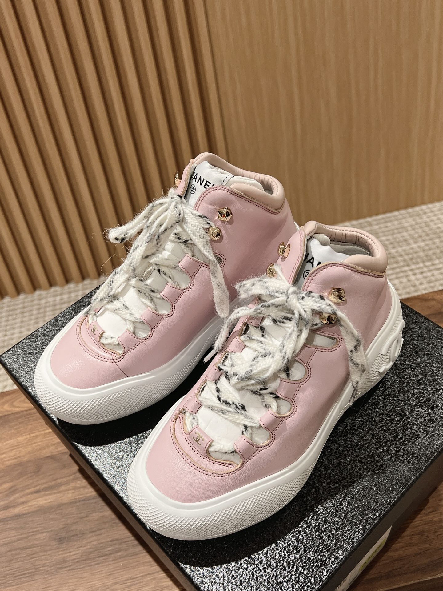 [Top Version] Leather Surface Chanel 2022N Coco Neige Ski Series Snow Boots Small Fragrance C House Autumn Winter Limited Edition Sport Lace-Up Platform Women's Boots Jennie Same Performance Shoe Comfortable and Easy to Wear Also Super Cool Molded Anti-Slip Studded Outsole Each Pair Comes with a Special Keychain Anti-Slip Double C Logo Can Be Opened Upper Calfskin Tweed Fabric Lining Lamb Leather Sole Molded Two-Tone Outsole Sole Approximately 5cm 35-40