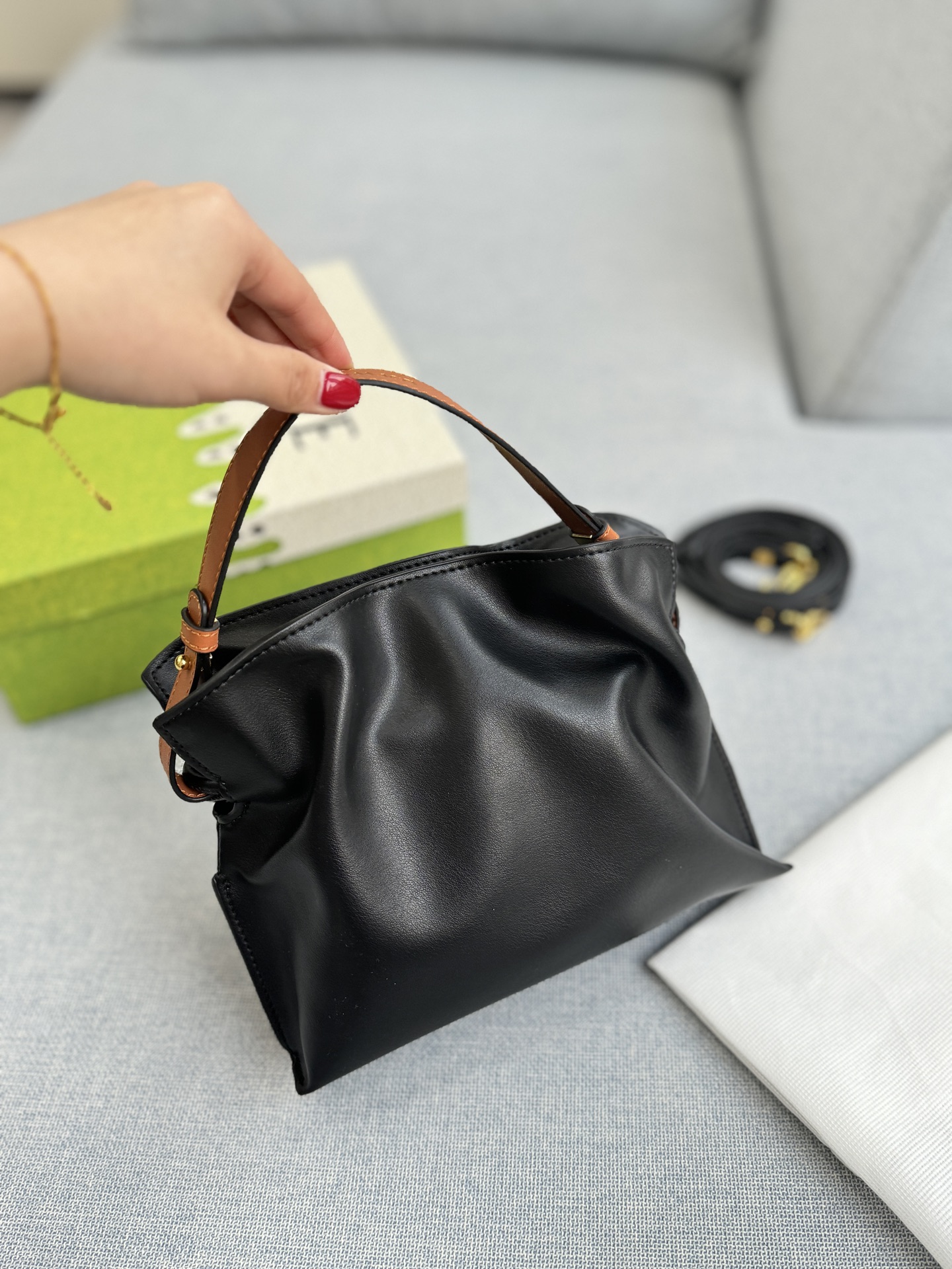 Switching to underarm carry gives more of a trendy, edgy vibe.
