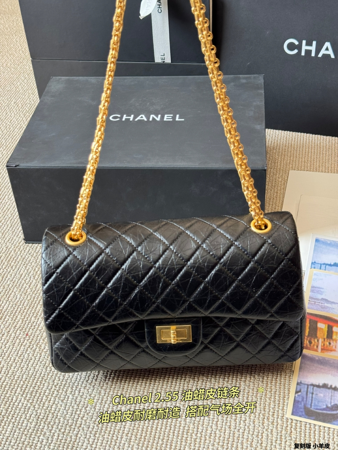 CHANEL|2.55 Waxed Leather Chain Bag