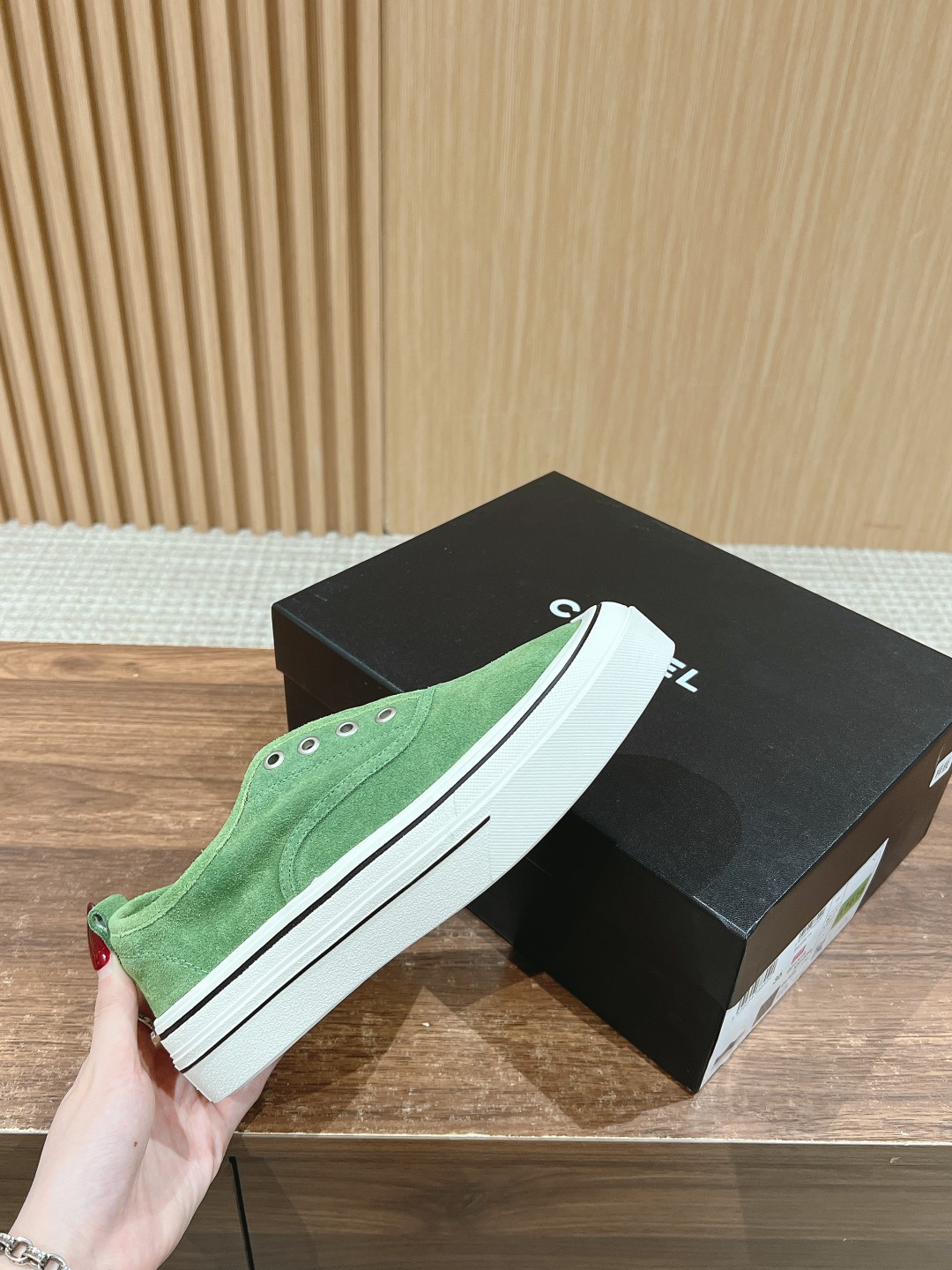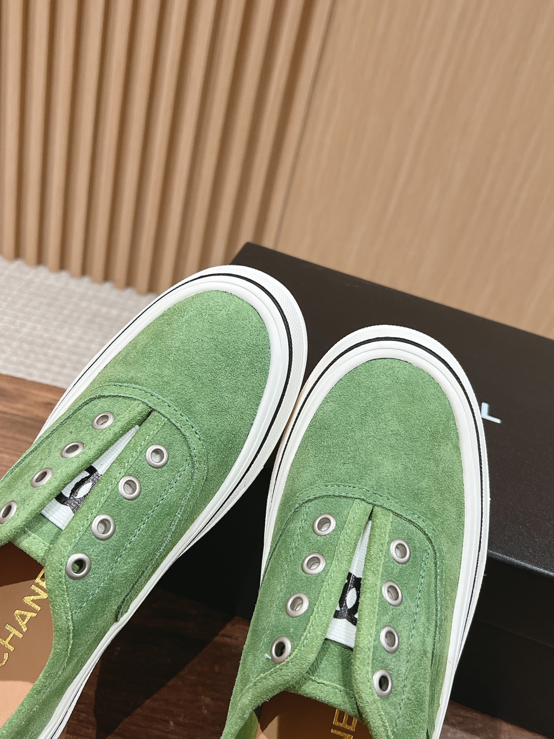 The design of these white sneakers is very minimalist and elegant, without excessive decoration, giving a very clean and sharp feeling. The canvas upper paired with the laceless design appears very fashionable. Moreover, Chanel's classic double C logo is cleverly designed on the upper, enhancing the overall brand气质. The sole uses rubber for great comfort, making it a versatile product!!