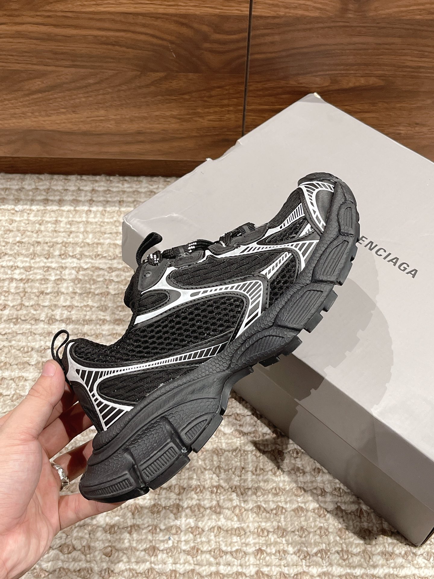 [Top Version] Balenciaga Paris世家 Nine Generations 23SS Latest Hit 3XL Sneaker Series Couple's Style Casual Dad Shoes Sports Shoes Original Purchase Development Production Balenciaga 3XL Sneaker The overall shoe shape draws inspiration from the design concepts of both the Balenciaga Track and Balenciaga Runner models, essentially removing the outer frame of the Track upper while inheriting the streamlined form of the Runner and the flat toe of the Track. An additional pair of tied laces is added to the front section of the upper for styling. Fabric: Original custom imported technical fabric + mesh Lining: Original custom breathable mesh lining Outsole: Original molded ultra-light MD combined rubber sole Sole thickness: 5CM Size: 35-45