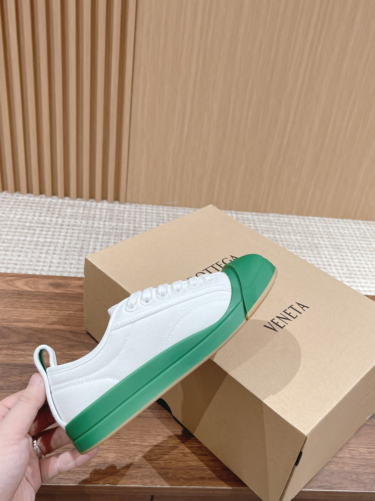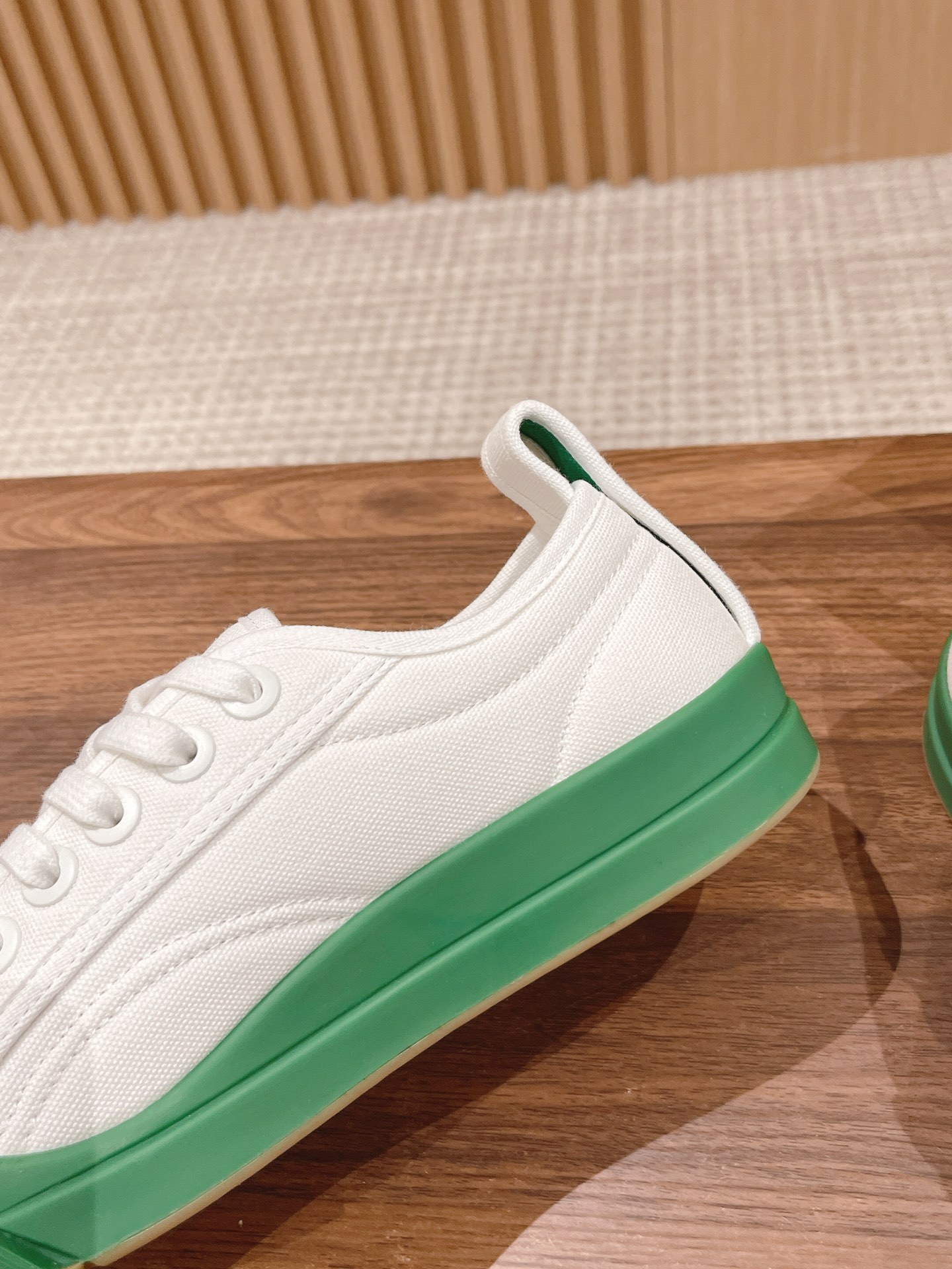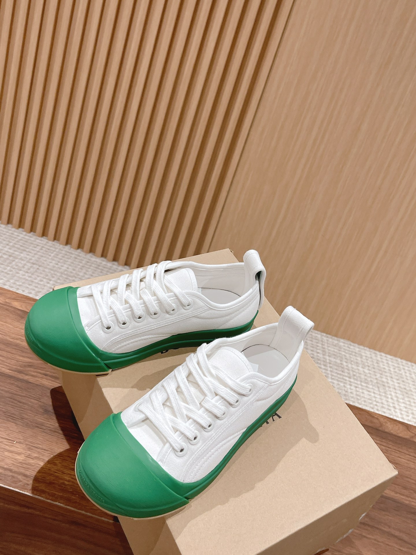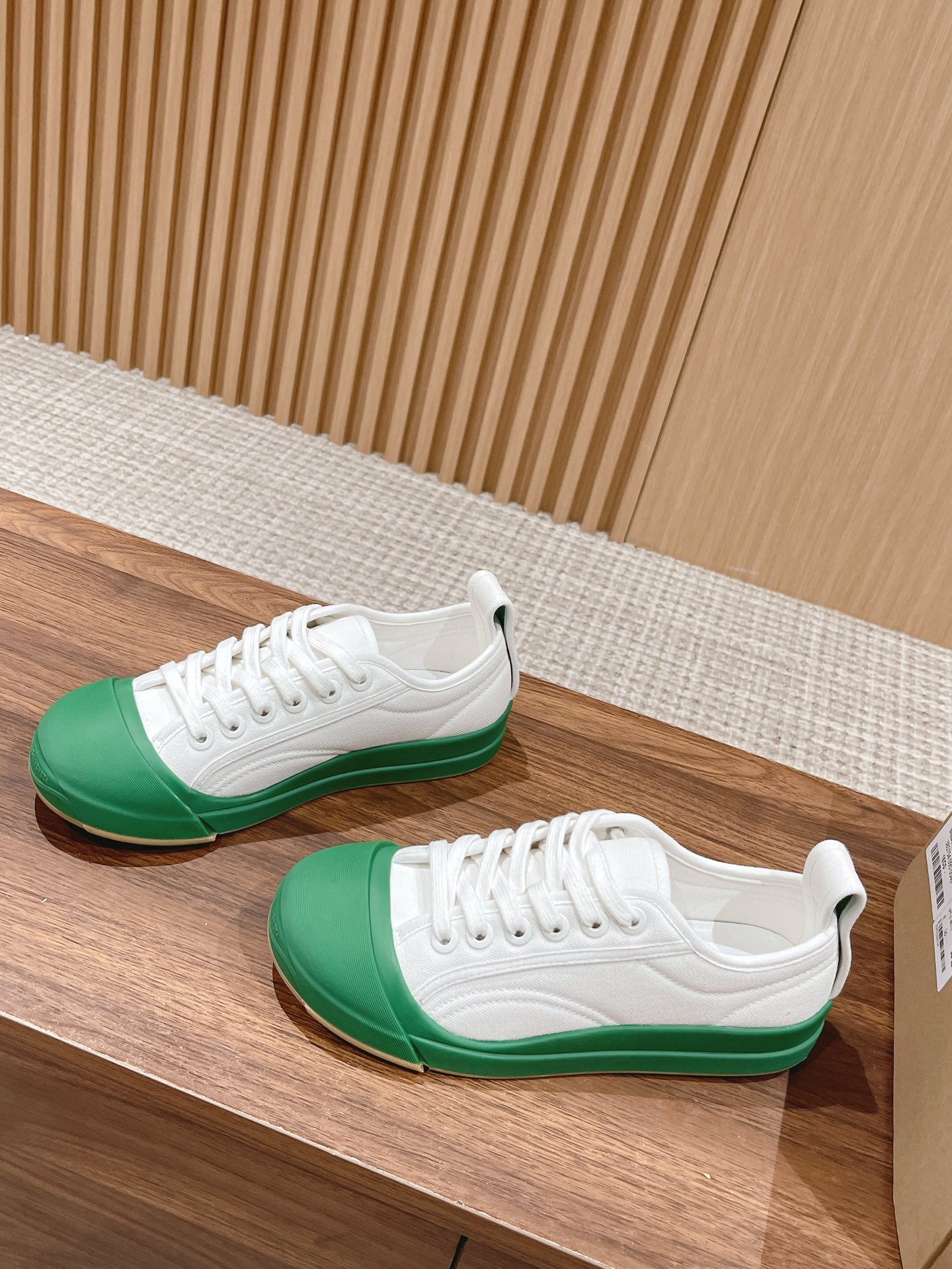 [Top Version] Bottega Veneta 2023 Latest IVULCAN #Mickey Smiling Canvas Shoes Casual Athletic White Shoes BV Summer Creative Director Matthieu Blazy Same Runway Style Canvas Upper + Classic BV Green Round Toe Design, Really Full Of Design Sense Simple Design Can Be Worn All Year Round! Extremely Comfortable Feel