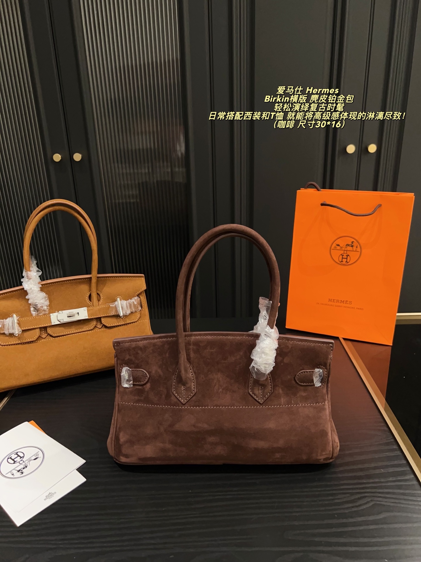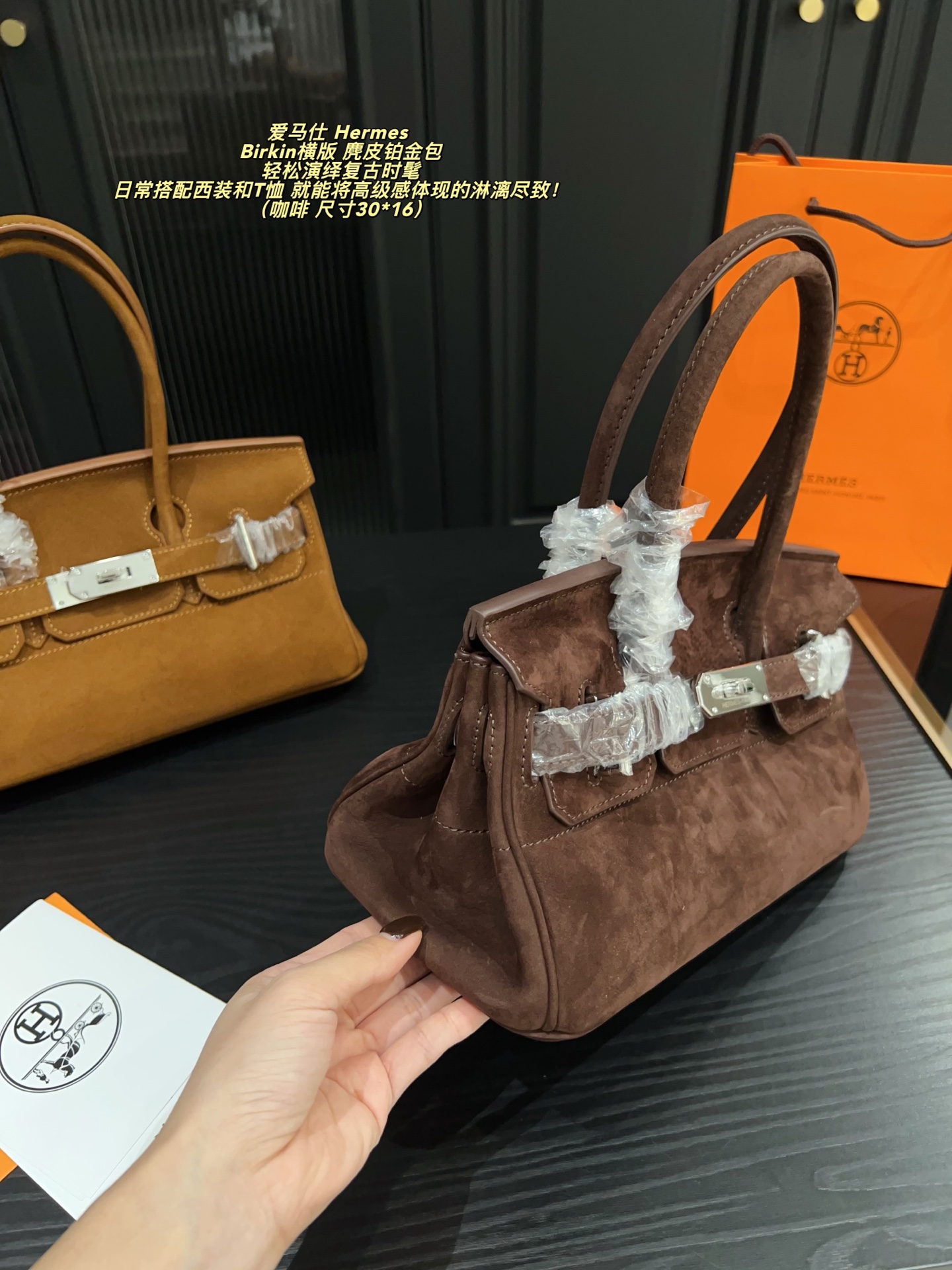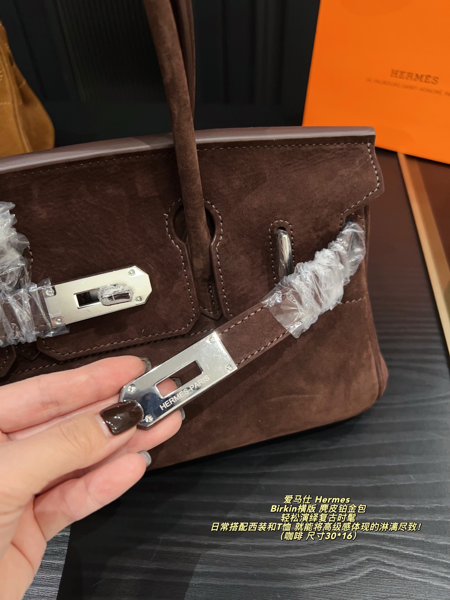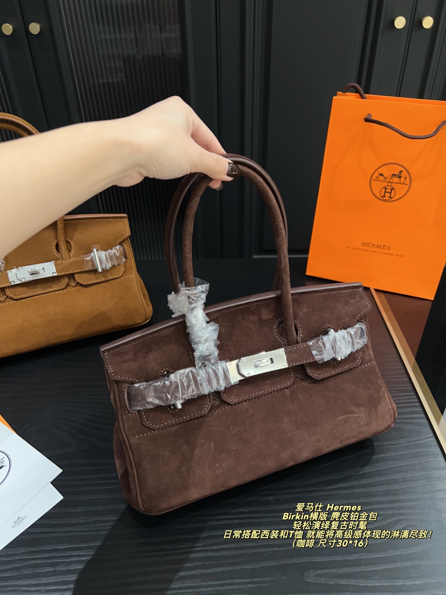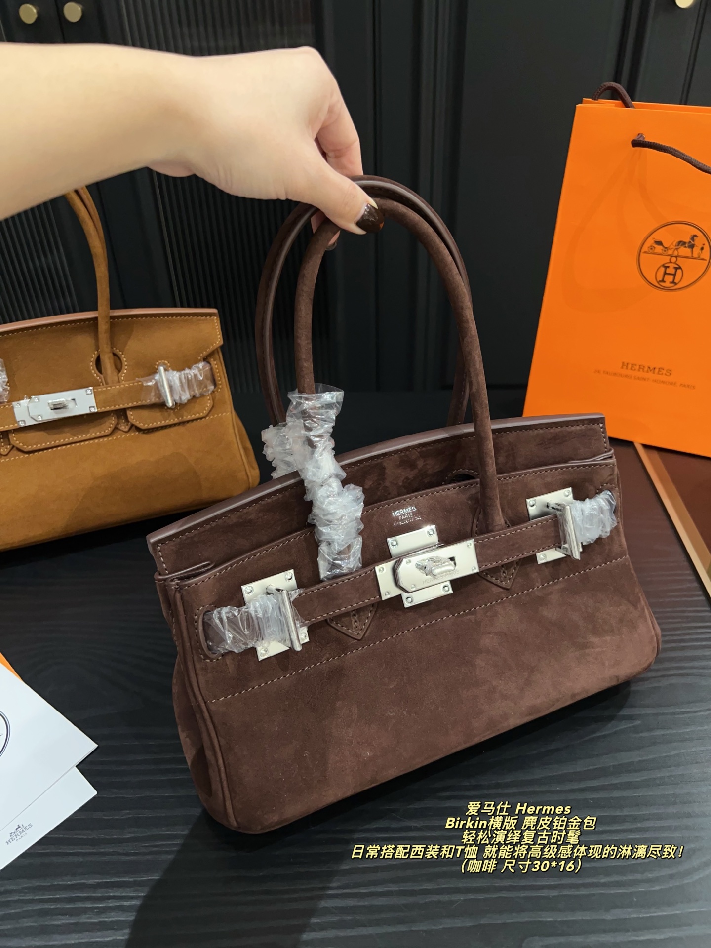 Hermes Birkin horizontal version suede Birkin bag