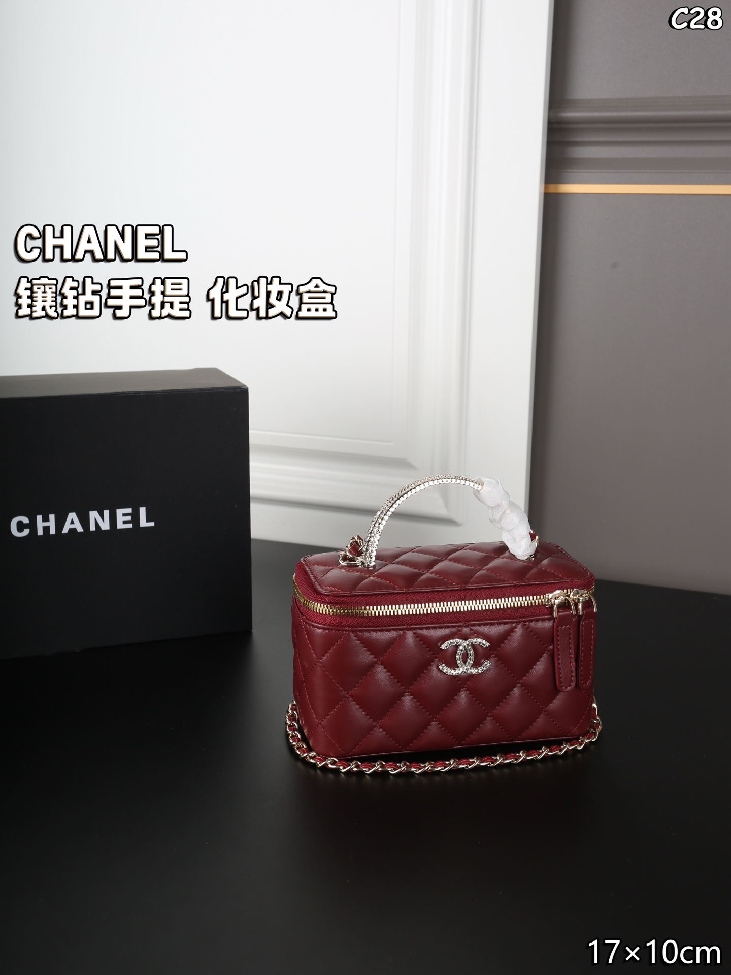 CHANEL Diamond-Studded Handheld Makeup Box Makeup Bag Chain Bag Box Bag