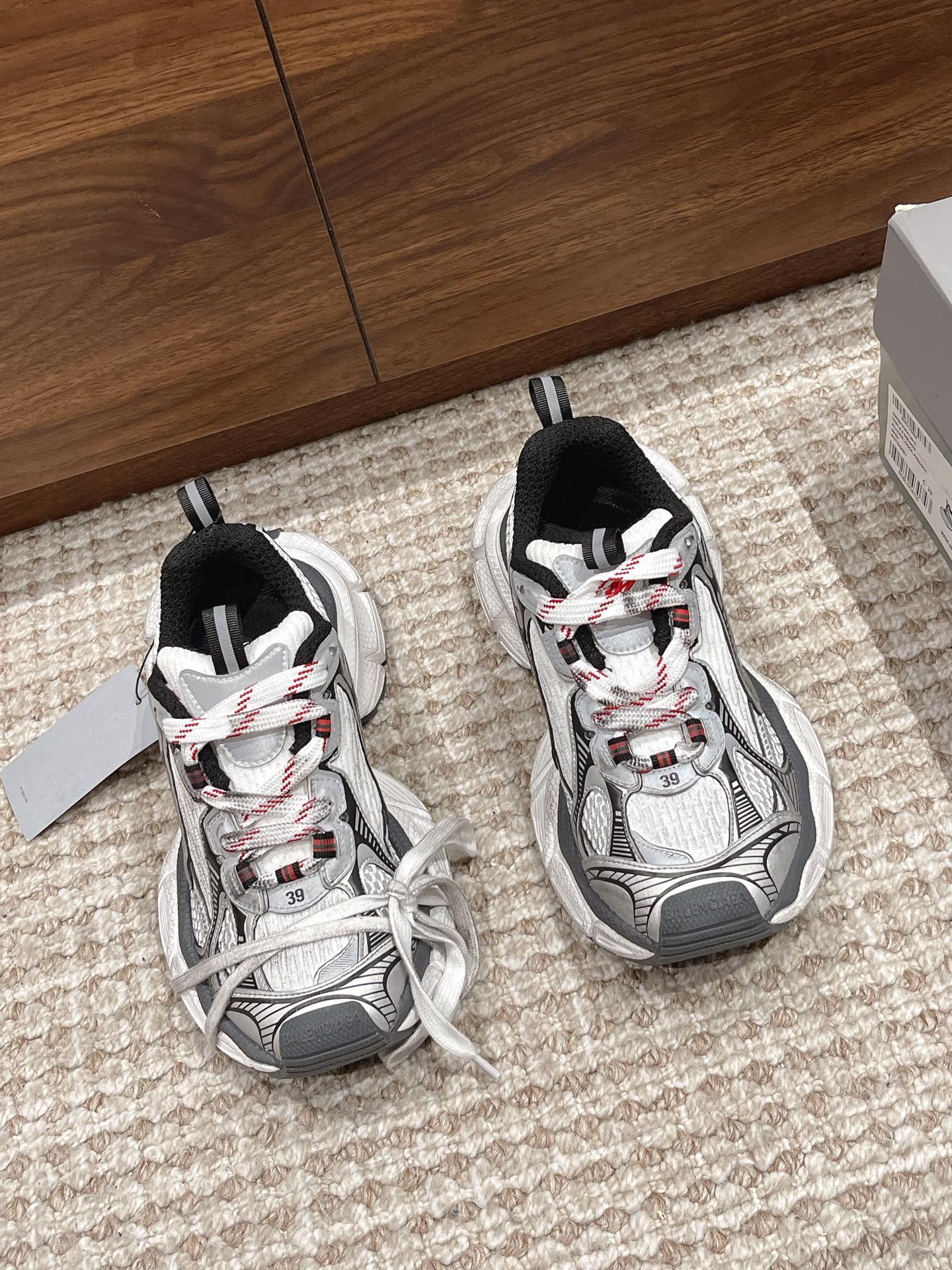 [Top Version] Balenciaga Paris世家 Ninth Generation 23SS Latest Hit 3XL Sneaker Series Couple Style Casual Dad Shoes Sports Shoes Original Purchase Development Production Balenciaga 3XL Sneaker The overall shoe shape draws creative inspiration from both the Balenciaga Track and Balenciaga Runner models, essentially removing the outer frame of the Track upper while inheriting the streamlined form of the Runner and the flat toe of the Track. An additional pair of tied laces is added to the front section of the upper for styling. Fabric: Original custom imported technical fabric + mesh Lining: Original custom breathable mesh lining Outsole: Original molded ultra-light MD combined rubber sole Sole thickness: 5CM Size: 35-45