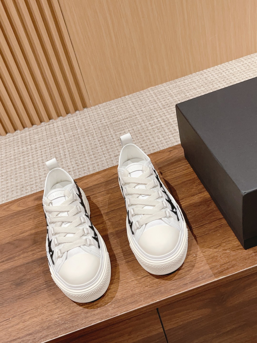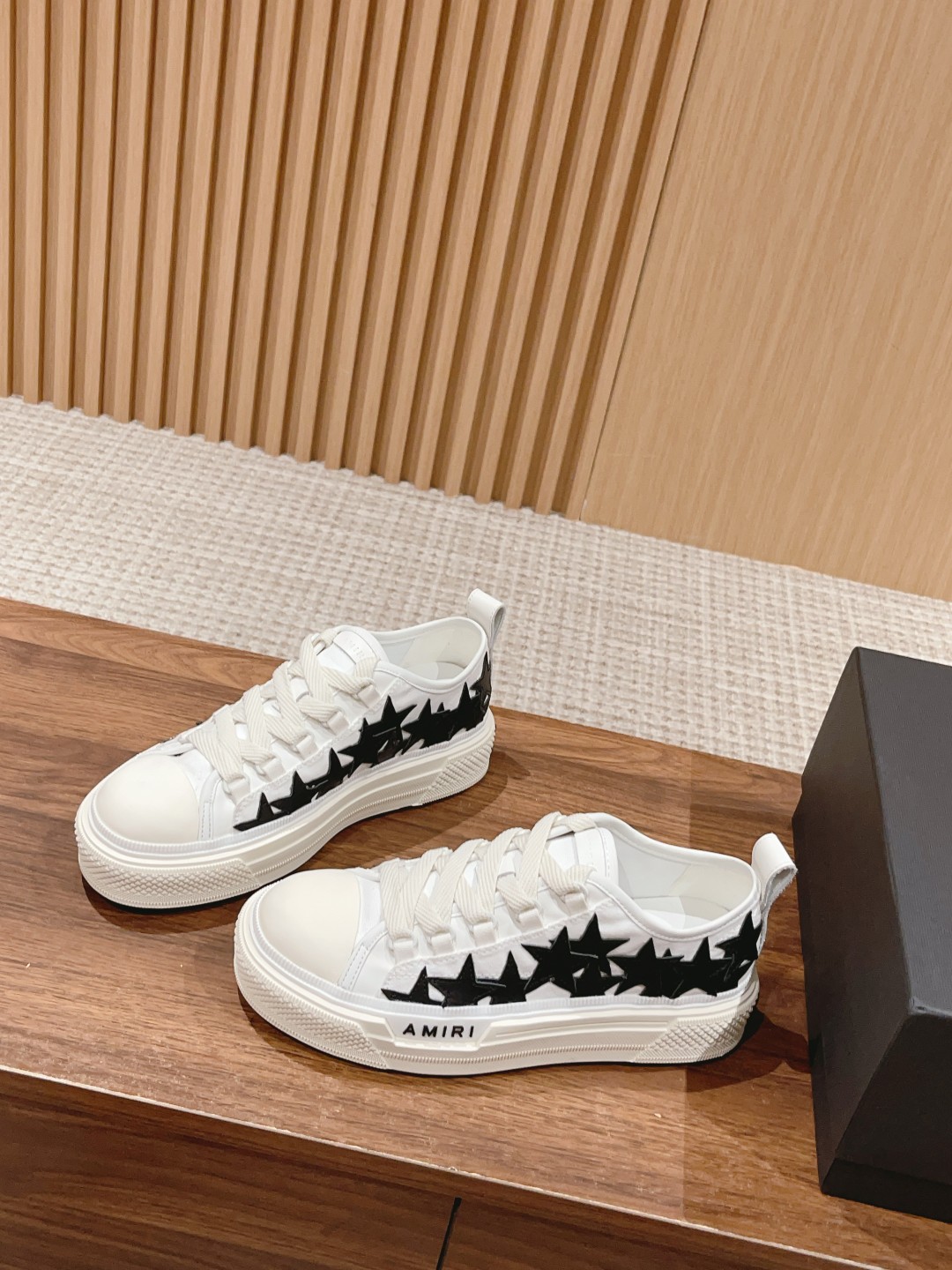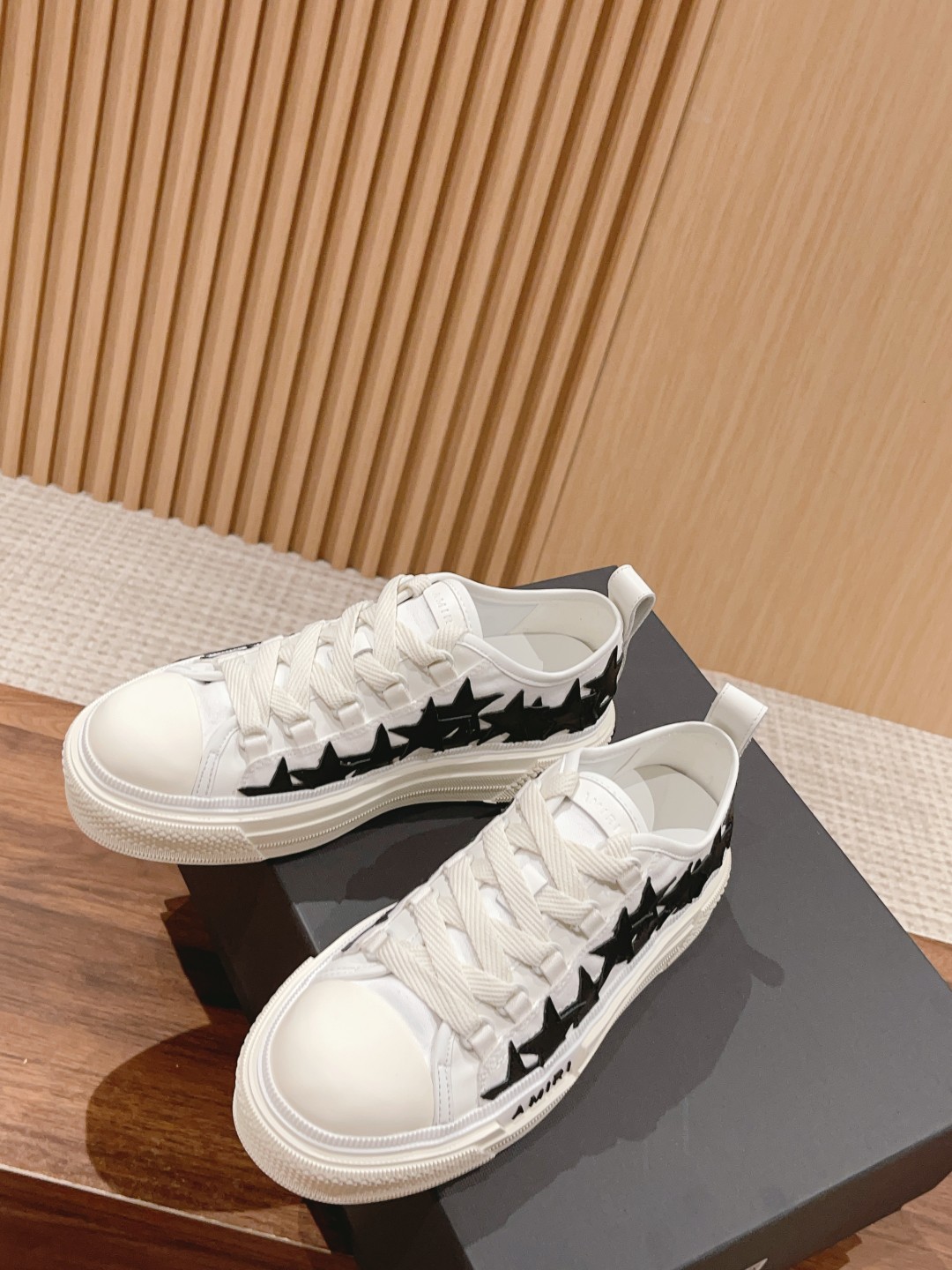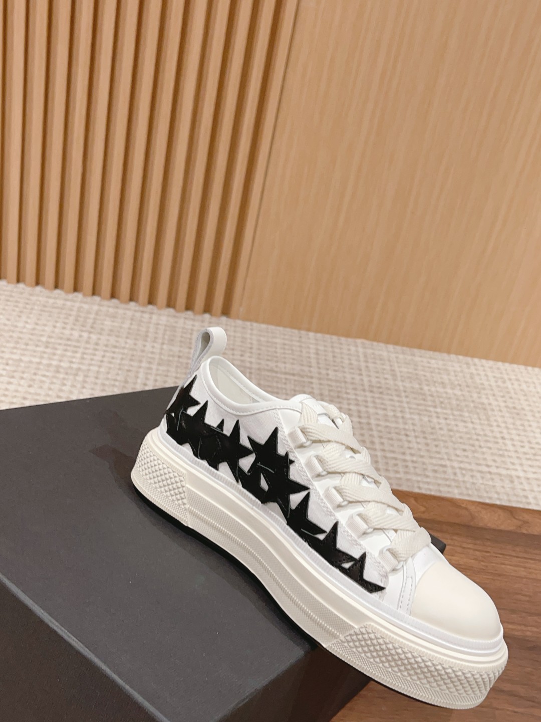 STARS low-top lace-up sports shoes. Complex star pattern collage brings a free and unruly style, black and white color contrast hook surface for a personalized eye-catching look, presenting a exquisite blend of luxury aesthetics and design.
