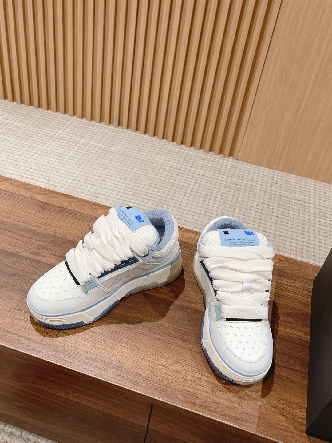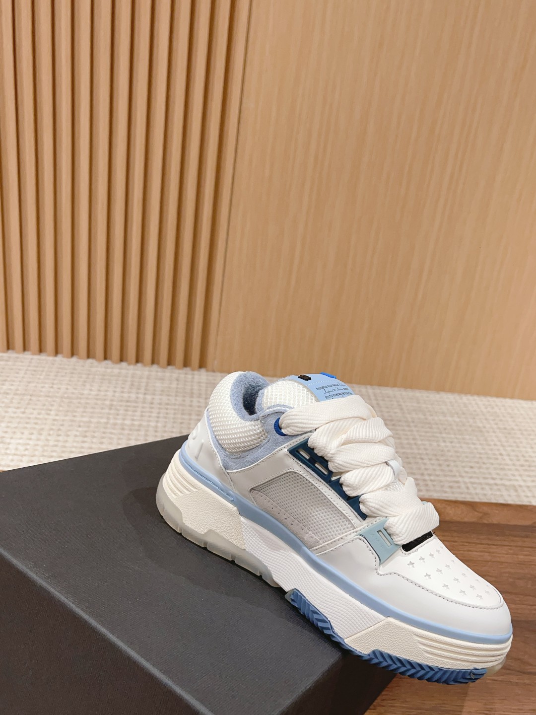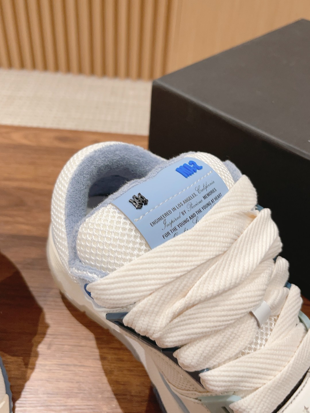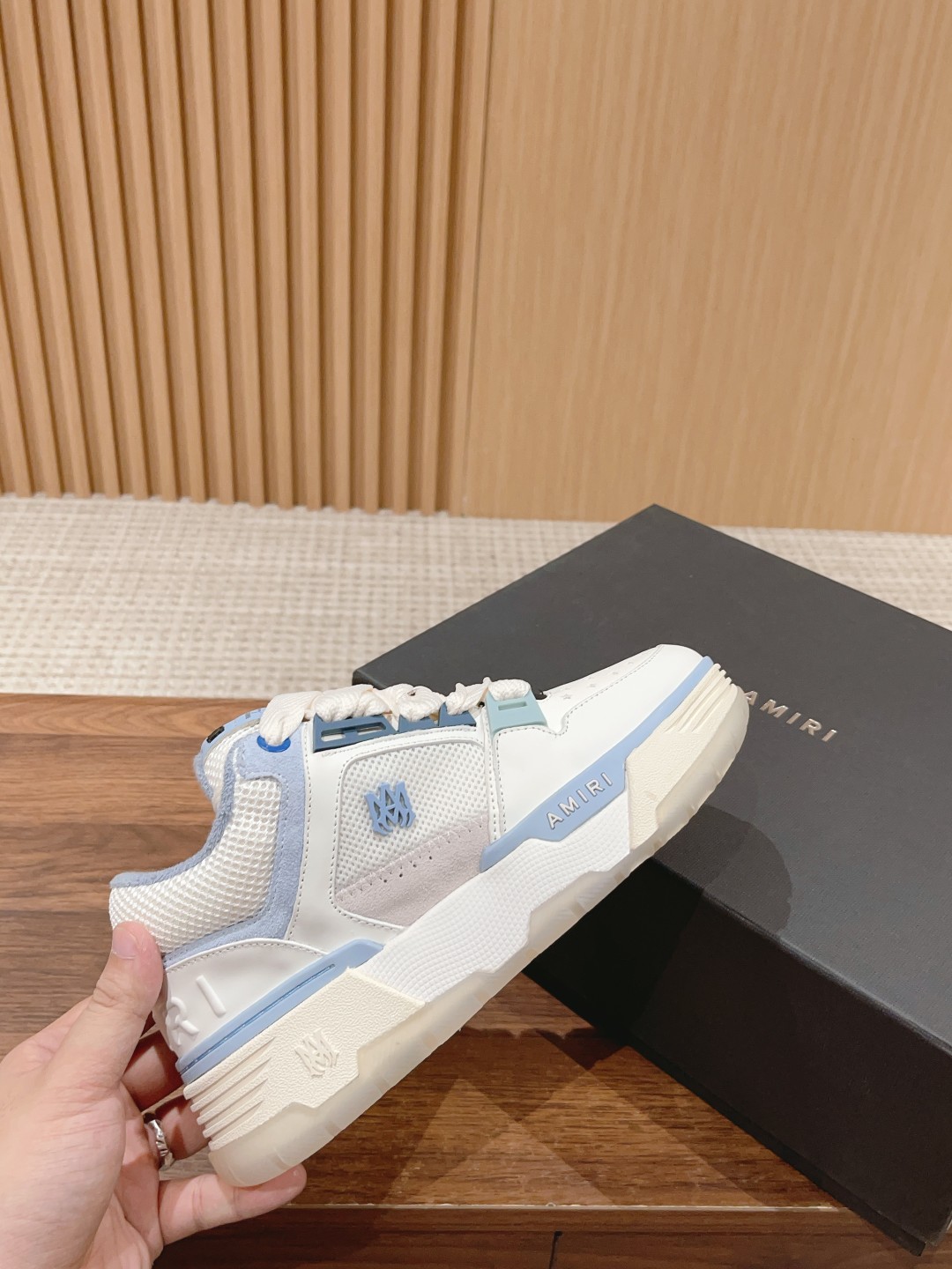[Top Version] Amiri #Emil New MA-1 Bread Shoe Couple Style Casual Sneakers Skate Shoes Amiri's new season abandons the rock punk style, using a large number of unsaturated color schemes, Morandi tones. Whether seen or worn, they are very physically and mentally pleasing. The large tongue of the bread shoe continues, the length of the shoe body is shortened, the midsole is thickened, and the toe part is more rounded. Amiri's brand letters and MA logo appear on the side of the shoe. Material: Original custom imported top-layer cowhide + mesh. Lining: Original custom breathable terry lining. Sole: Foam composite TPU material. Sole thickness: 4CM. Size: #Women's 35-40 / Men's 39-45