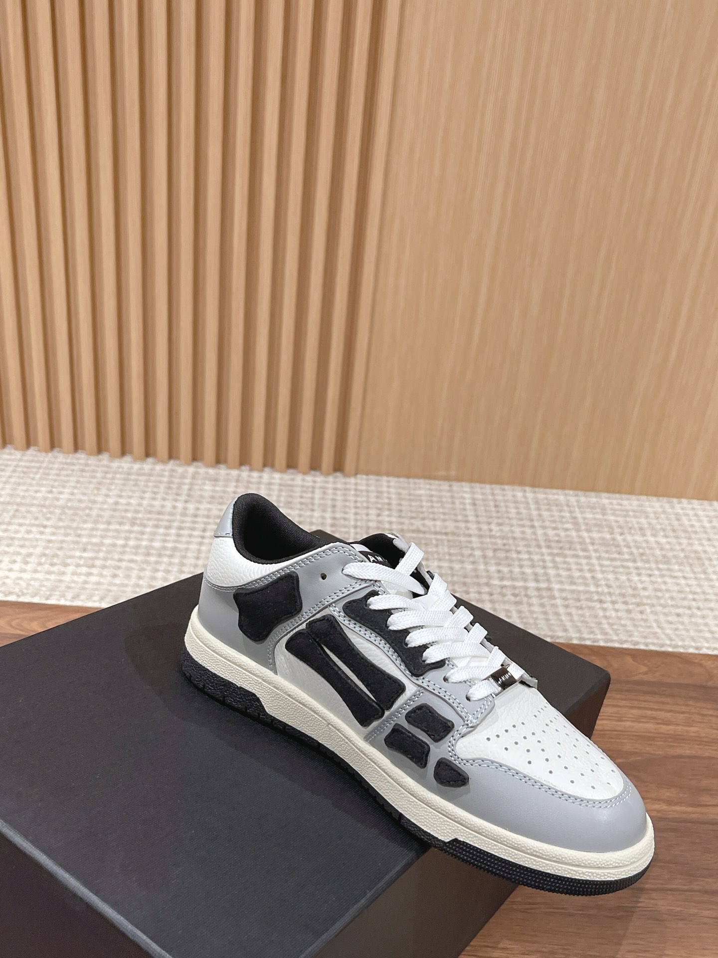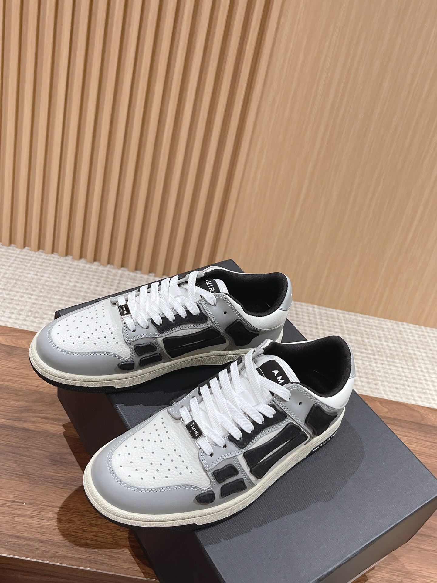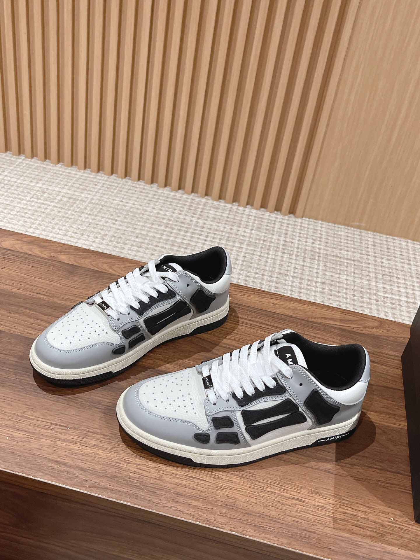 [Top Version] AMIRI New Street-Style Hit Bone High and Low Top Casual Sneakers. These niche sneakers are absolutely incredible, truly in a class of their own! Simple yet not basic, the overall style is very clean and extremely versatile when worn!! The upper construction of these shoes is quite complex, with many details requiring precise handling. Exclusive molded TPU outsole. The bone design on the shoe side uses two layers of cowhide for a laminated treatment, creating a better three-dimensional effect. All leather cuts are edged. Custom metal LOGO plaque and hang tag.
