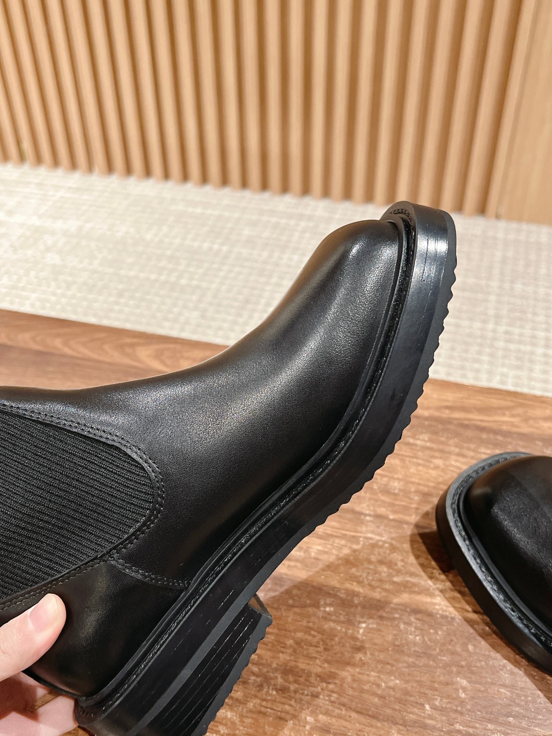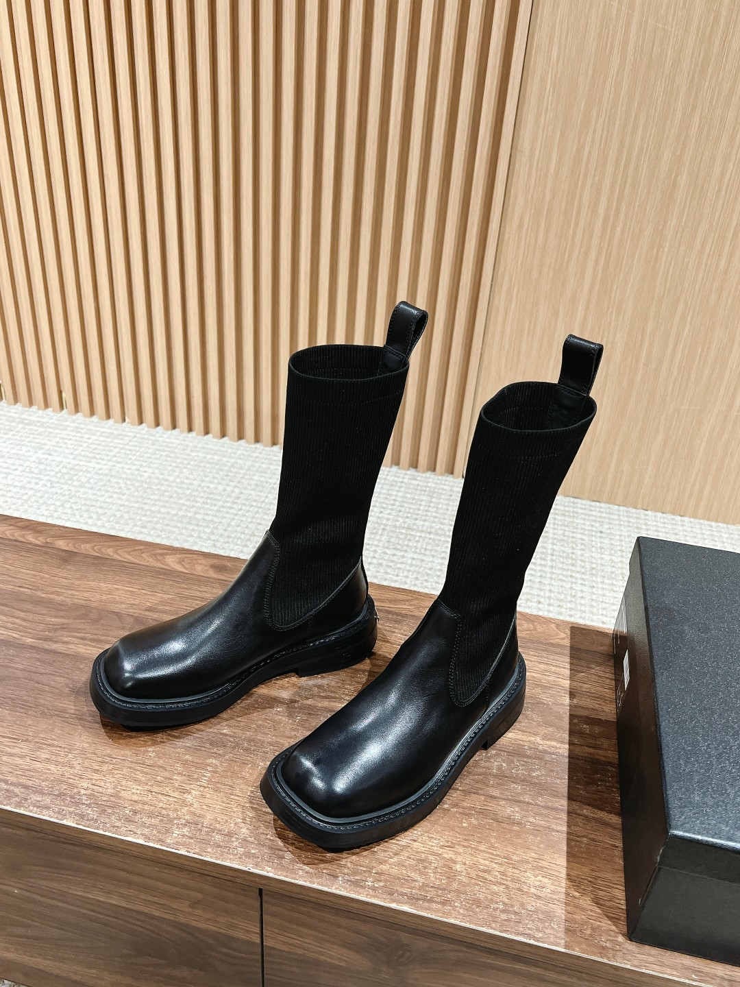 This 2024 new sock boot, compared to previous styles, has a thicker sole that makes you look taller and slimmer; classic black; glossy leather is low-key yet textured, paired with the brand's iconic metal logo, the overall design is full of帅气十足 (handsome/edgy style)! The sock boot design easily gives you long legs, truly the new popular item selling out fast.