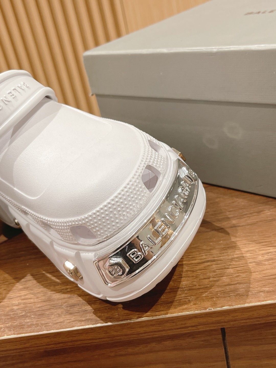 [Top Version] Balenciaga x Cross Balenciaga Collaboration Internet-Famous Hole-Punched Shoes, Metal Matte Round Head Rivets Platform Enclosed Toe Hollow Breathable Buckle Strap Thick Sole Beach Sandals