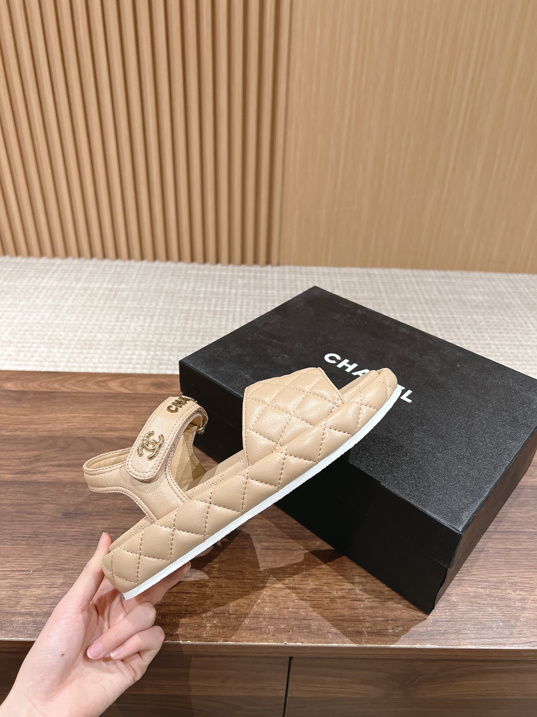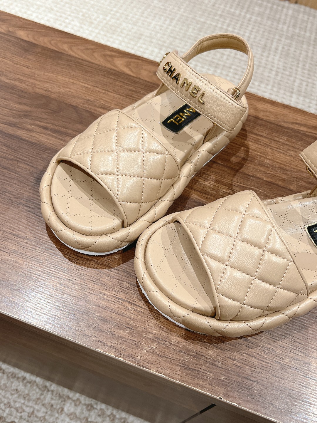 [Top Version] CHANEL New Diamond Pattern Platform Beach Sandals, hot style on social media. Trendy spring and summer wear, perfect for various looks! Soft lambskin, no need to worry about blisters or discomfort. Top-quality materials and craftsmanship, highly recommended! Detailed comparison with authentic, focusing on exquisite craftsmanship, classic diamond pattern elements, eco-friendly lambskin material. Size: 35-39 (40/41 custom orders non-returnable).