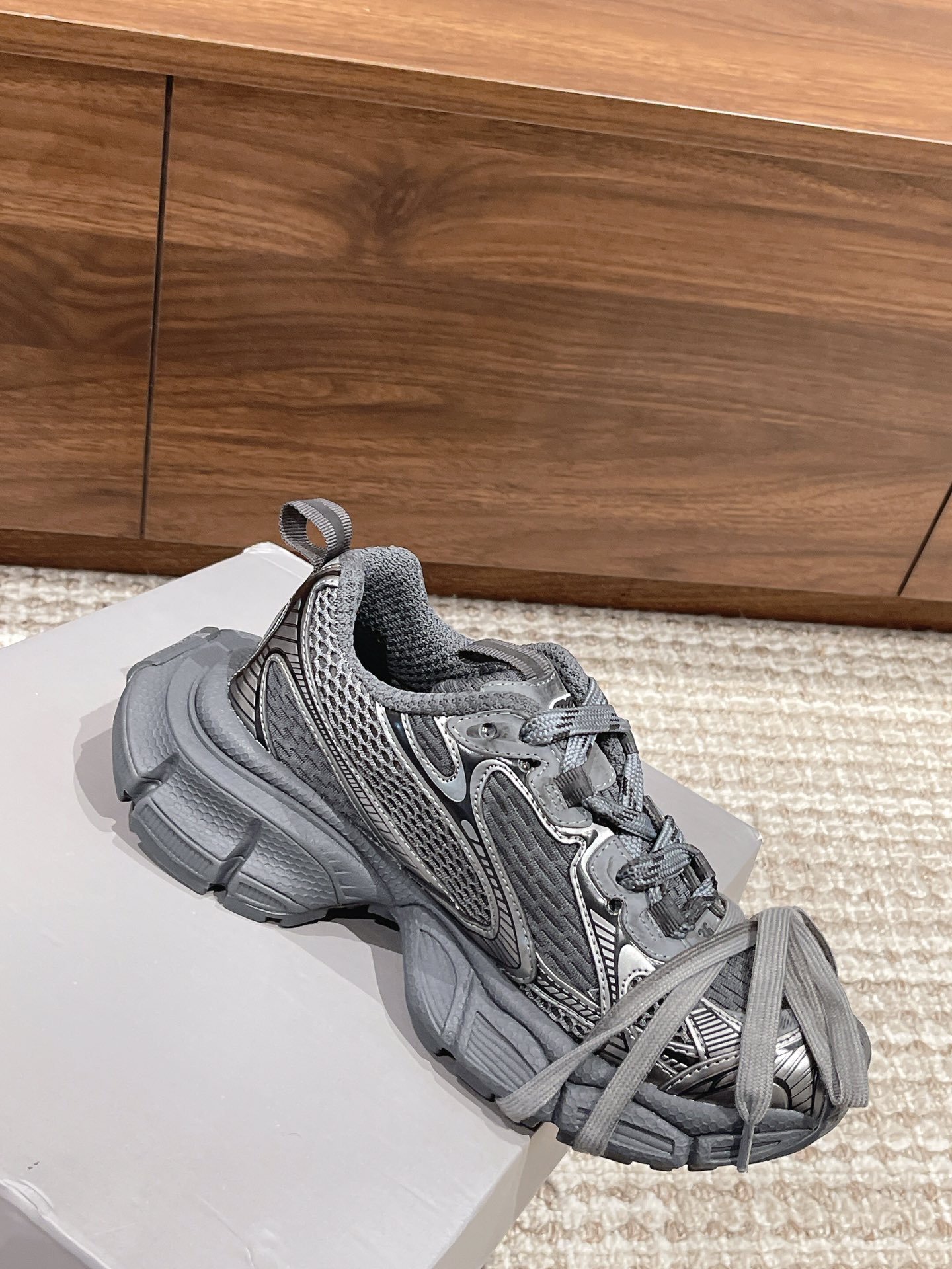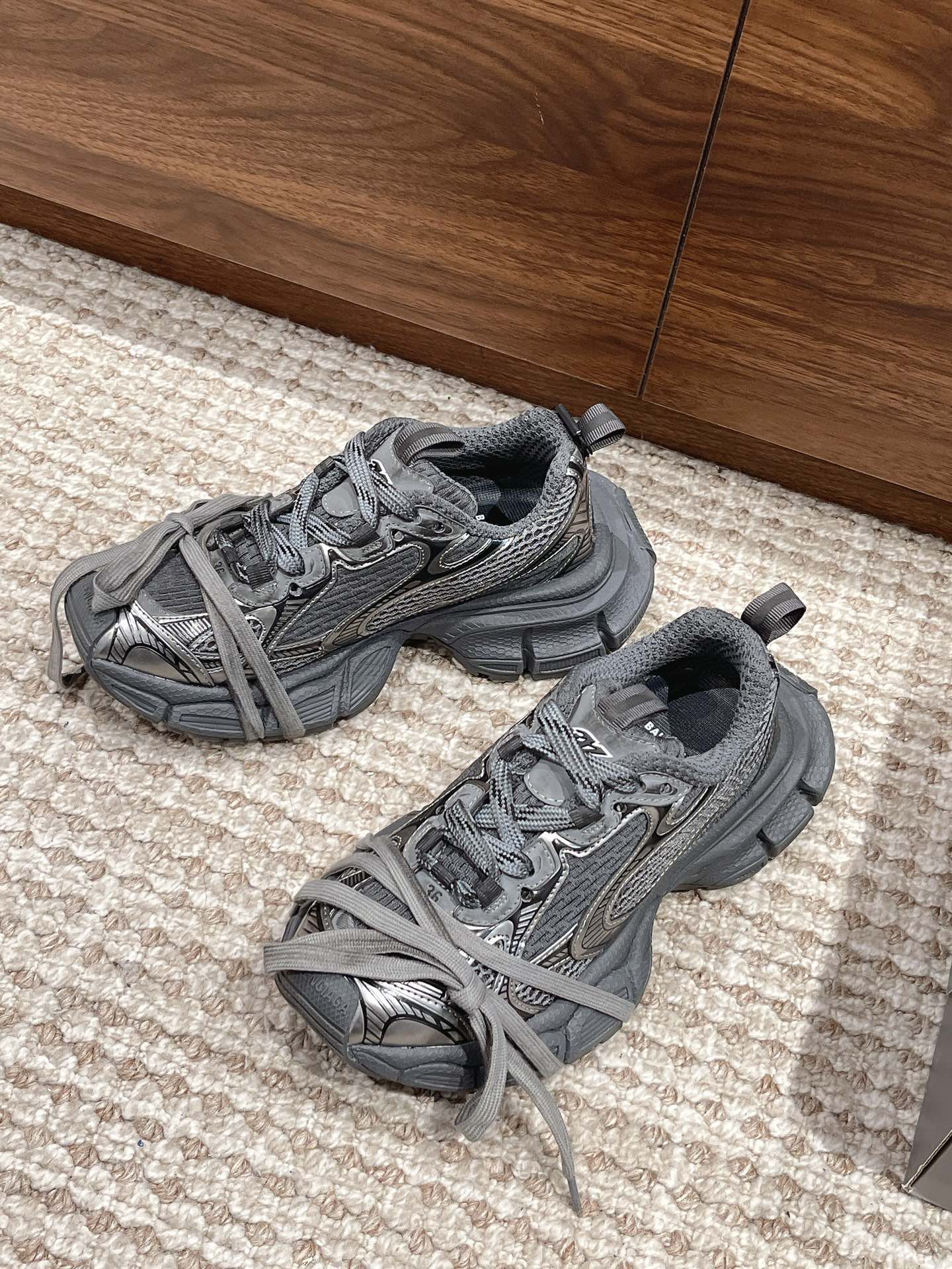 [Top Version] Balenciaga Paris世家 Nine Generations 23SS Latest Hit 3XL Sneaker Series Couple Style Casual Dad Shoes Sports Shoes Original Purchase Development Production Balenciaga 3XL Sneaker The overall shoe shape draws inspiration from the design concepts of both the Balenciaga Track and Balenciaga Runner models. It's like removing the outer frame of the Track upper while inheriting the streamlined form of the Runner and the flat toe of the Track. An additional pair of tied laces is added to the front of the shoe for styling. Fabric: Original custom imported technical fabric + mesh Lining: Original custom breathable mesh lining Outsole: Original molded ultra-light MD combined rubber sole Sole thickness: 5CM Size: 35-45