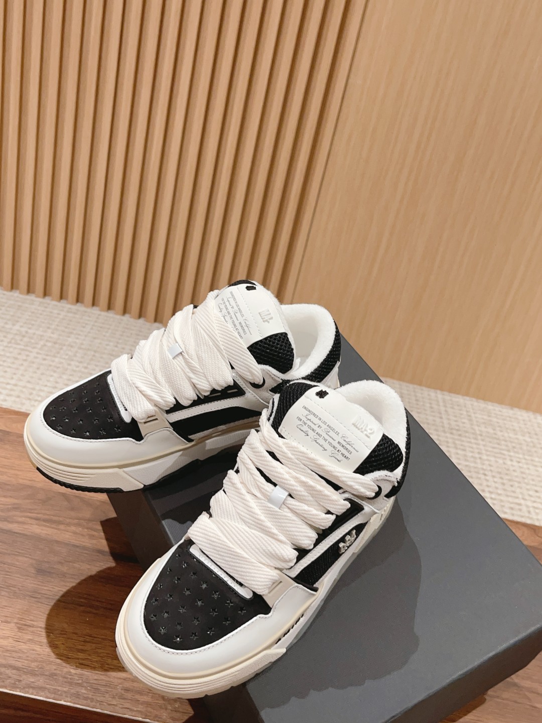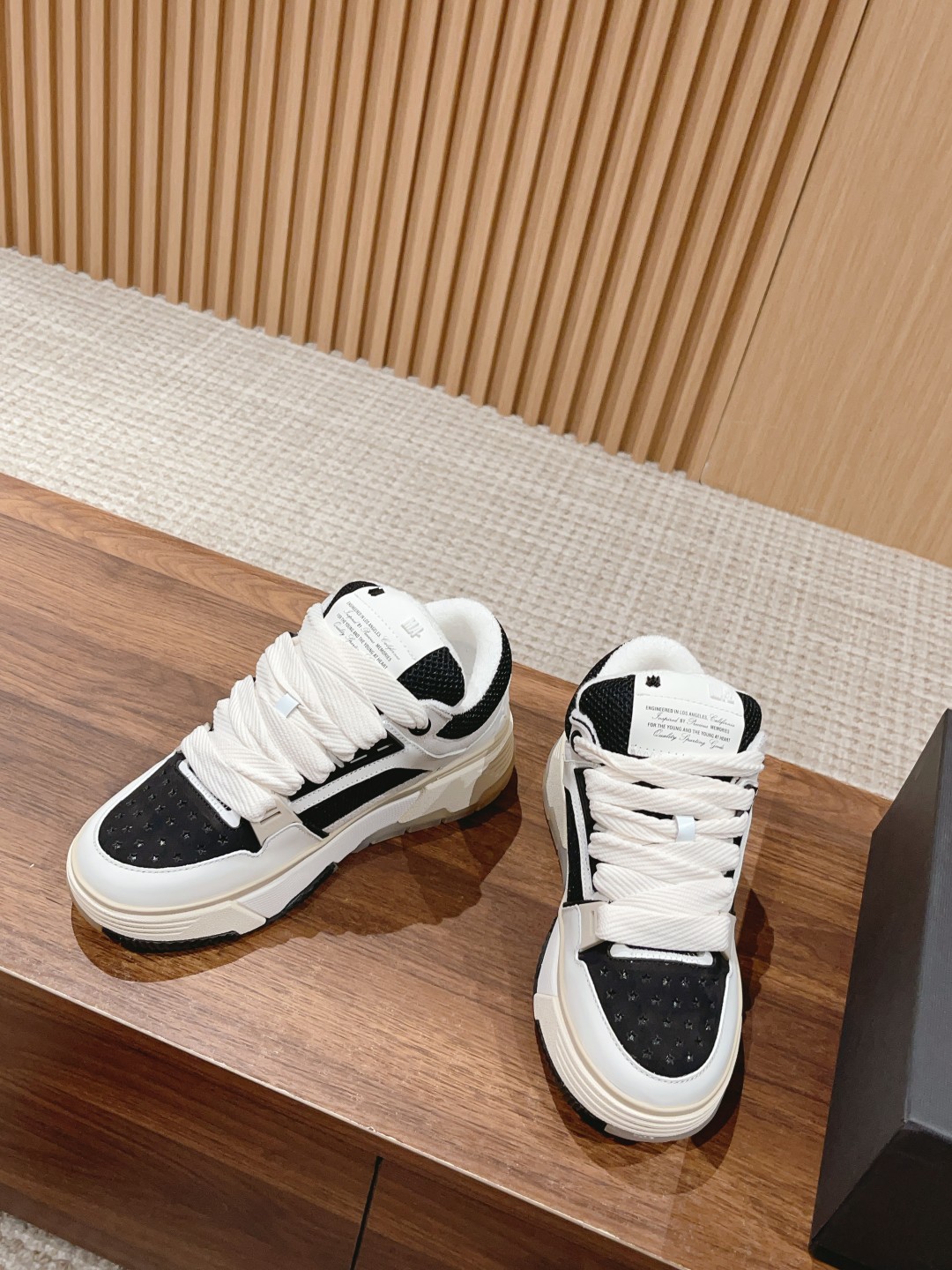 [Top Version] Amiri #Emil New MA-1 Bread Shoe Couple's Style Casual Sneakers Skate Shoes Amiri's new season abandons the rock punk style, using a large number of unsaturated color schemes, Morandi tones. Whether seen or worn, it is very physically and mentally pleasing. The large tongue of the bread shoe continues, the length of the shoe body is shortened, the midsole is thickened, and the toe part is more rounded. Amiri's brand letters and MA logo appear on the side of the shoe. Material: Original custom imported top-layer cowhide + mesh. Lining: Original custom breathable terry lining. Sole: Foam composite TPU material. Sole thickness: 4CM. Size: #Women's 35-40 / Men's 39-45