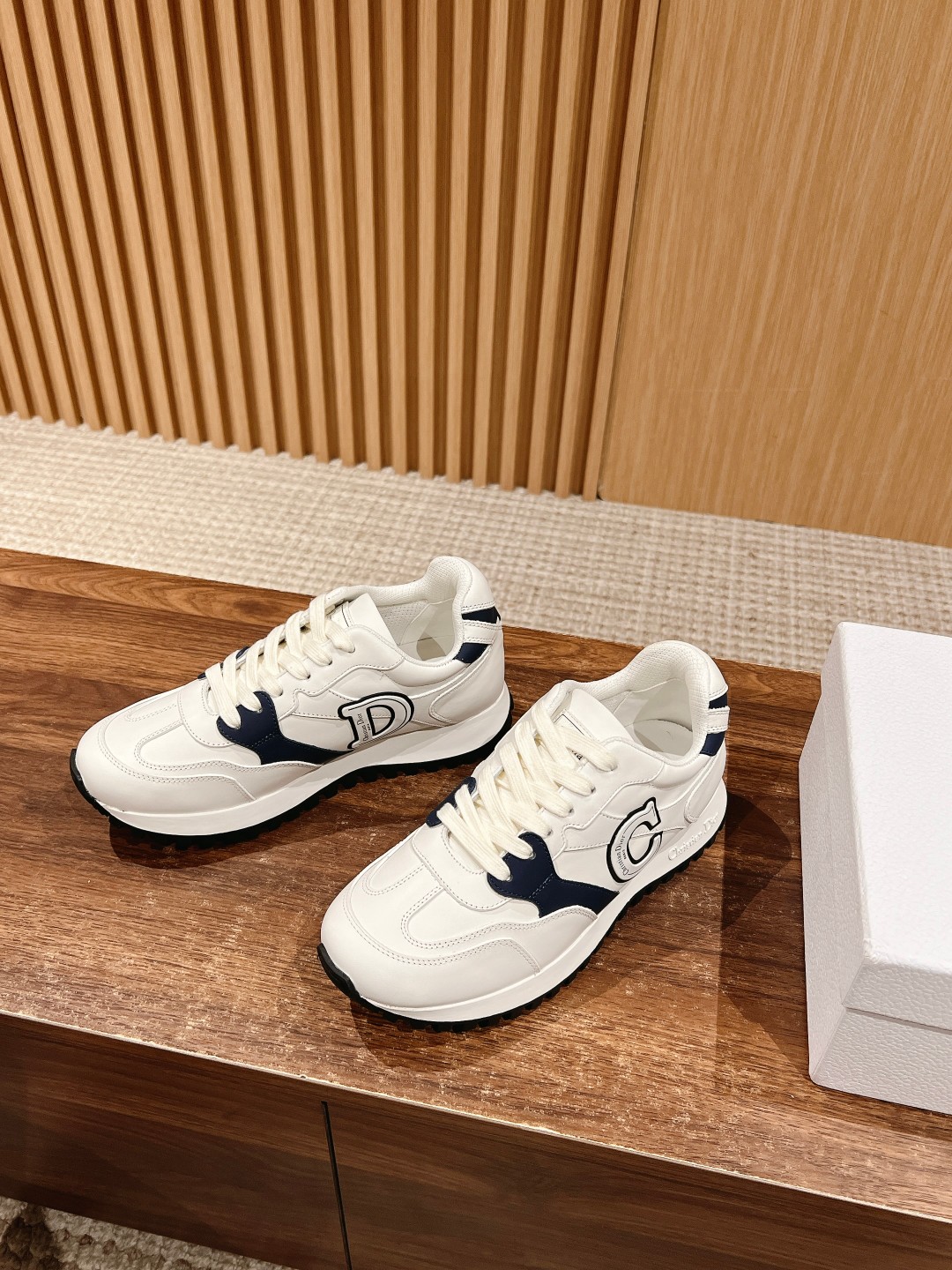 [Top-Tier Version] Christian Dior's C'est Dior sneakers feature a bold and stylish design. Meticulously crafted from materials like white calfskin leather, the upper showcases black and white rubber C and D letters on each side, adorned with the Christian Dior Paris logo. The logo-detailed tongue and lightweight two-tone sole offer exceptional comfort, highlighting the charm of the sporty style. They can add a fashionable touch to various casual outfits.