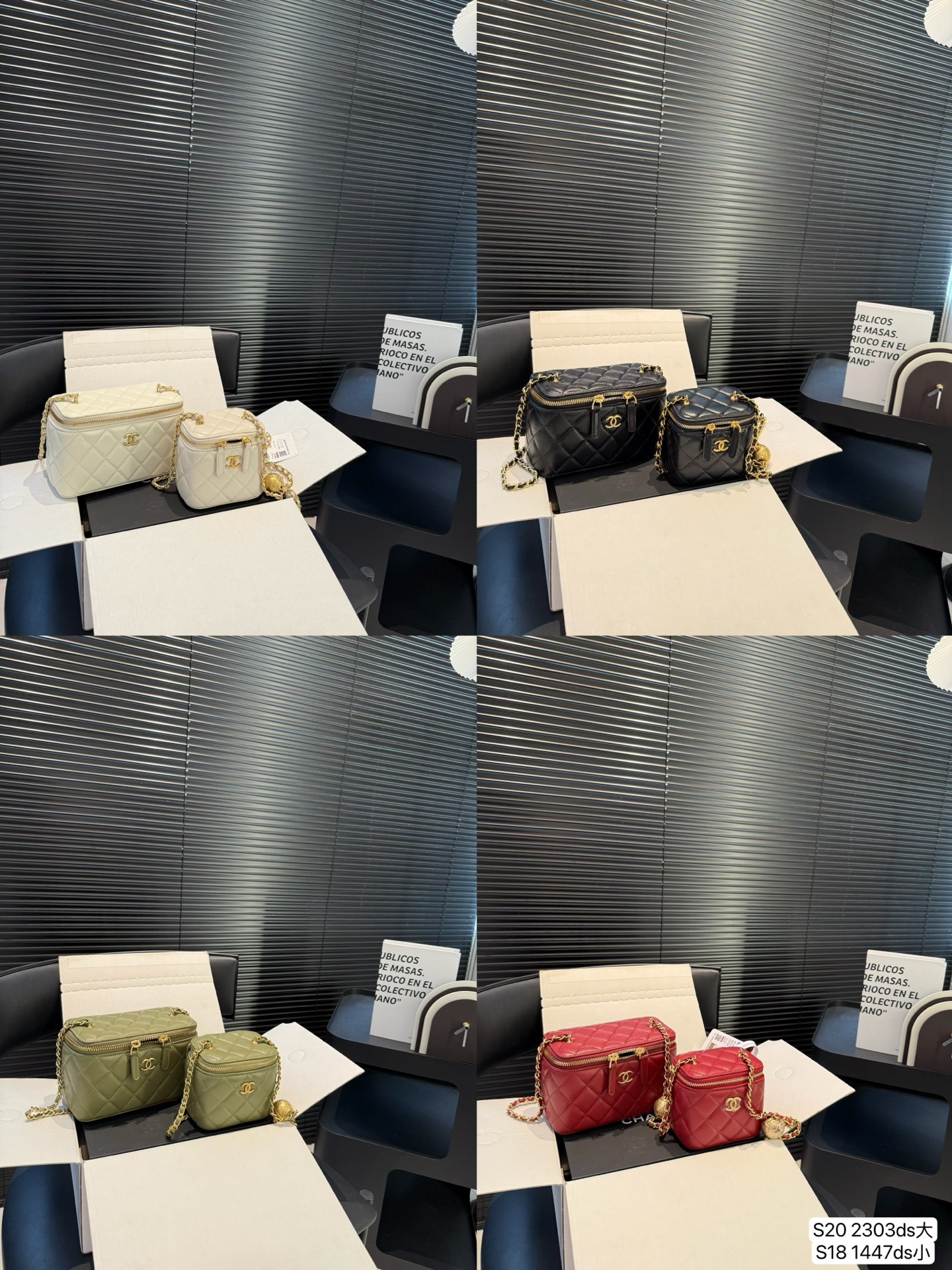 Large size, small size, comes with airplane box, folding box, Chanel makeup bag, gold ball adjustment buckle. The adjustable gold ball is absolutely stunning, super easy to pair with retro chains, multiple ways to wear it. The overall details are a major plus, an undeniable level of beauty! Dimensions: Large 16x10, Small 11x9. Product number: Large 2303, Small 1447