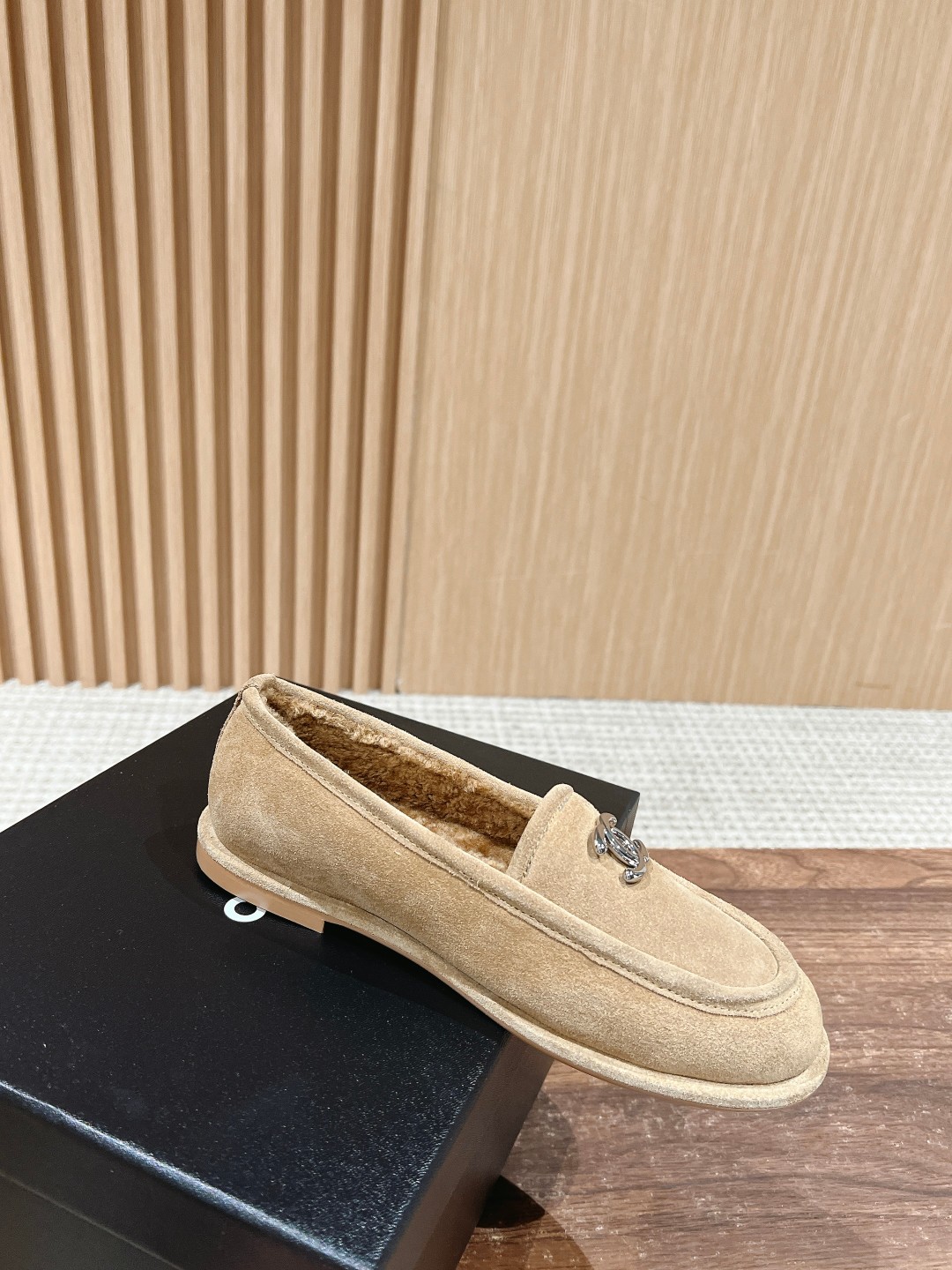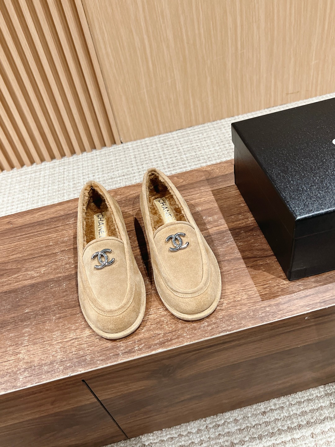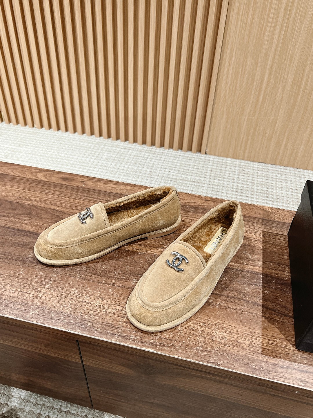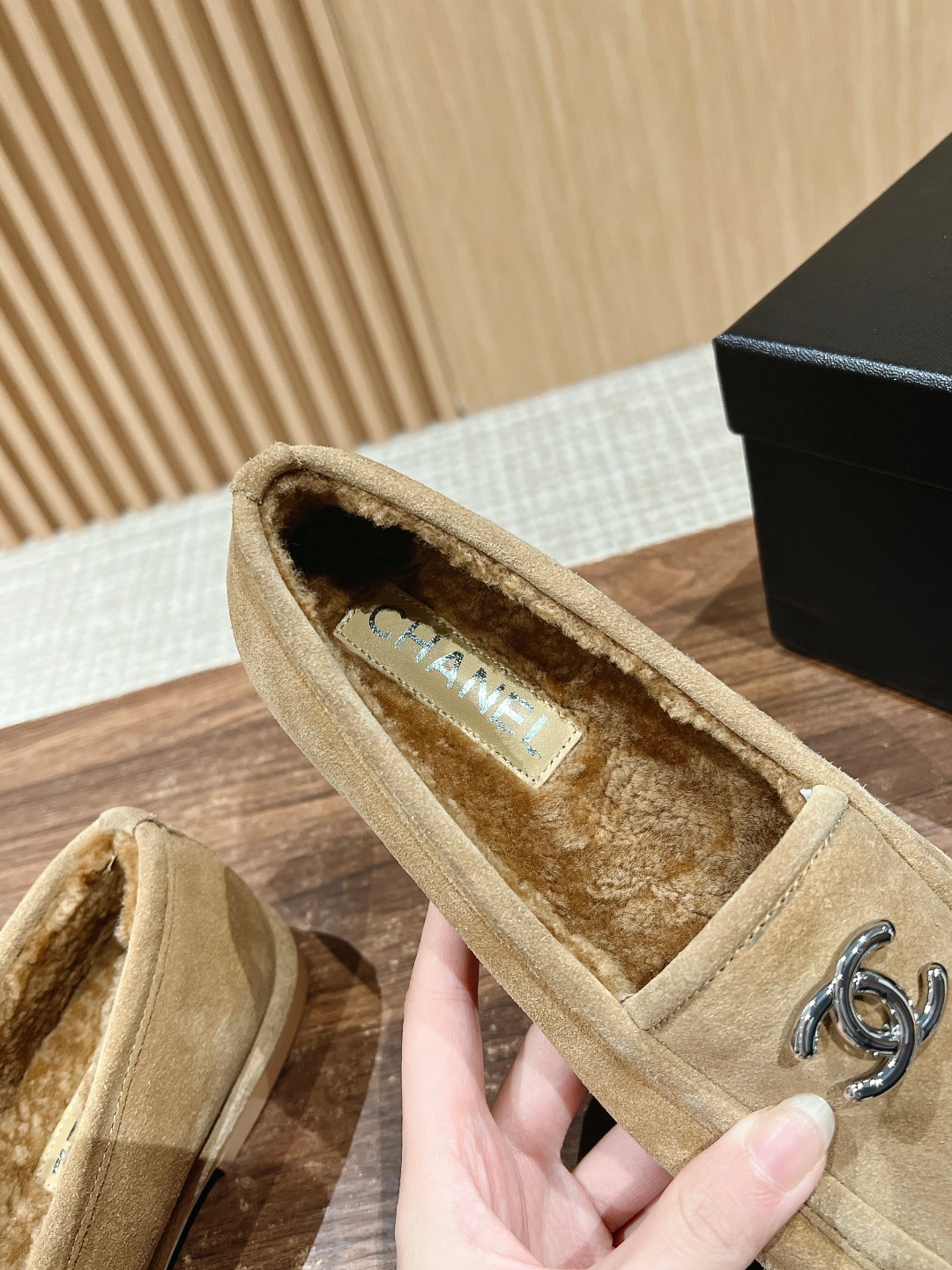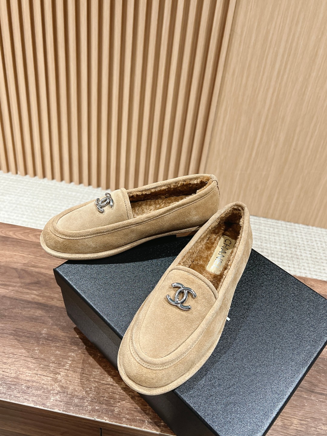 [Top Version] Chanel 24K Chanel Teddy Maillard Suede Loafer Bean Shoes Super cute, integrated fur for excellent warmth. Paired with a double C logo buckle, it brings that retro academic style vibe. Comfortable and soft on the feet. For autumn and winter with socks, it is recommended to size up for a more comfortable fit without tightness. Size: 35-39 (40/41 custom-made, no returns or exchanges)