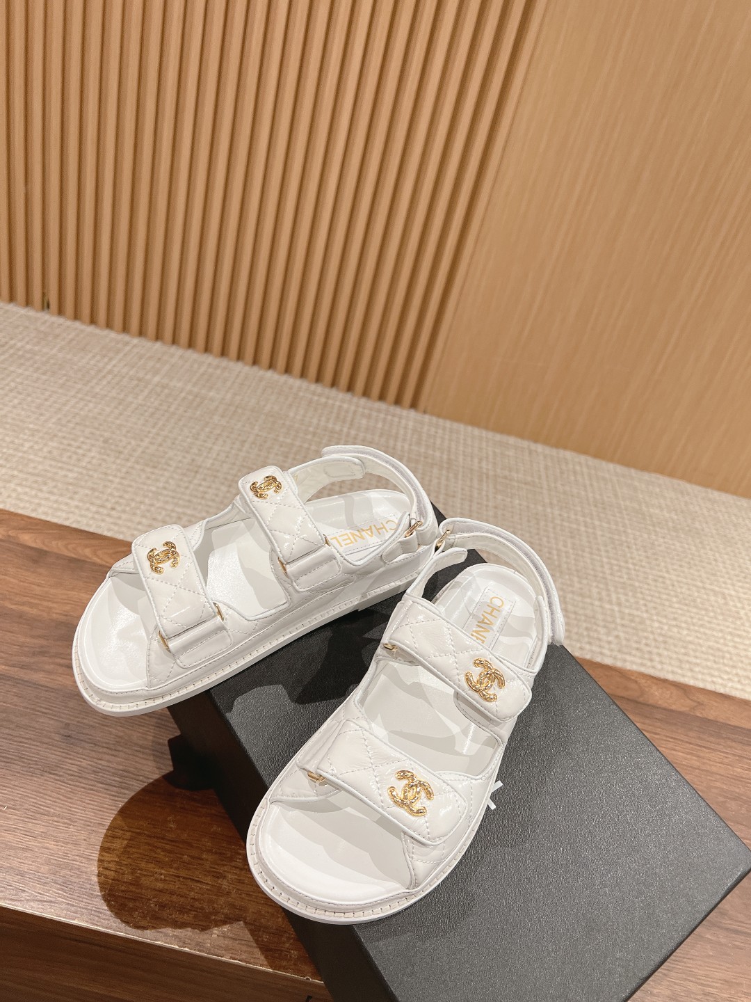 [Top Version] #CHANEL Chanel/Store Sold-Out Hit Style Full Genuine Leather Strap Sandals. Every year, I get Chanel strap sandals, the versatile essential, summer beach durable style, a must-have item this spring and summer! ❶ Upper imported lychee pattern cowhide/custom original satin, good texture, fine leather. ❷ Molded imported resin logo hardware buckle/Austrian crystal hardware buckle. ❸ Lining imported lambskin, Italian genuine leather sole. ❹ Size: 35-42 (40/41/42 custom-made, no returns or exchanges).