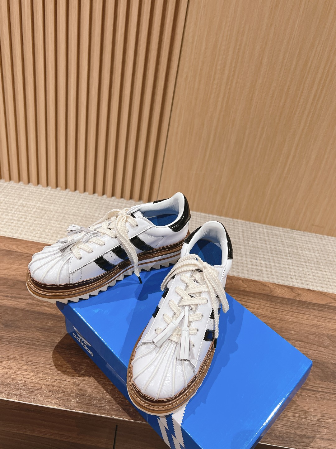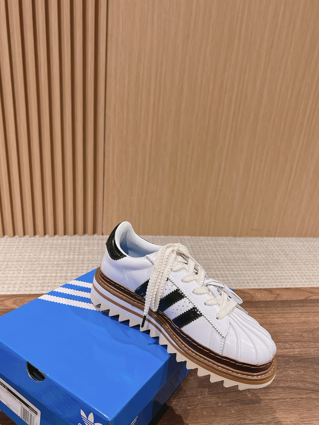 Home • Shoe • Top version CLOT x Adidas Superstar collaboration. Lightweight foam sole, serrated design, classic leather shell toe, 5cm height increase. Sizes 35-45.