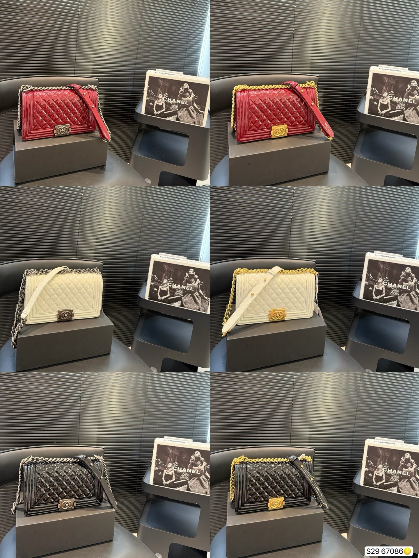 Comes with airplane box and folding box. CHANEL patent leather classic mom style, fully upgraded. Chanel single shoulder crossbody bag. Charming exterior design paired with a long Chanel chain strap. Extra large capacity, a very practical style. Elegant and charming when going out. Full diamond quilting, straight stitching. Dimensions: 25 15. Product code: 67086