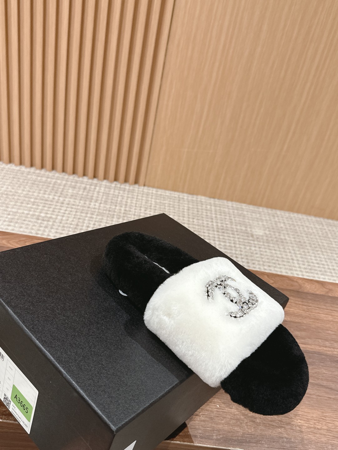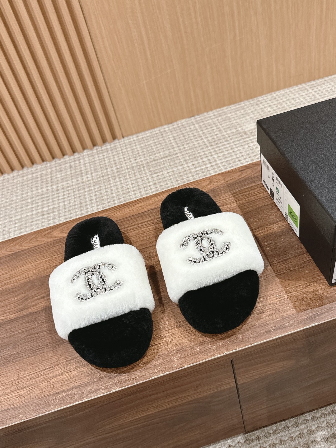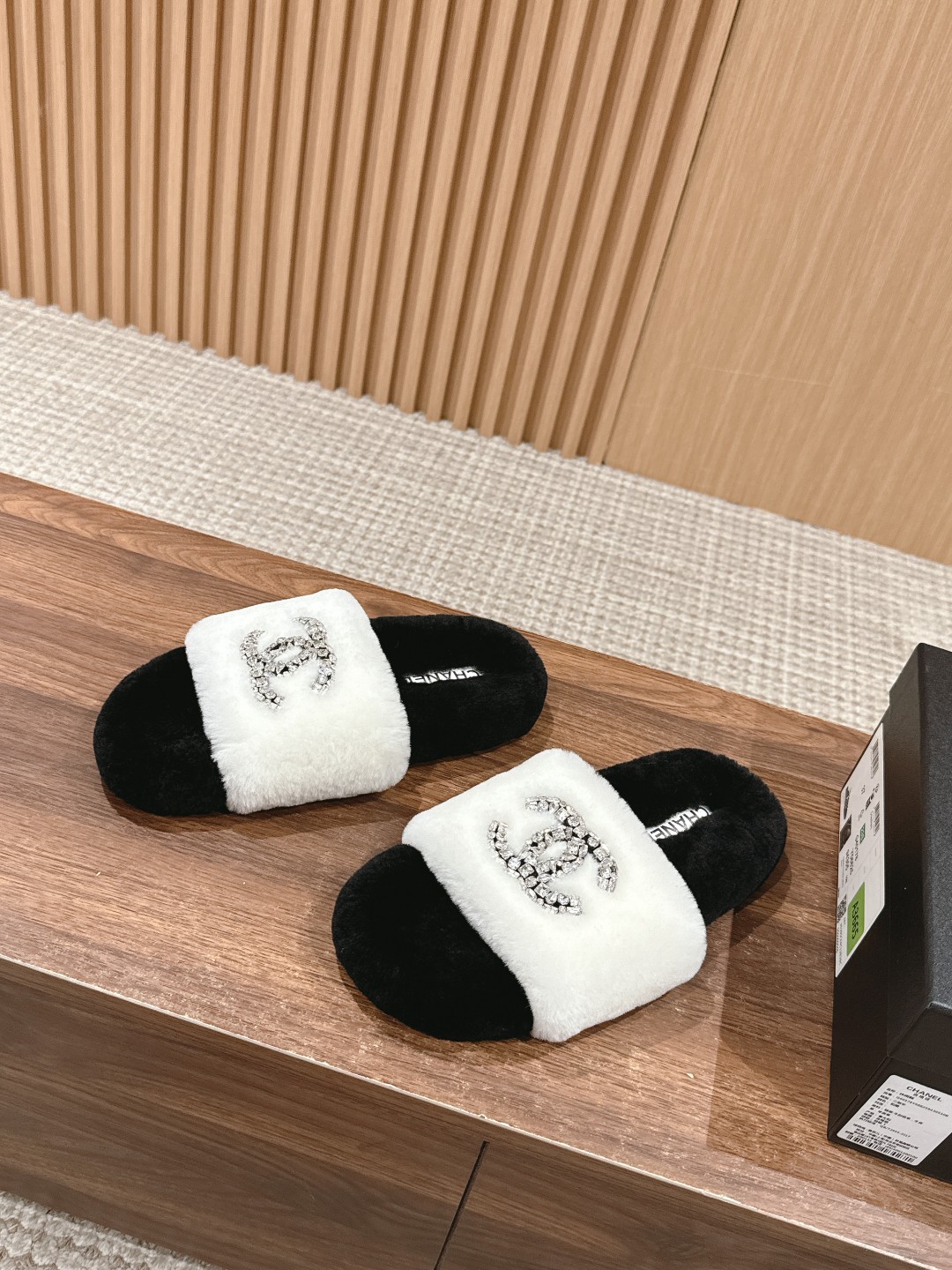 [Top Version] CHANEL Autumn Winter Crystal Embellished Fur Slippers, casual and versatile yet stylish. Custom thickened wool, entirely hand-stitched for greater durability. Festival wool material. Size: 35-39 (40/41 custom-made, no returns or exchanges)