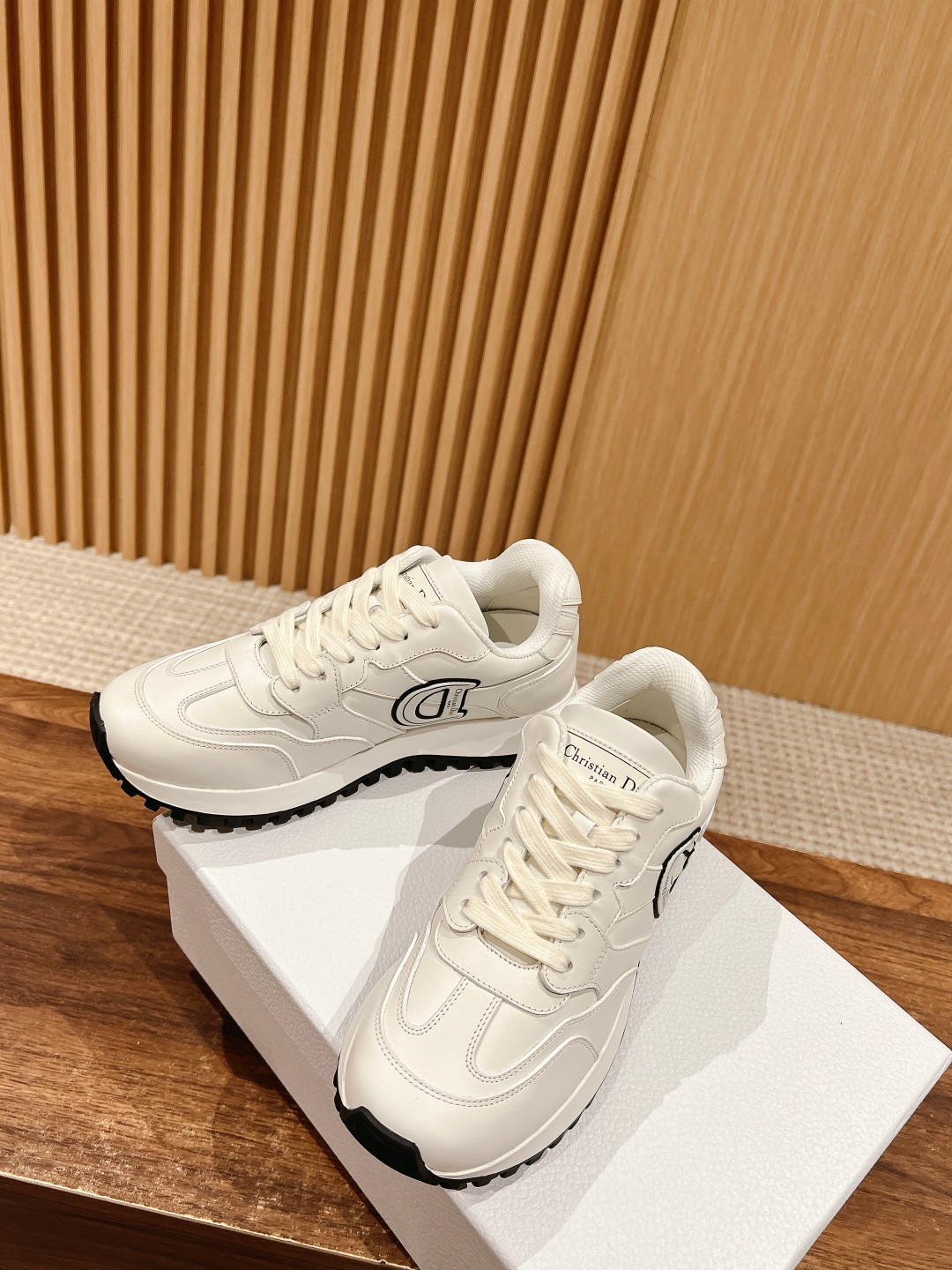 [Top-Tier Version] Christian Dior's C'est Dior sneakers feature a bold and stylish design. Meticulously crafted from white calfskin leather and other materials, the upper showcases black and white rubber C and D letters on each side, adorned with the Christian Dior Paris insignia. The branded tongue and lightweight two-tone sole offer exceptional comfort, highlighting the charm of the sporty style. They can add a fashionable touch to various casual outfits.