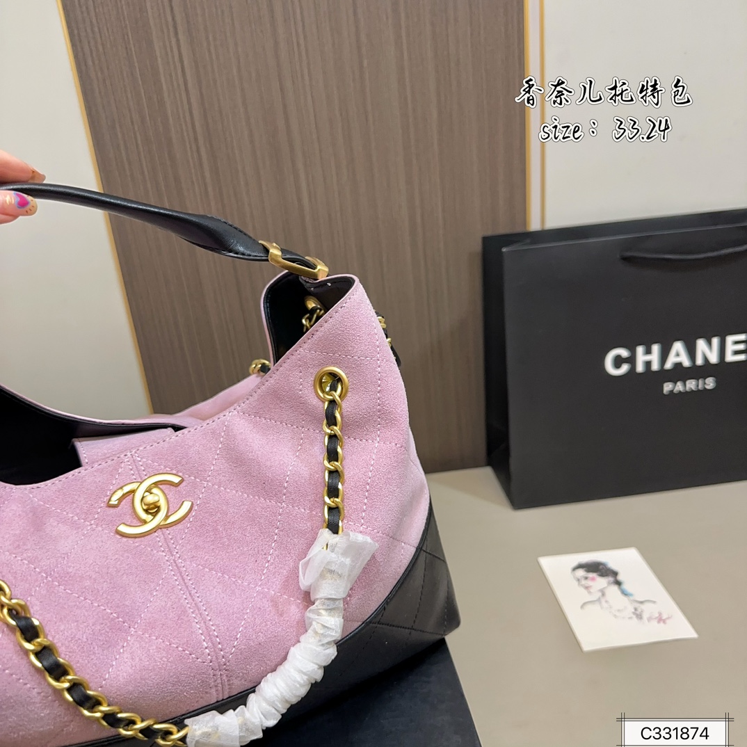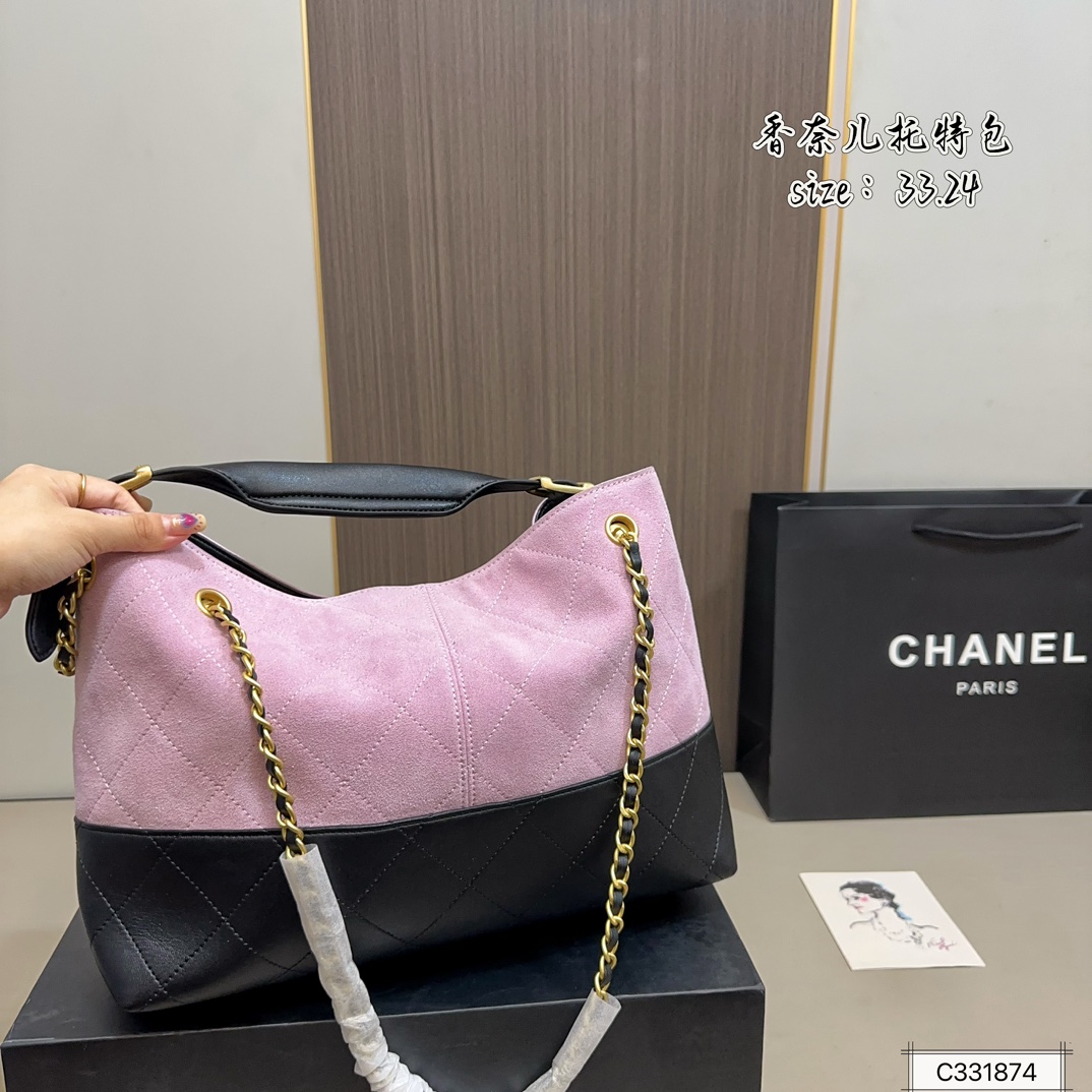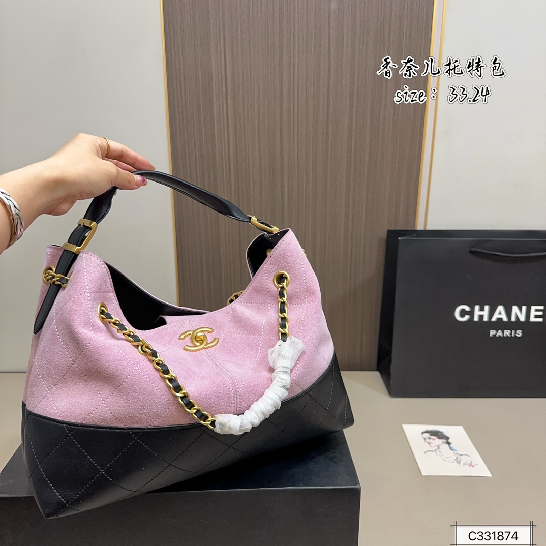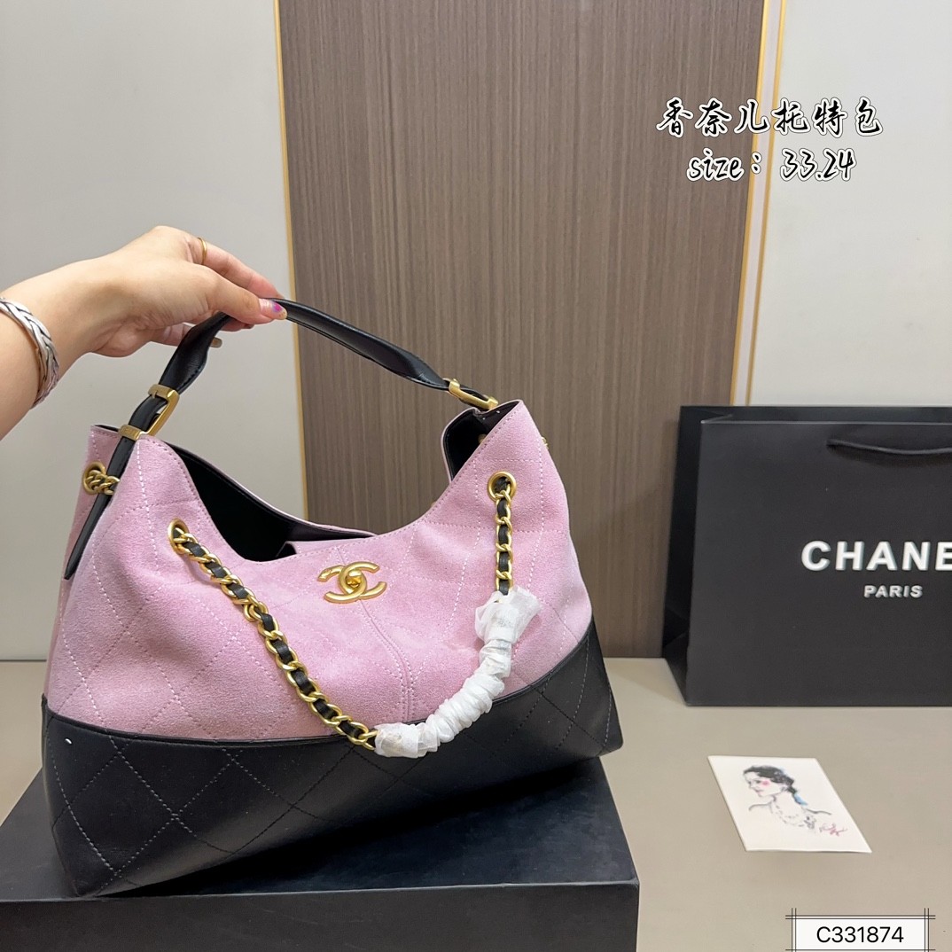 Chanel CHANEL 24A Métiers d'Art Series Patchwork Leather Hobo Tote Bag, combining cool elegance with structured relaxation.