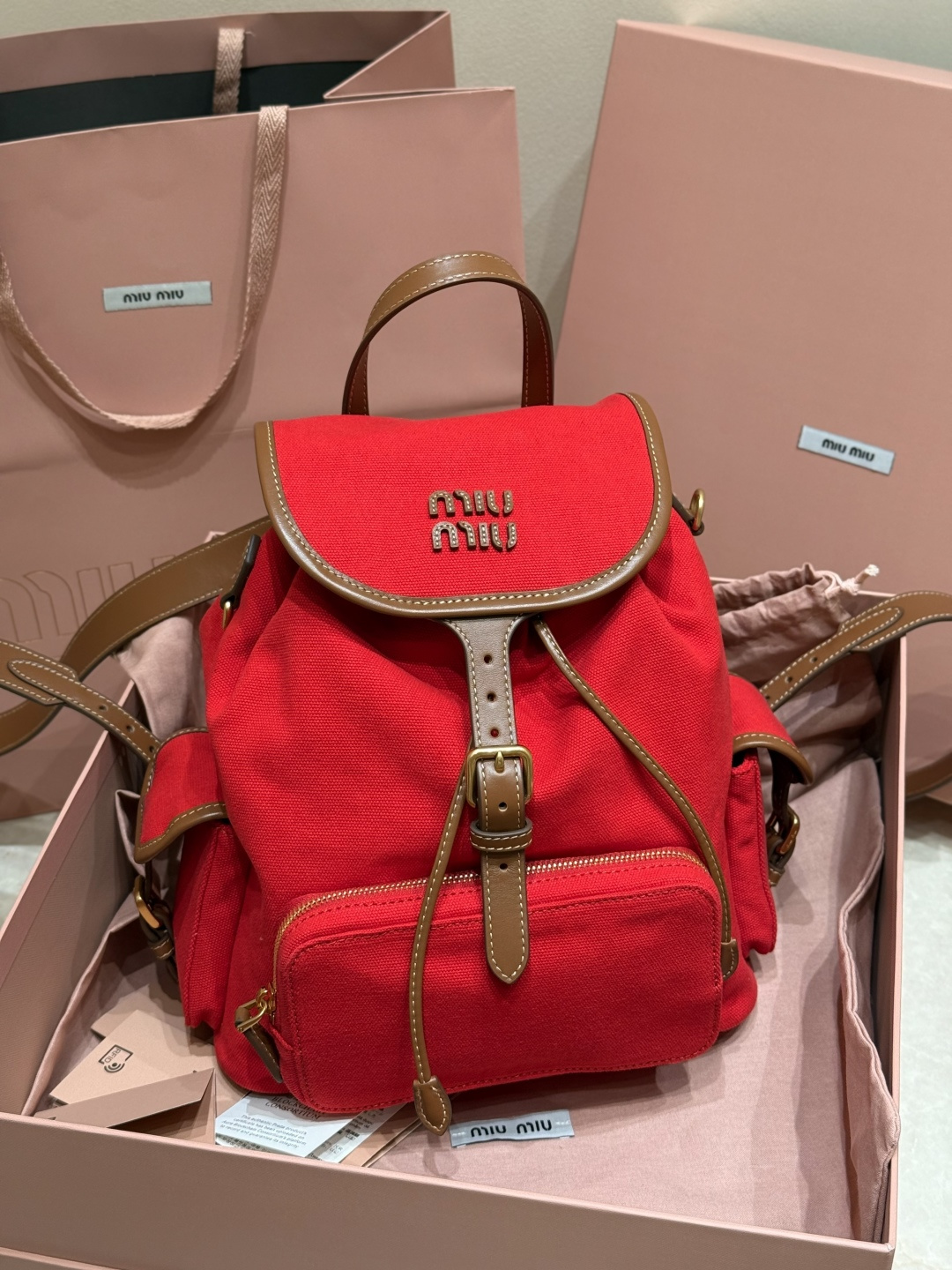 Miu 25SS series show-style canvas backpack