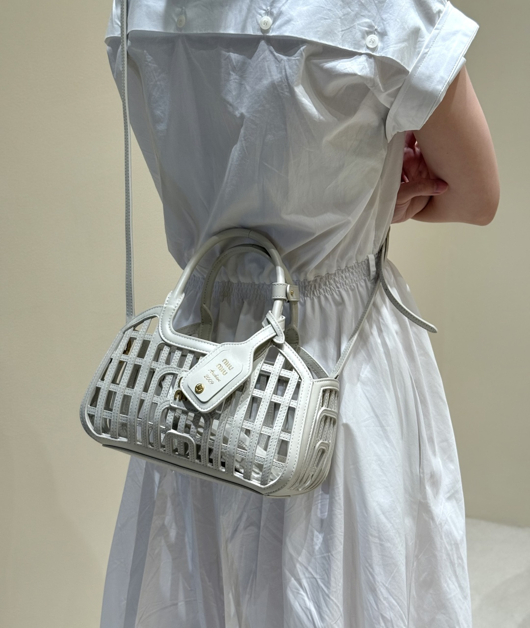 JD1380 | Miu New Woven Leather Hollow-Out Bag