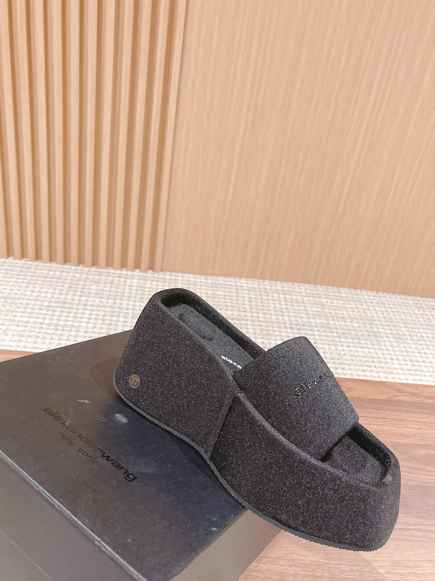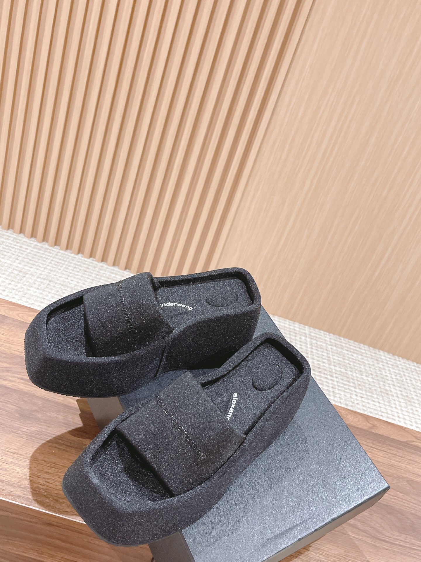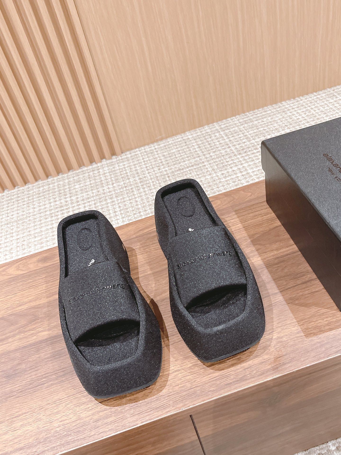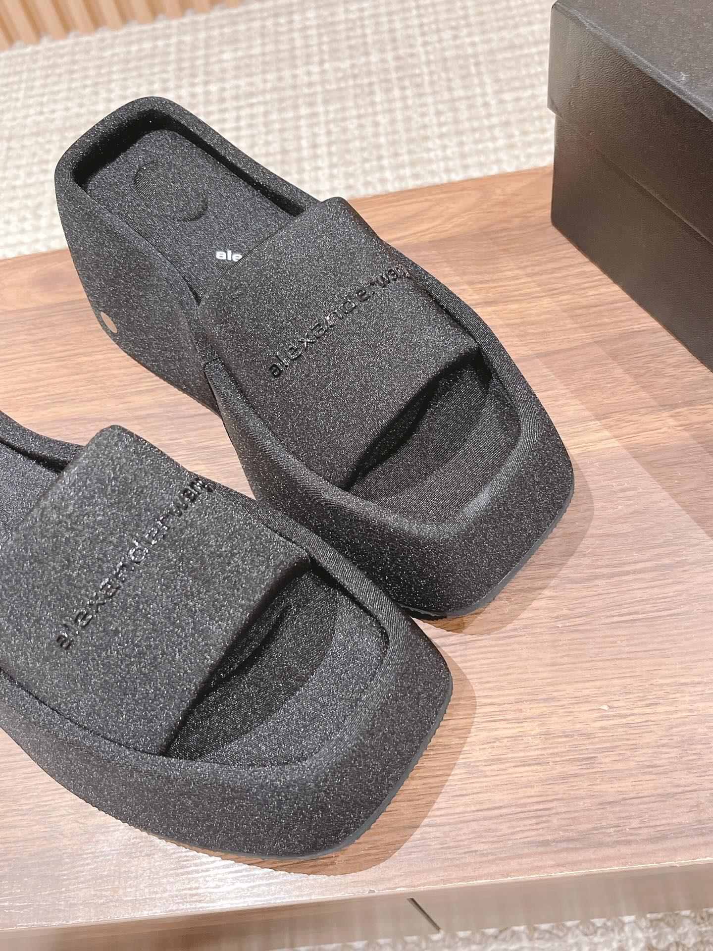 Home • Shoe • Alexander Wang square toe platform sandals. Silk upper, lined with silk satin, rubber sole. 10cm heel. Sizes 35-39.