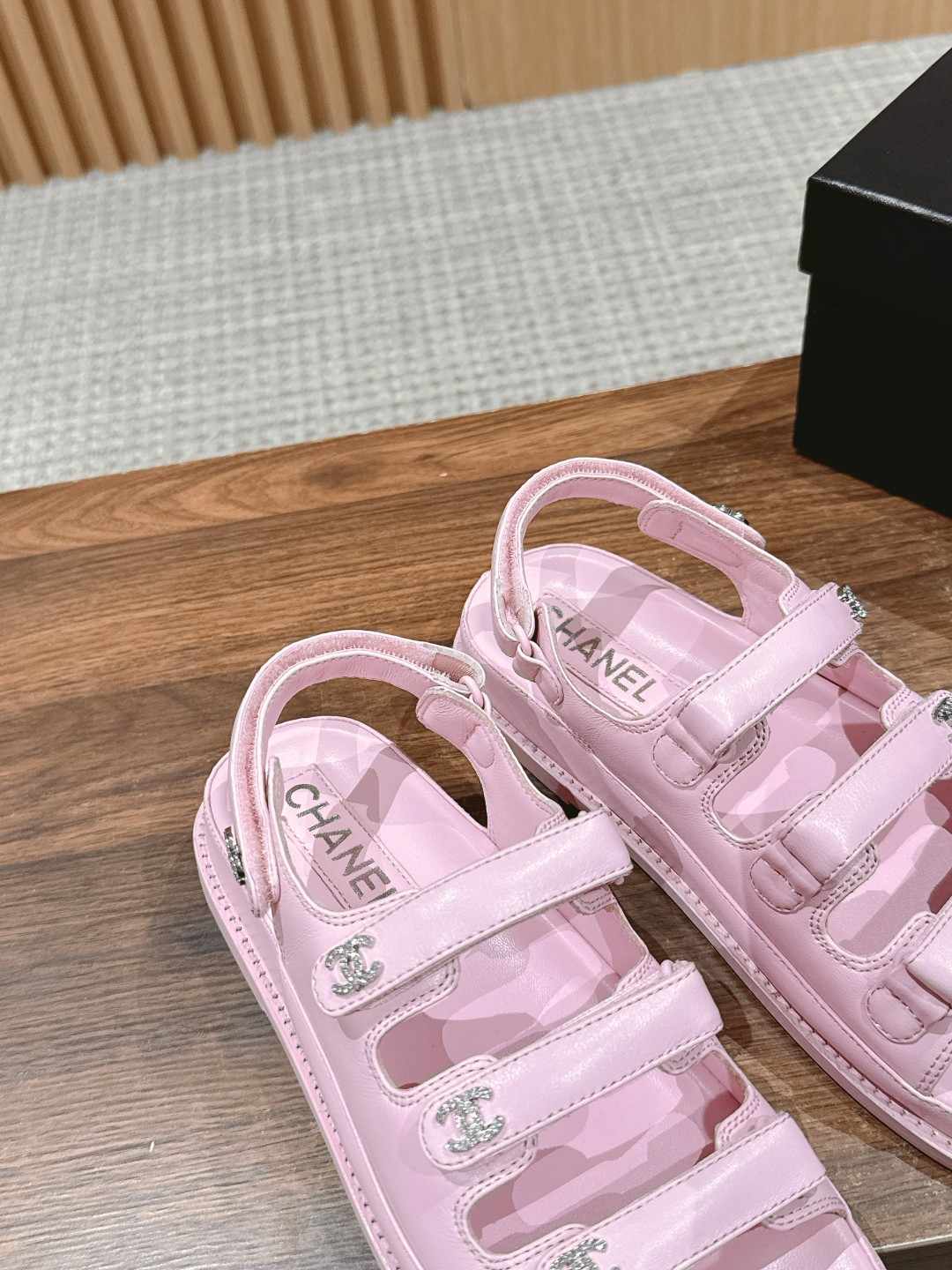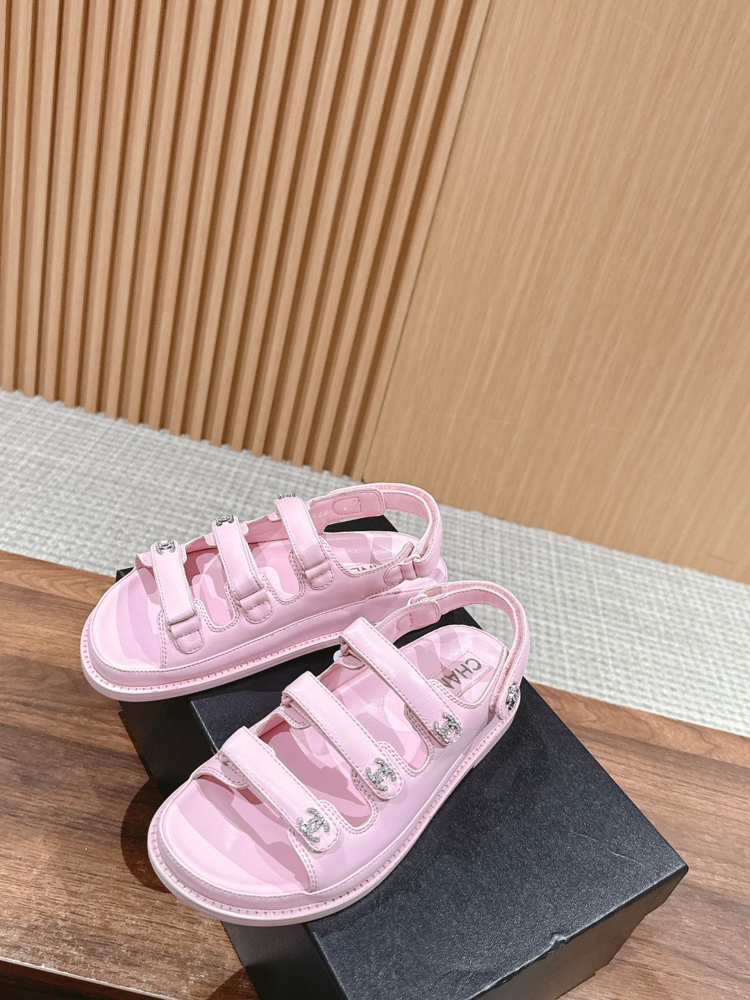 [Top Version] Chanel 2024/ss# Chanel Spring Summer New Velcro Strap Sandals with Rhinestone Buckle, Macaron Color Palette, Sweet and Versatile Mary Jane Shoes. You'll fall in love the moment you put them on your feet. The sole is not very heavy, made of mixed sheepskin. Sizes: 35-39 (40/41 custom-made, non-returnable)